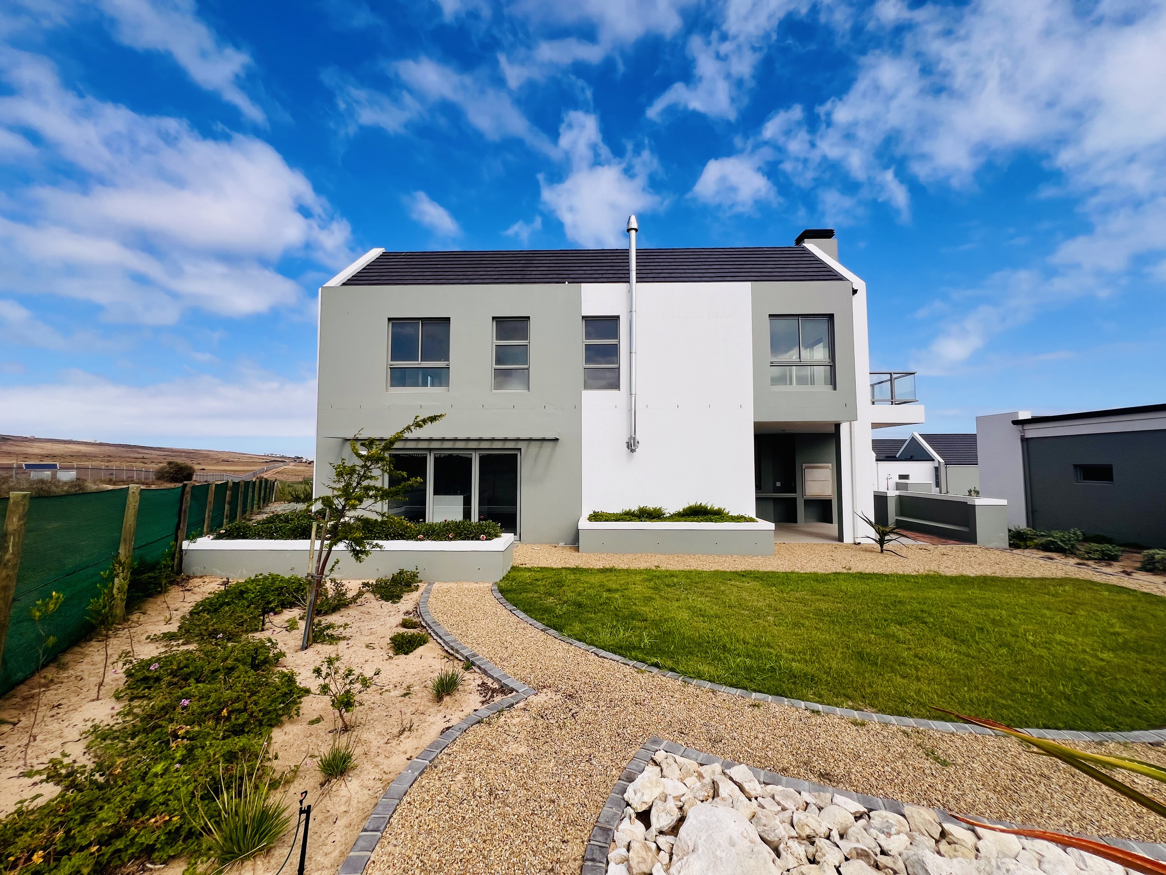 Imagine waking up to the sound of birdsong, stepping onto your private balcony, and sipping your morning coffee while overlooking the peaceful surroundings of Langebaan Country Estate. This brand-new double-storey home isn’t just a place to live—it’s a place to truly enjoy life.