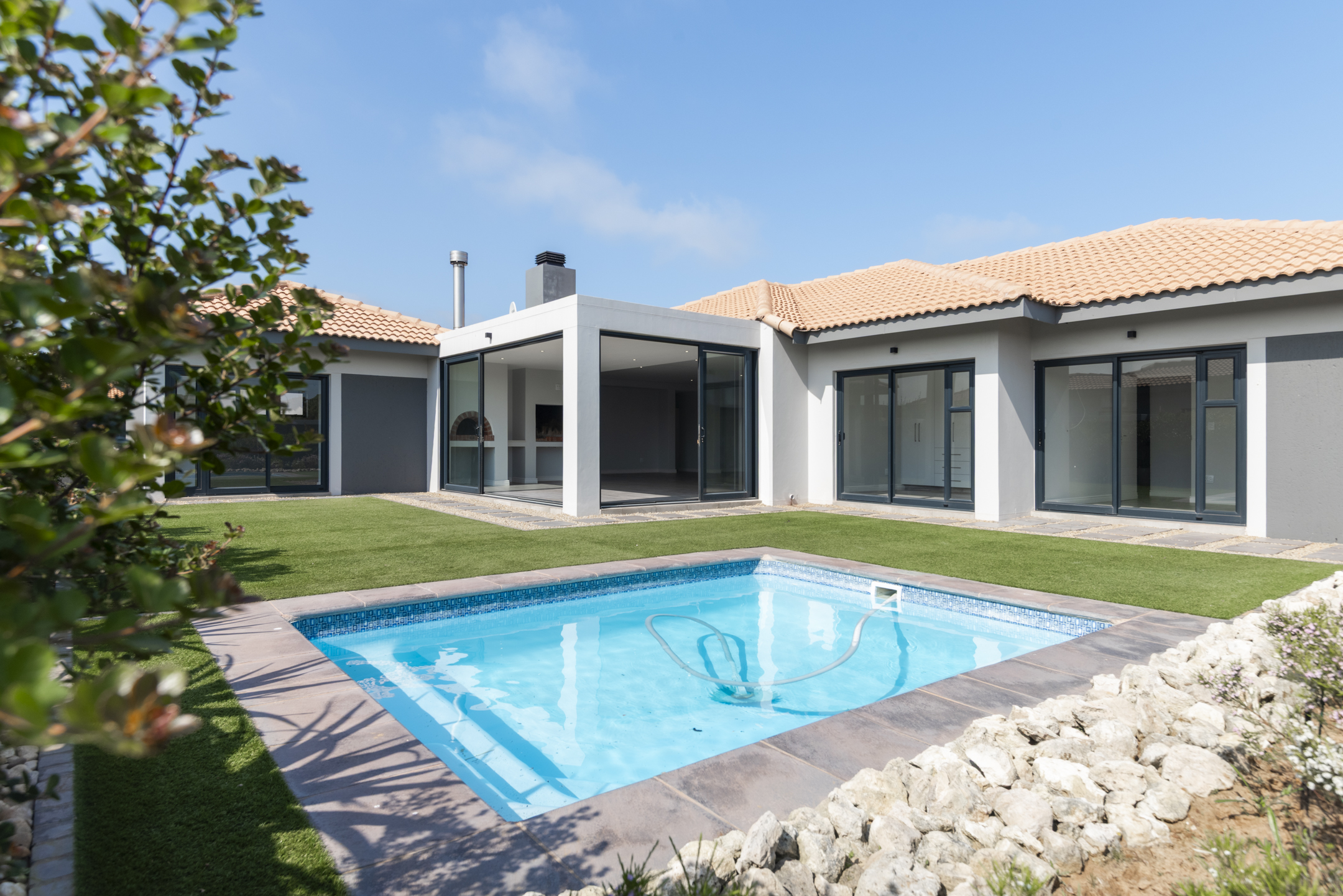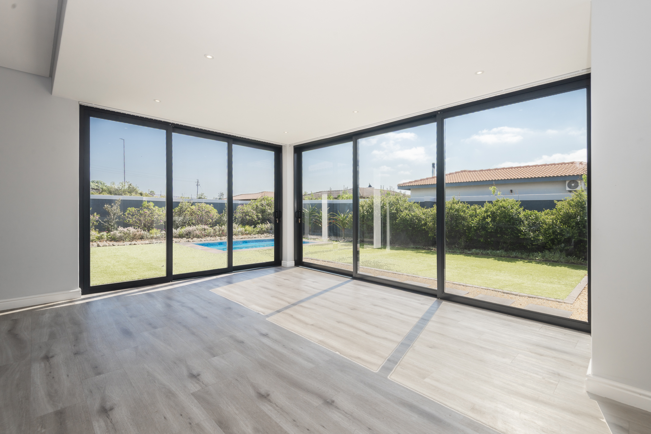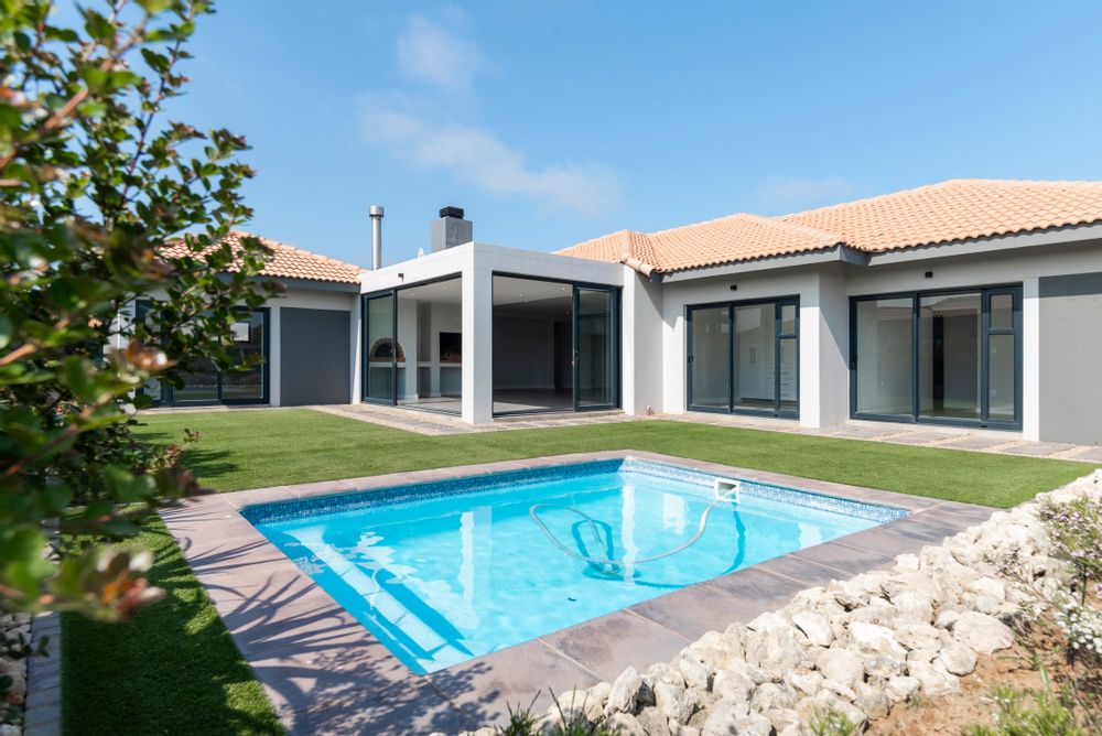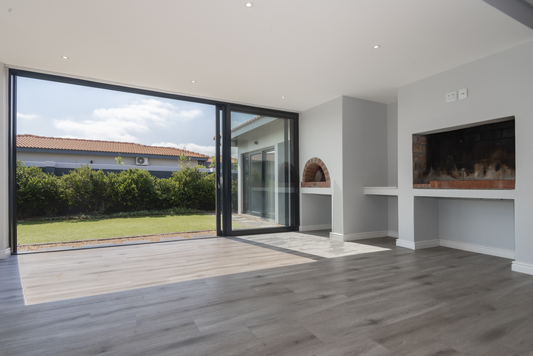 This gorgeous 4-bedroom family home really ticks all the boxes – luxury, comfort, and practicality rolled into one. The heart of the home is the spacious open-plan living area with its built-in braai and pizza oven, flowing straight out onto a sunny patio – the perfect spot for easy family get-togethers. Big sliding doors open up to the lush, irrigated garden and sparkling pool, giving you that seamless indoor-outdoor vibe.