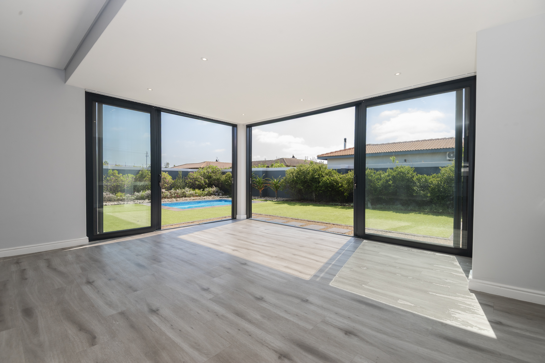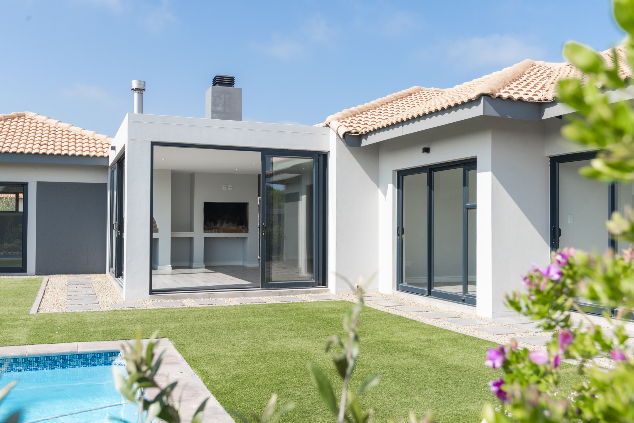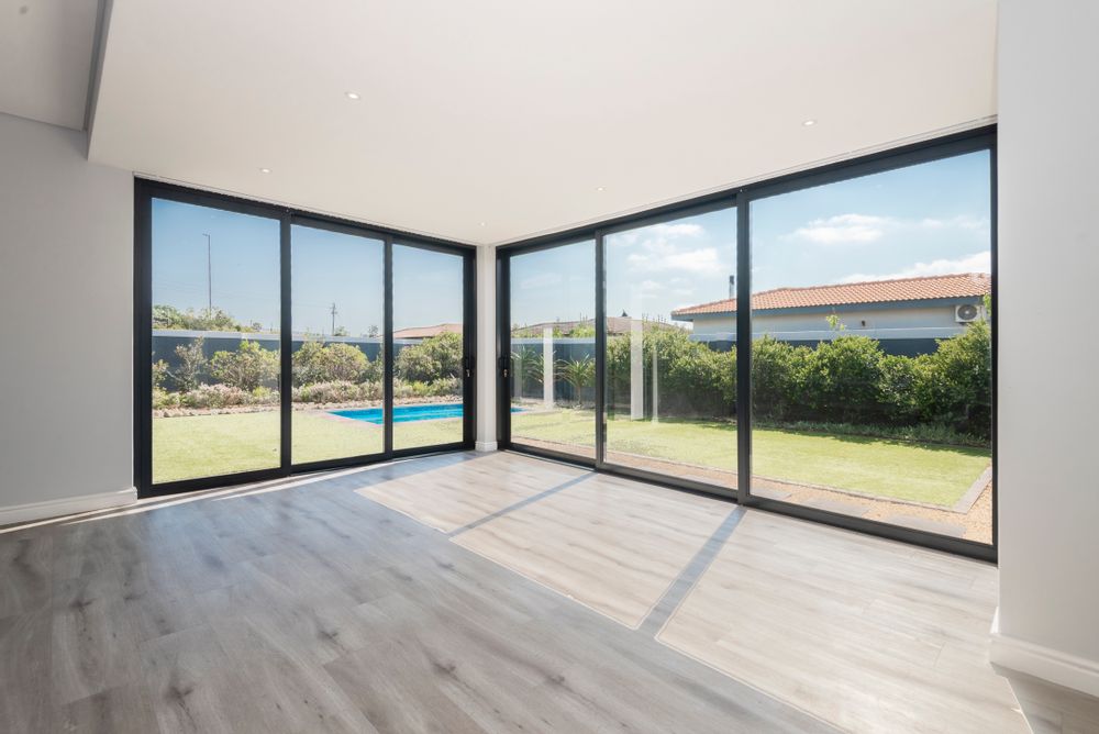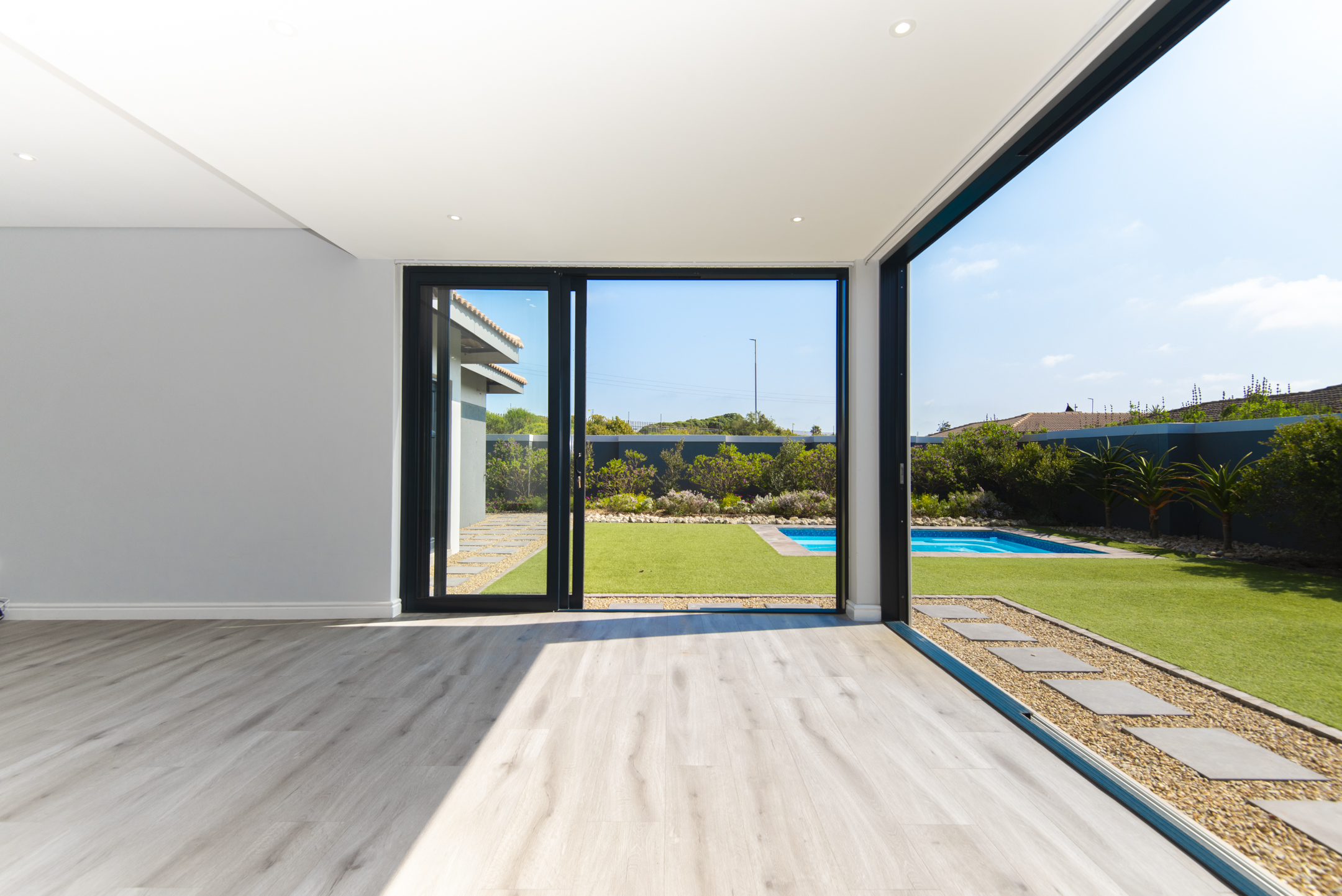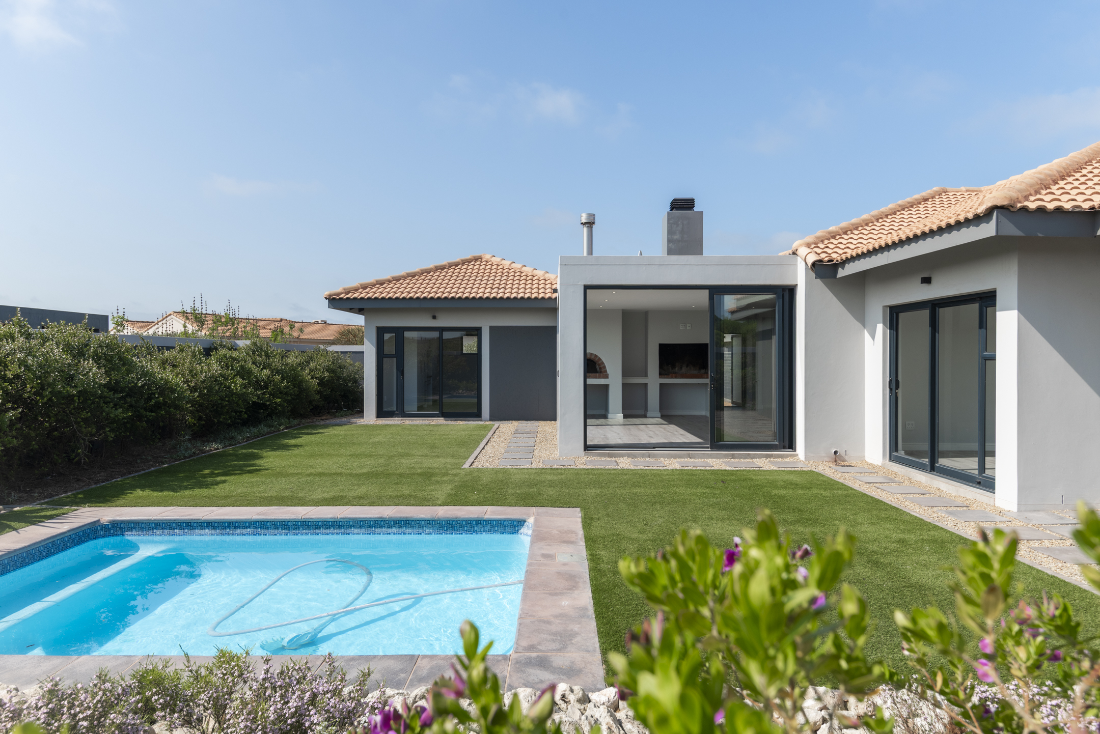 This gorgeous 4-bedroom family home really ticks all the boxes – luxury, comfort, and practicality rolled into one. The heart of the home is the spacious open-plan living area with its built-in braai and pizza oven, flowing straight out onto a sunny patio – the perfect spot for easy family get-togethers. Big sliding doors open up to the lush, irrigated garden and sparkling pool, giving you that seamless indoor-outdoor vibe.