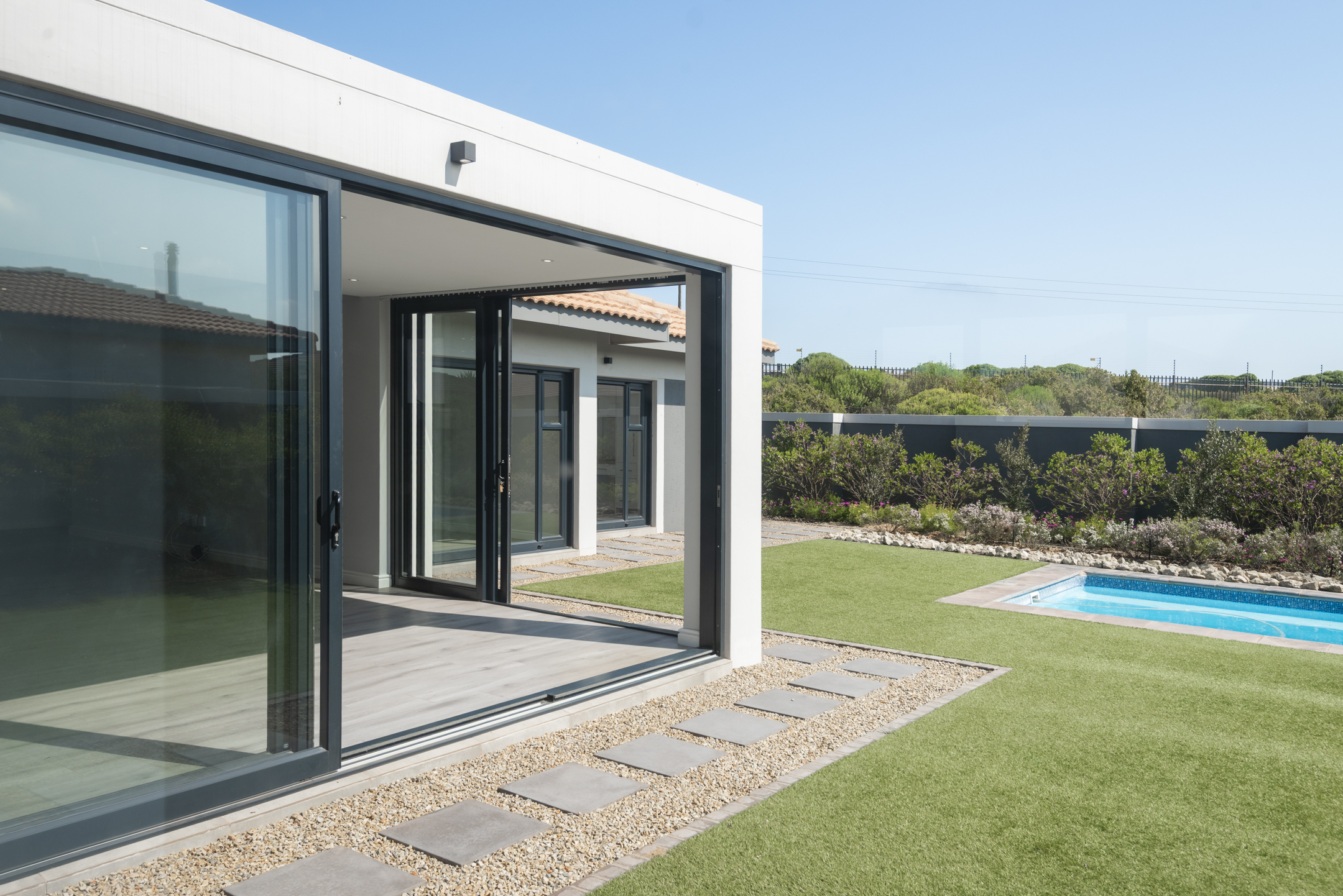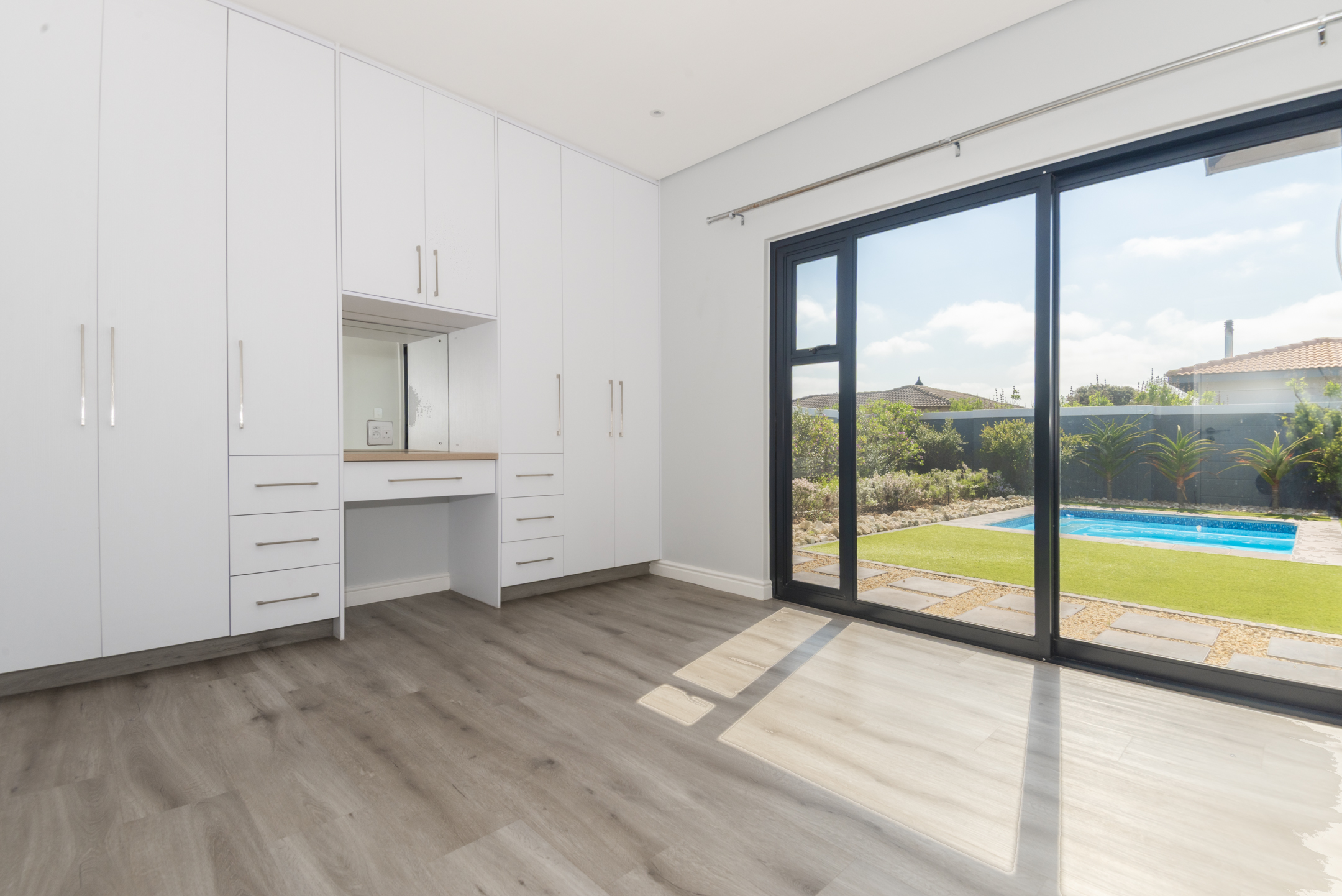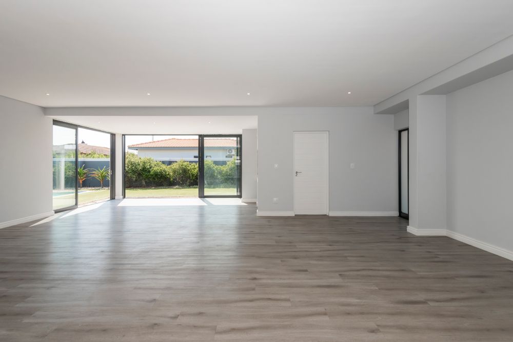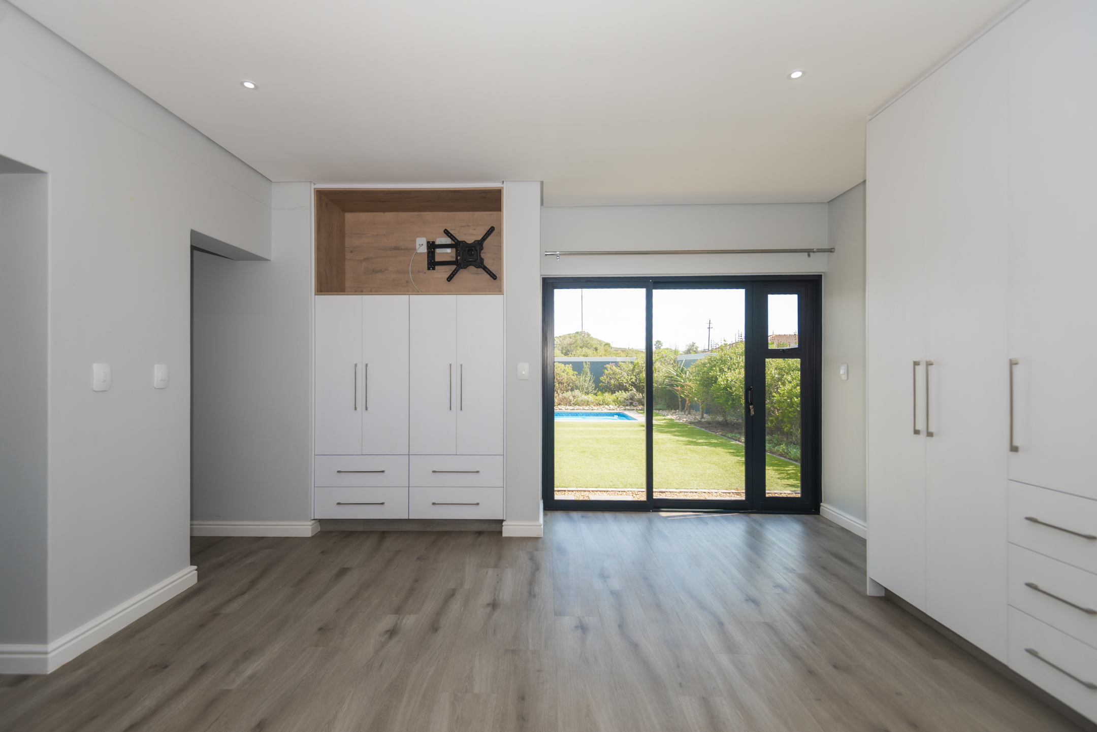 This gorgeous 4-bedroom family home really ticks all the boxes – luxury, comfort, and practicality rolled into one. The heart of the home is the spacious open-plan living area with its built-in braai and pizza oven, flowing straight out onto a sunny patio – the perfect spot for easy family get-togethers. Big sliding doors open up to the lush, irrigated garden and sparkling pool, giving you that seamless indoor-outdoor vibe.