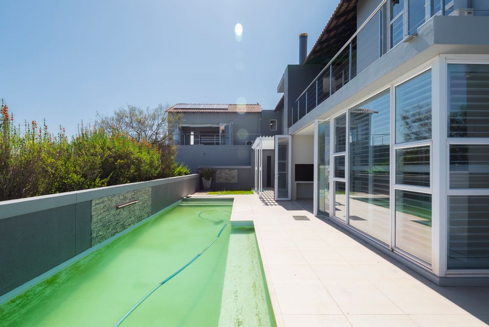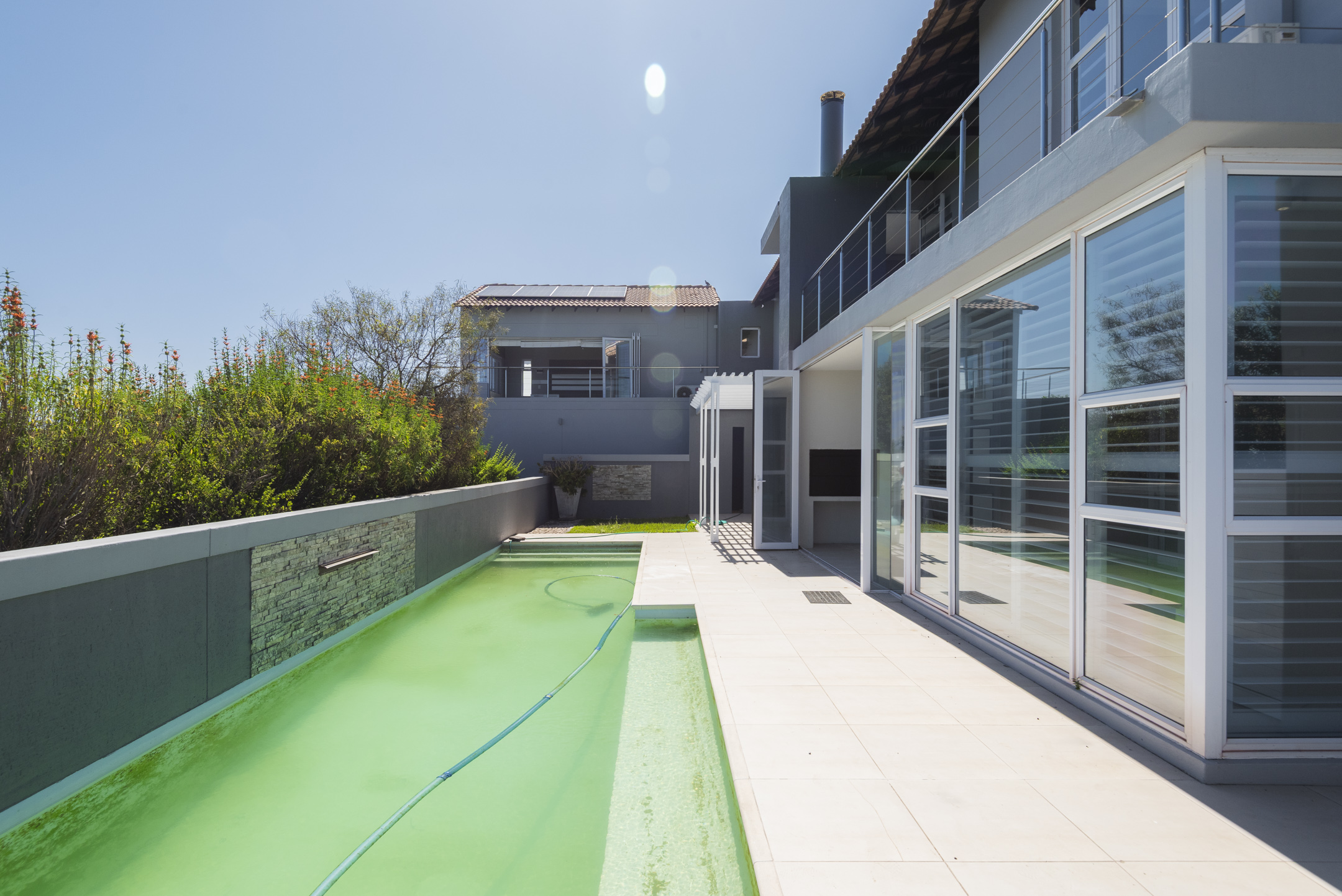 The living spaces flow beautifully — from a modern kitchen with gas stove to an enclosed braai room that opens to a sunny backyard and a sparkling salted pool. A cozy family room with a big open fireplace makes it easy to unwind together, while air conditioning keeps the temperature perfect in the study, master suite, living area, and guest room.