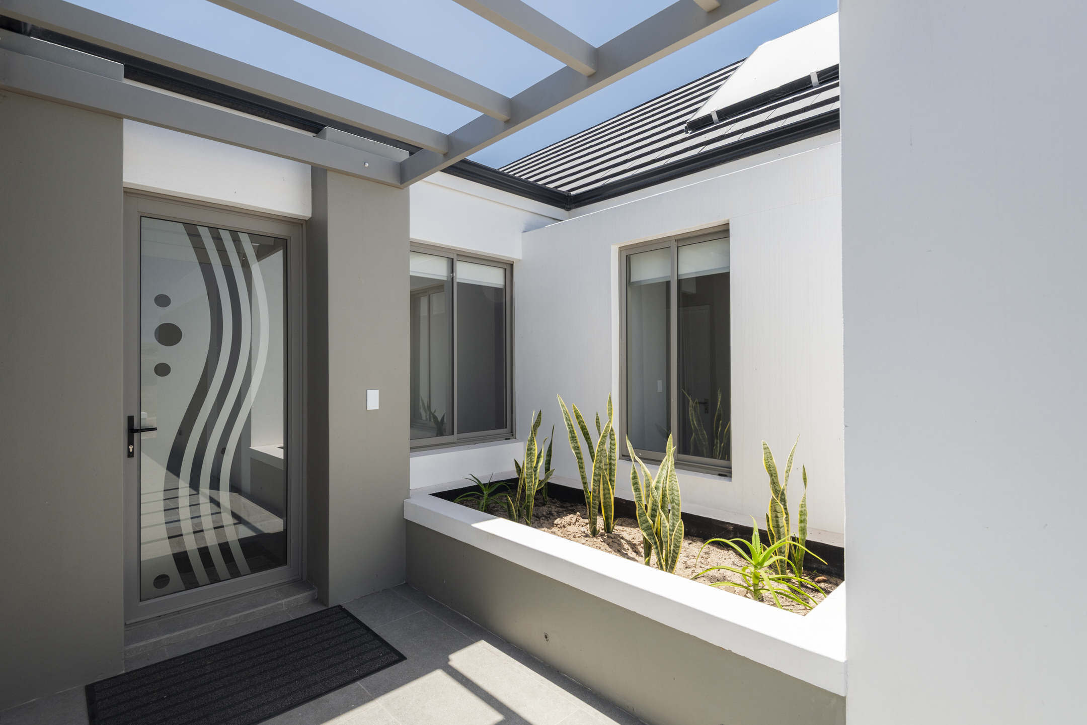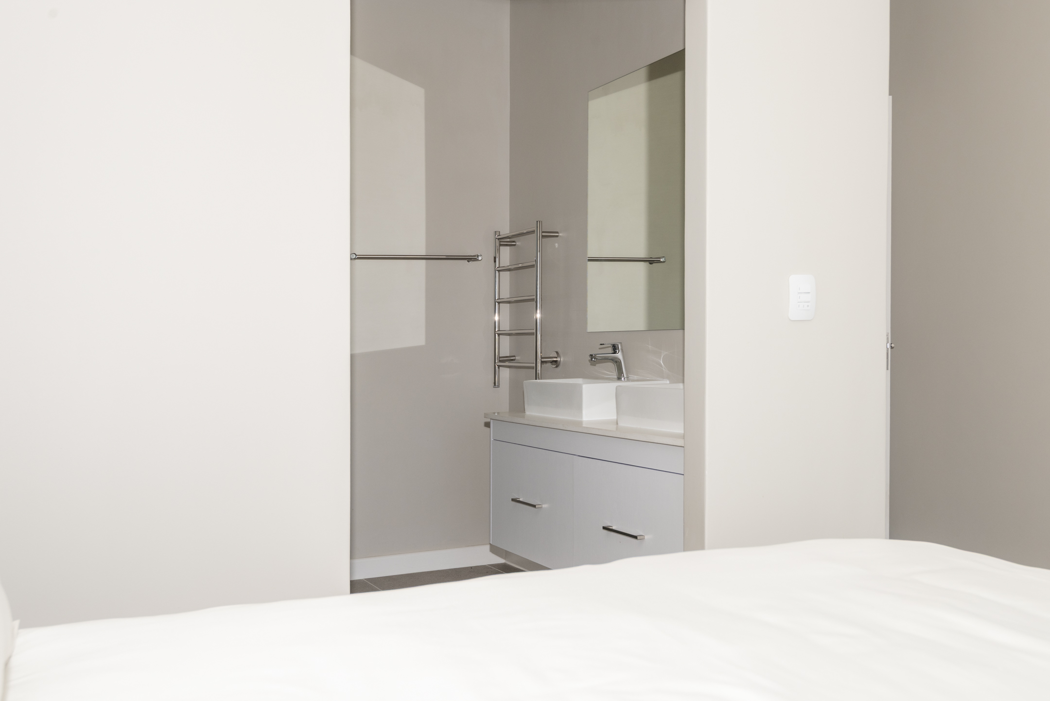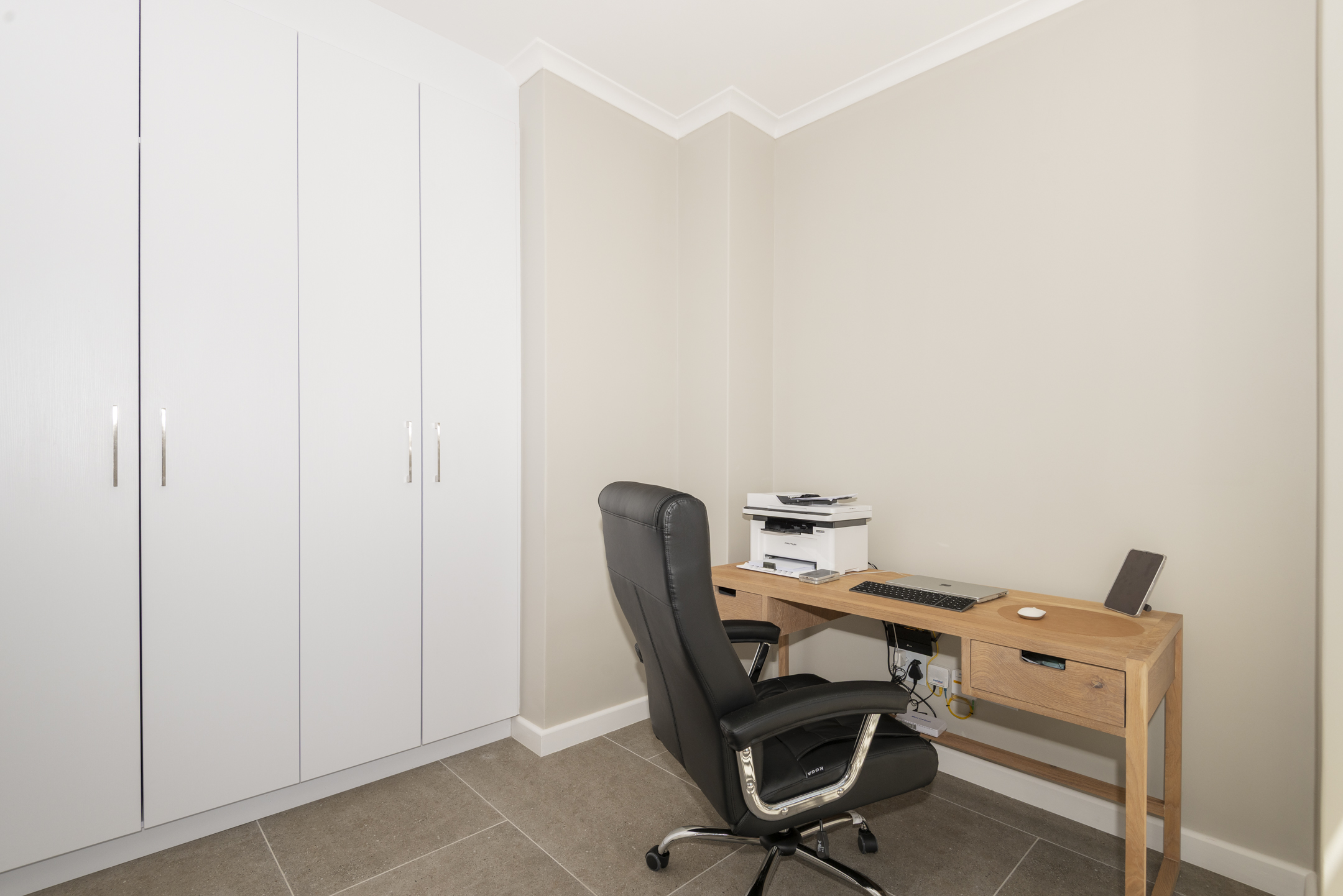 The main bedroom is all about comfort, with a full en-suite bathroom, double vanity, and sliding door access to the garden — ideal for morning coffee or quiet moments outdoors. The two guest bedrooms are well-sized and share a sleek, modern bathroom.