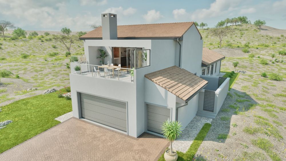 Upstairs, the fourth bedroom is complemented by a bathroom that also serves as a guest toilet and can easily be converted into a full en-suite. This level also boasts an additional lounge and dining area with a built-in braai, opening onto a balcony—perfect for relaxed entertaining.