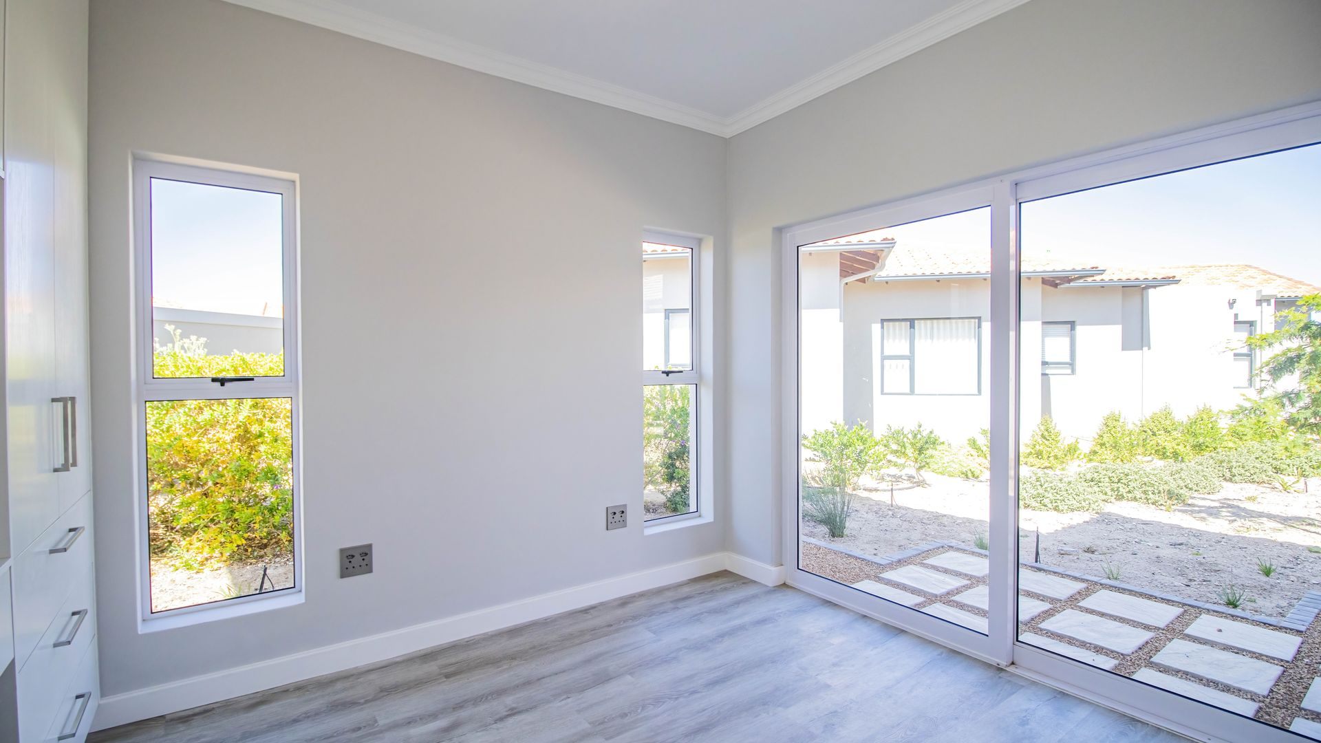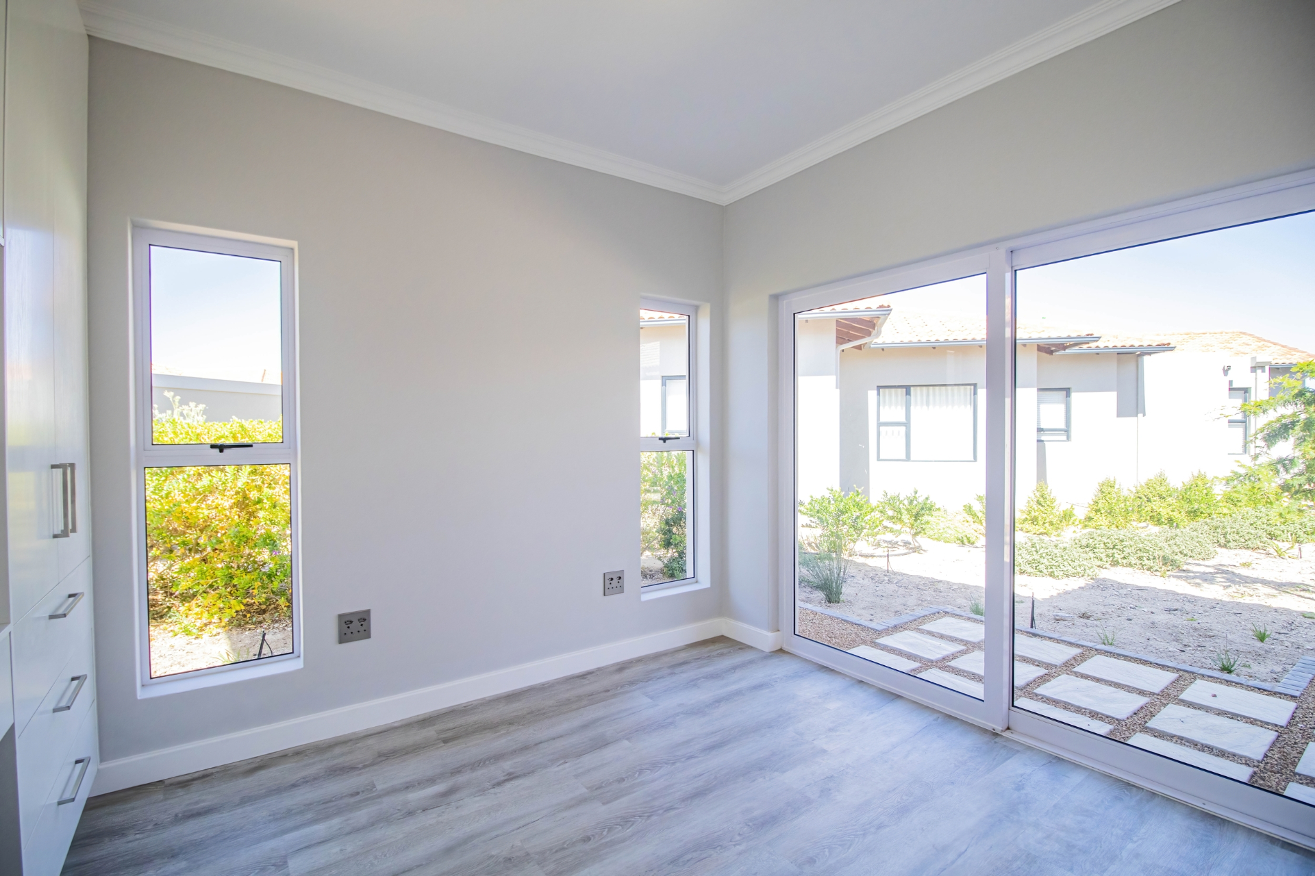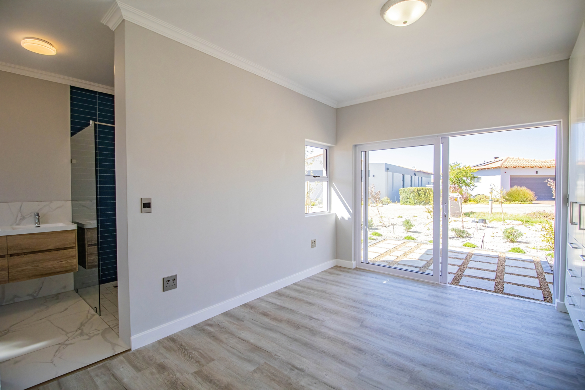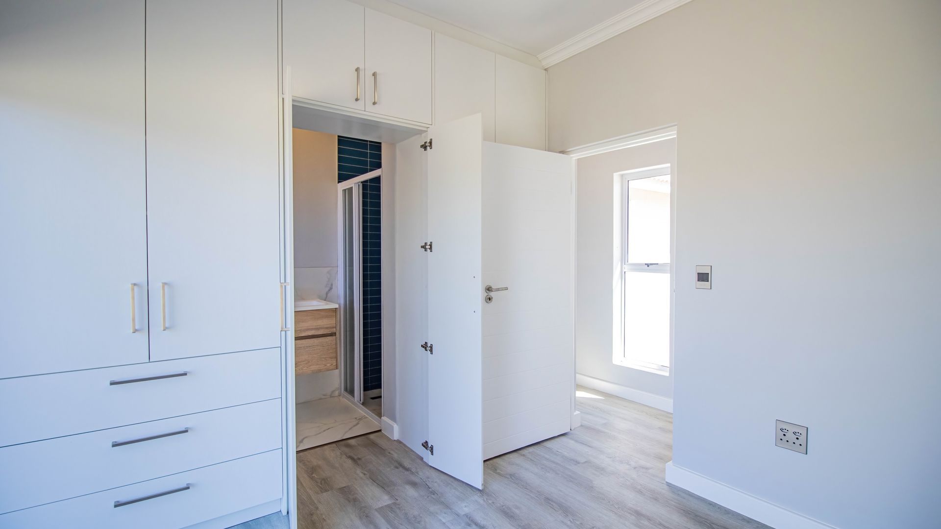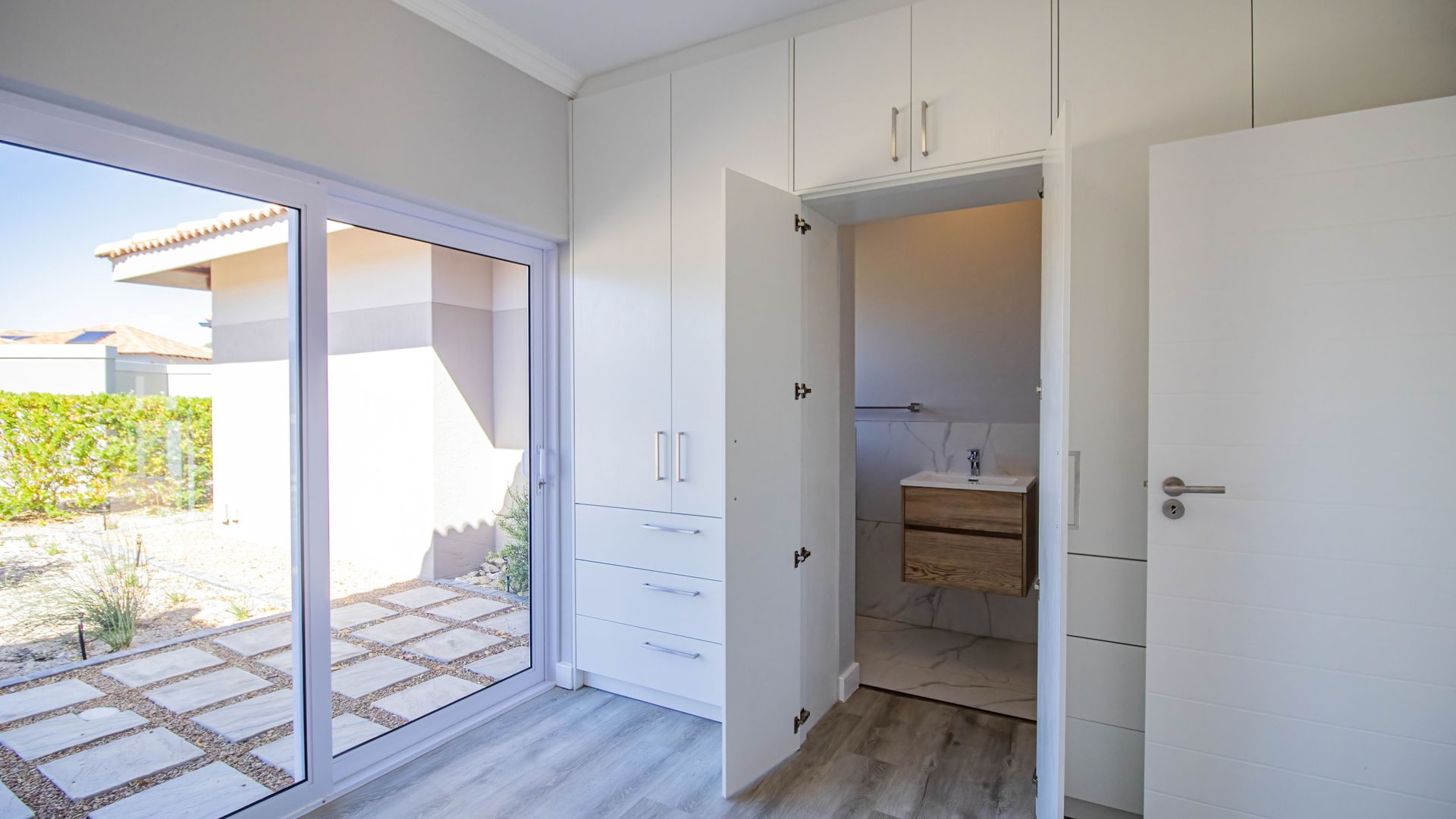 This beautifully designed home, situated in the sought-after Langebaan Country Estate, offers four spacious bedrooms, each with its own en-suite bathroom and built-in cupboards, plus a separate guest toilet.