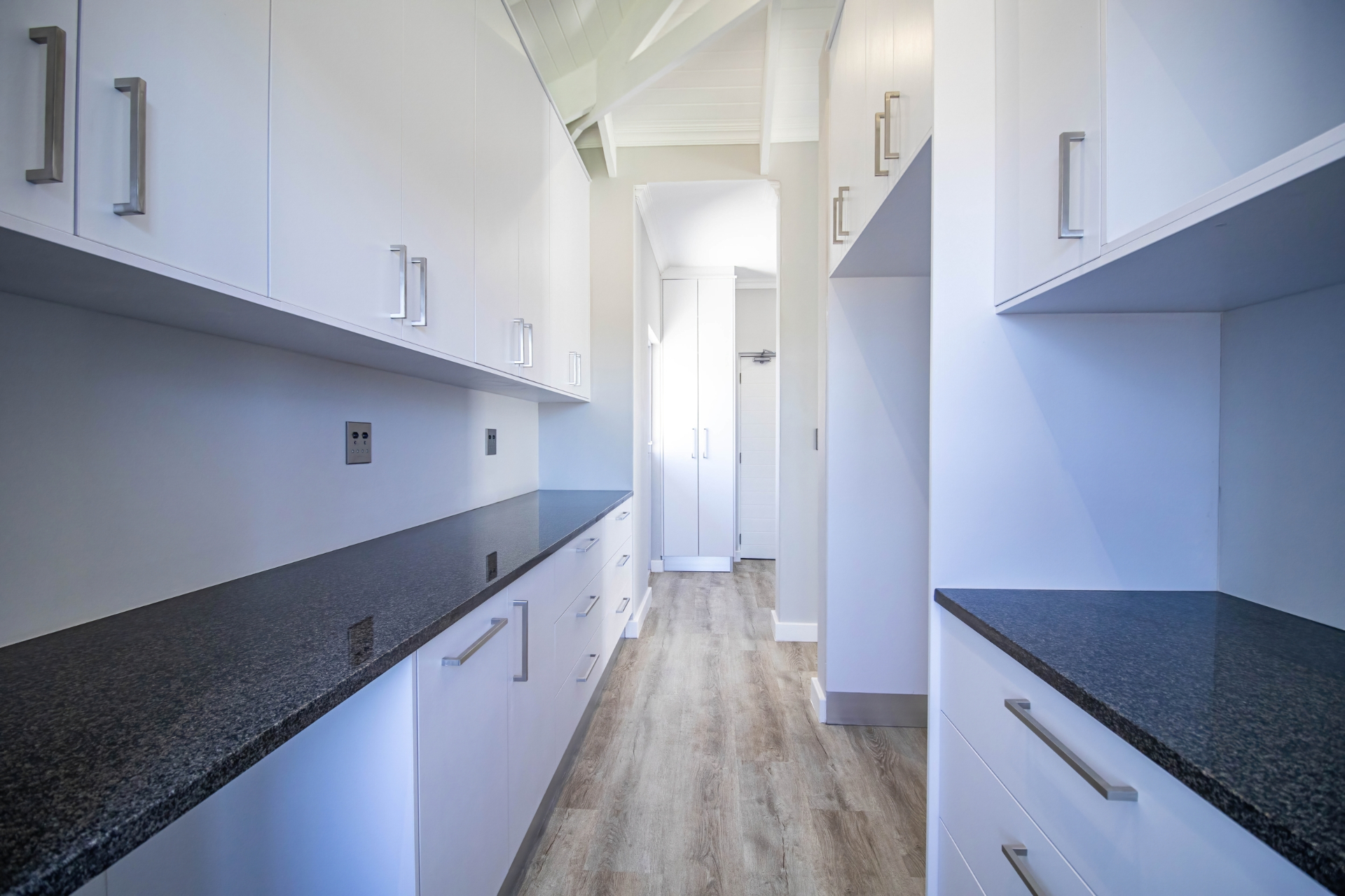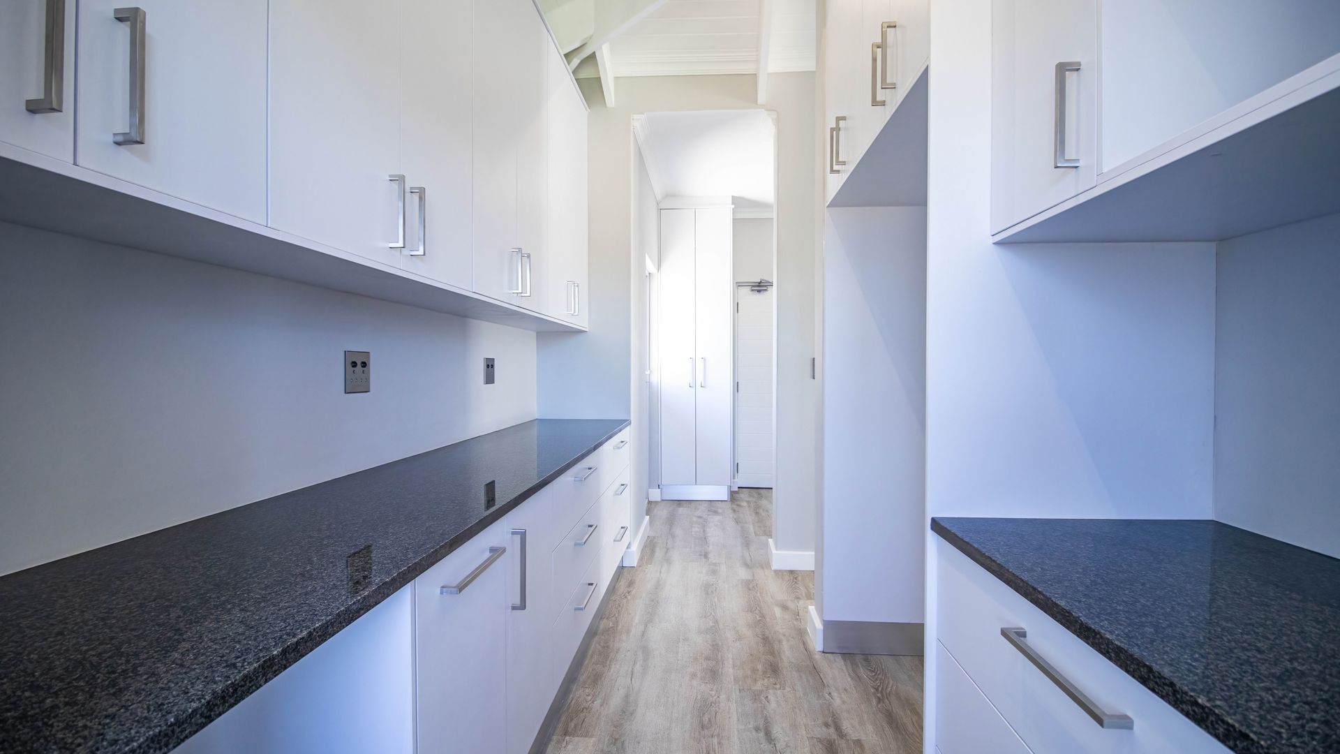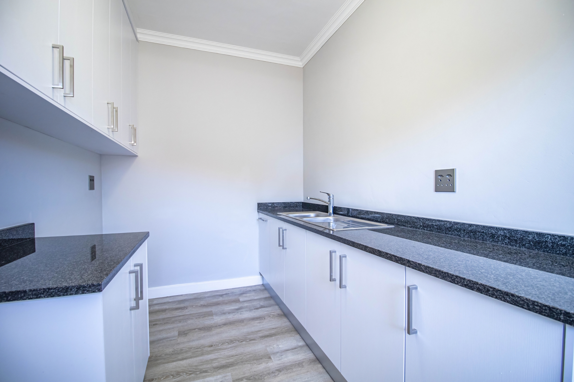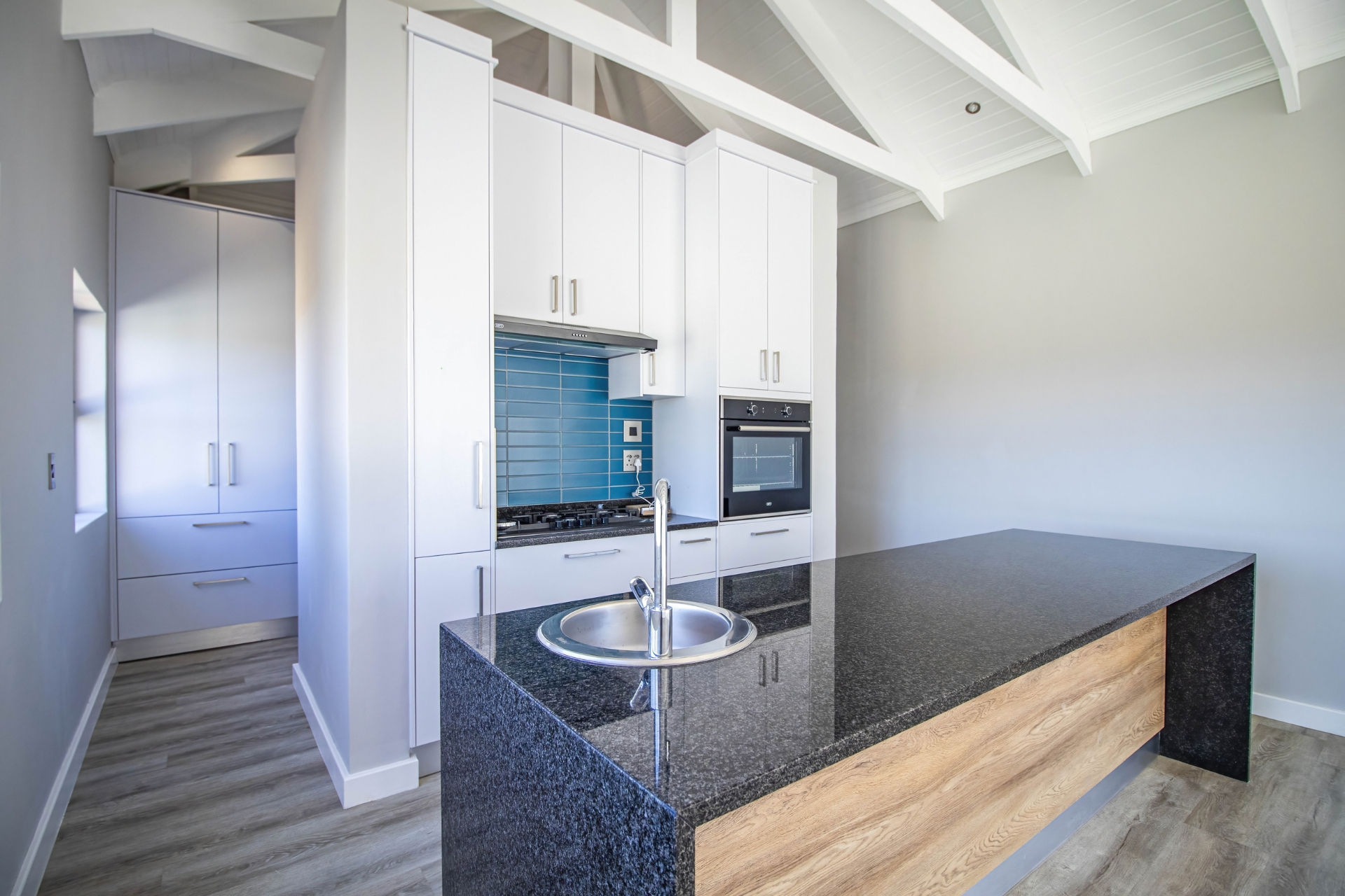 The open-plan kitchen and living area create a seamless flow, perfect for modern living and entertaining. The kitchen is cleverly designed with hidden cupboard space and a separate scullery, keeping everything neat and functional. An indoor braai area enhances the home’s entertainment appeal, while a dedicated home office or study provides the ideal work-from-home solution.