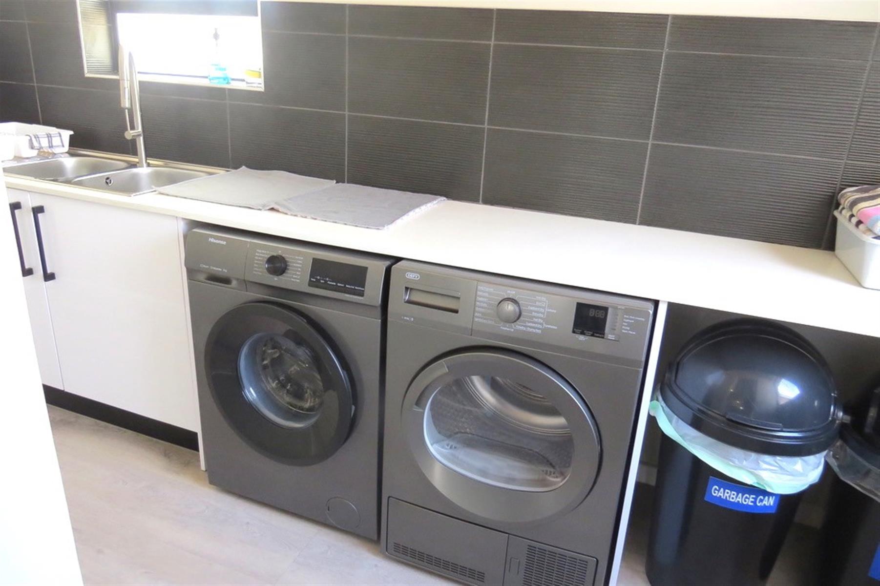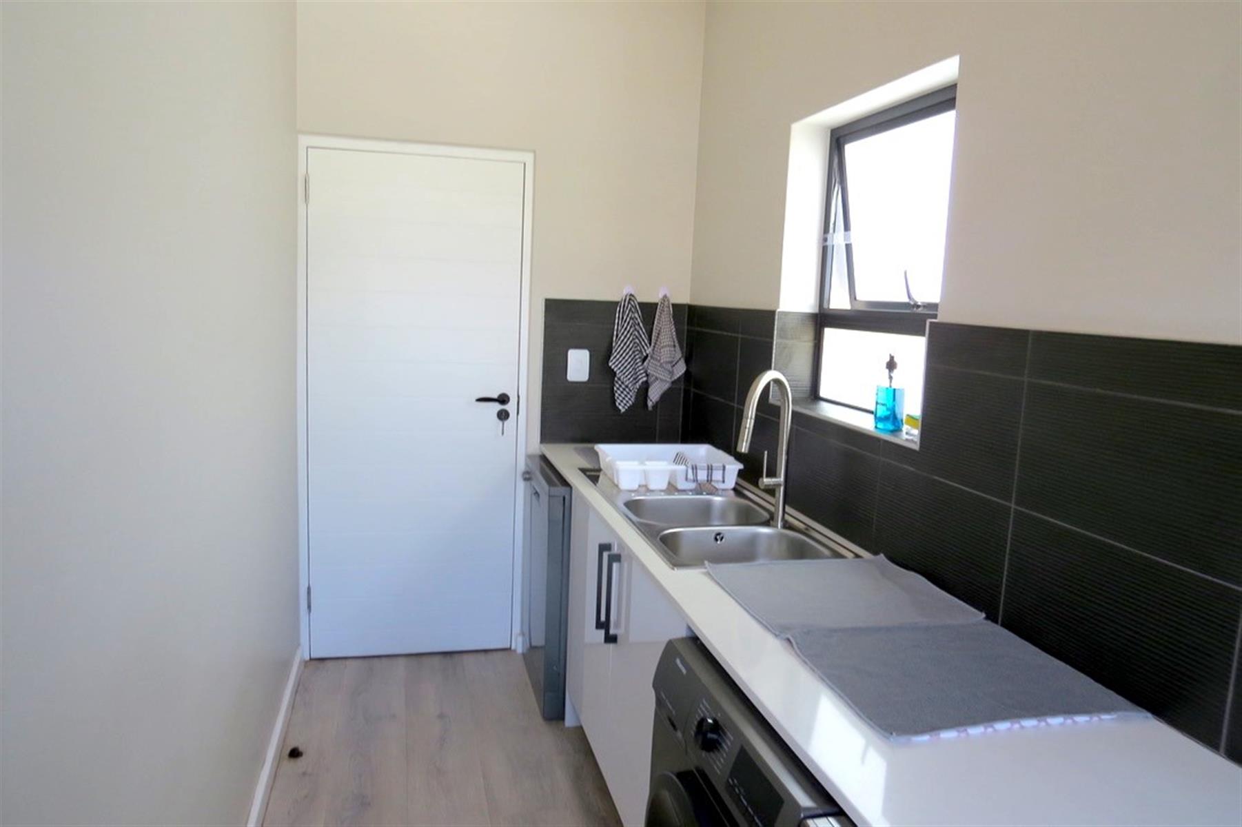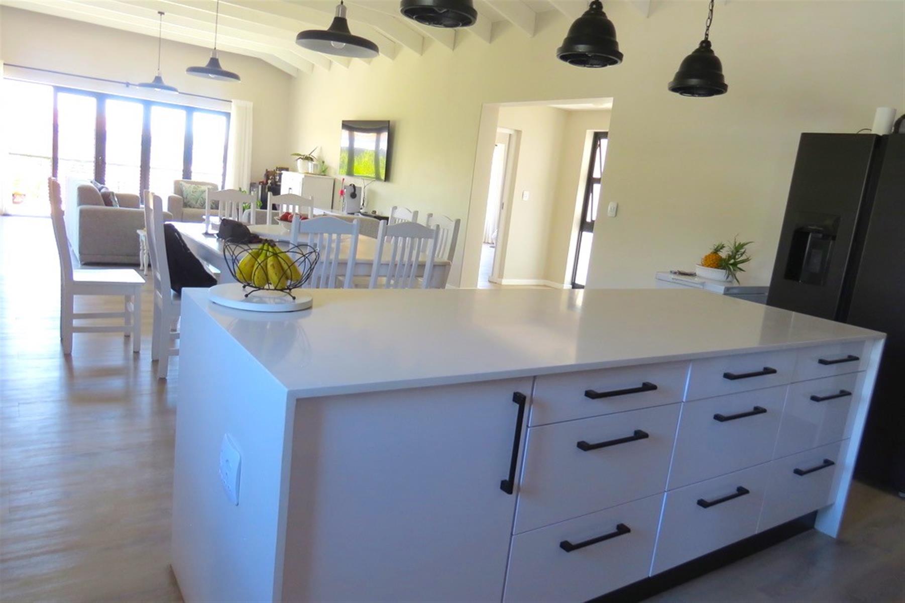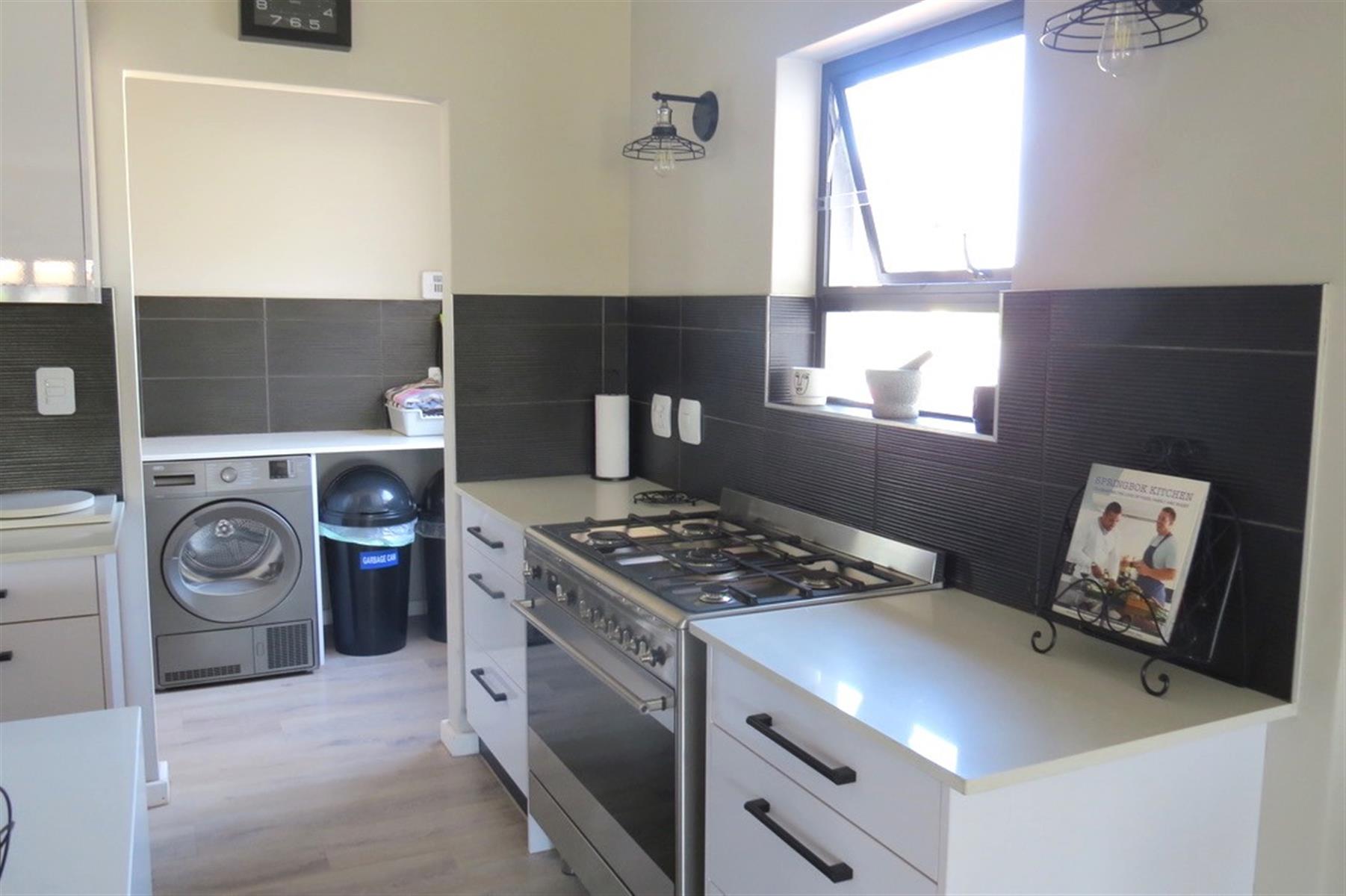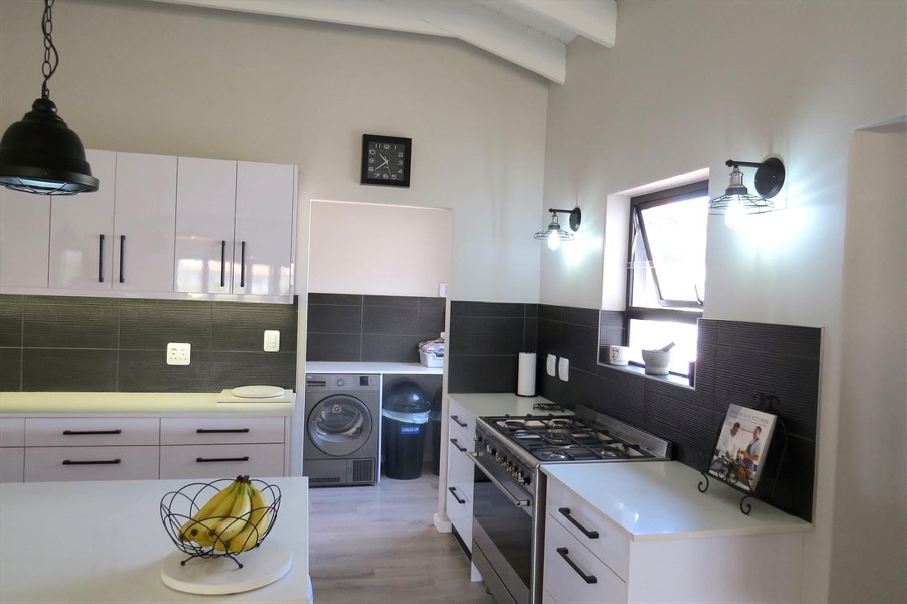 The open-plan layout features a cozy lounge and dining room, perfect for entertaining or enjoying family meals. The kitchen is equipped with a gas hob, electric oven, and ample built-in cupboards and drawers, catering to all your culinary needs. A scullery adds to the functionality, while the walk in pantry offers plenty storage space. Natural light floods the living areas through sliding doors, enhancing the inviting atmosphere of the home.
