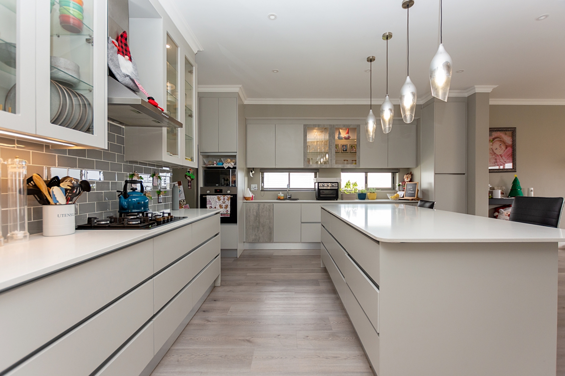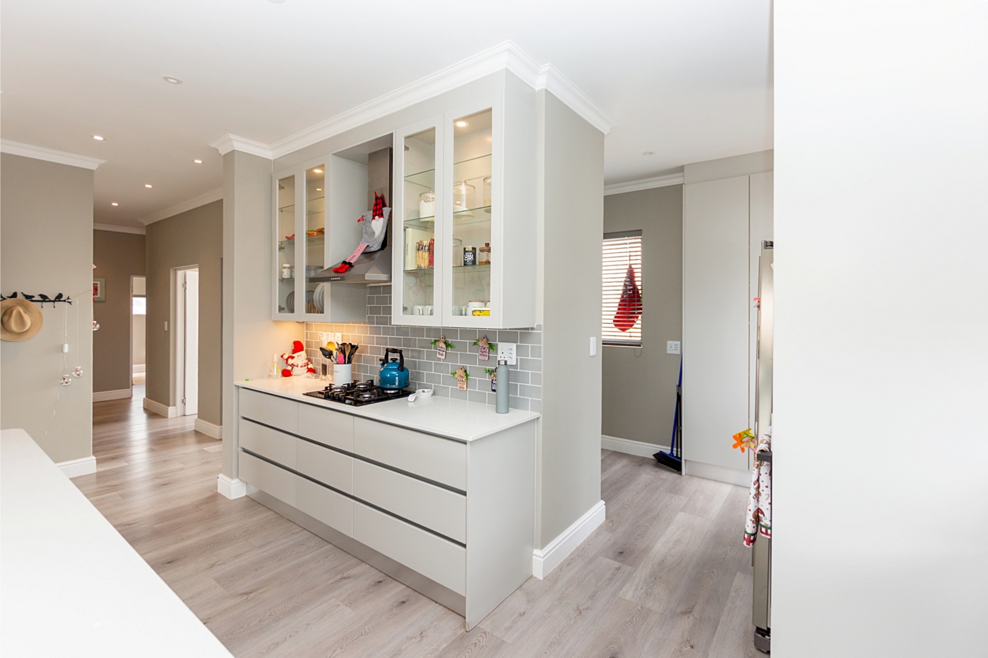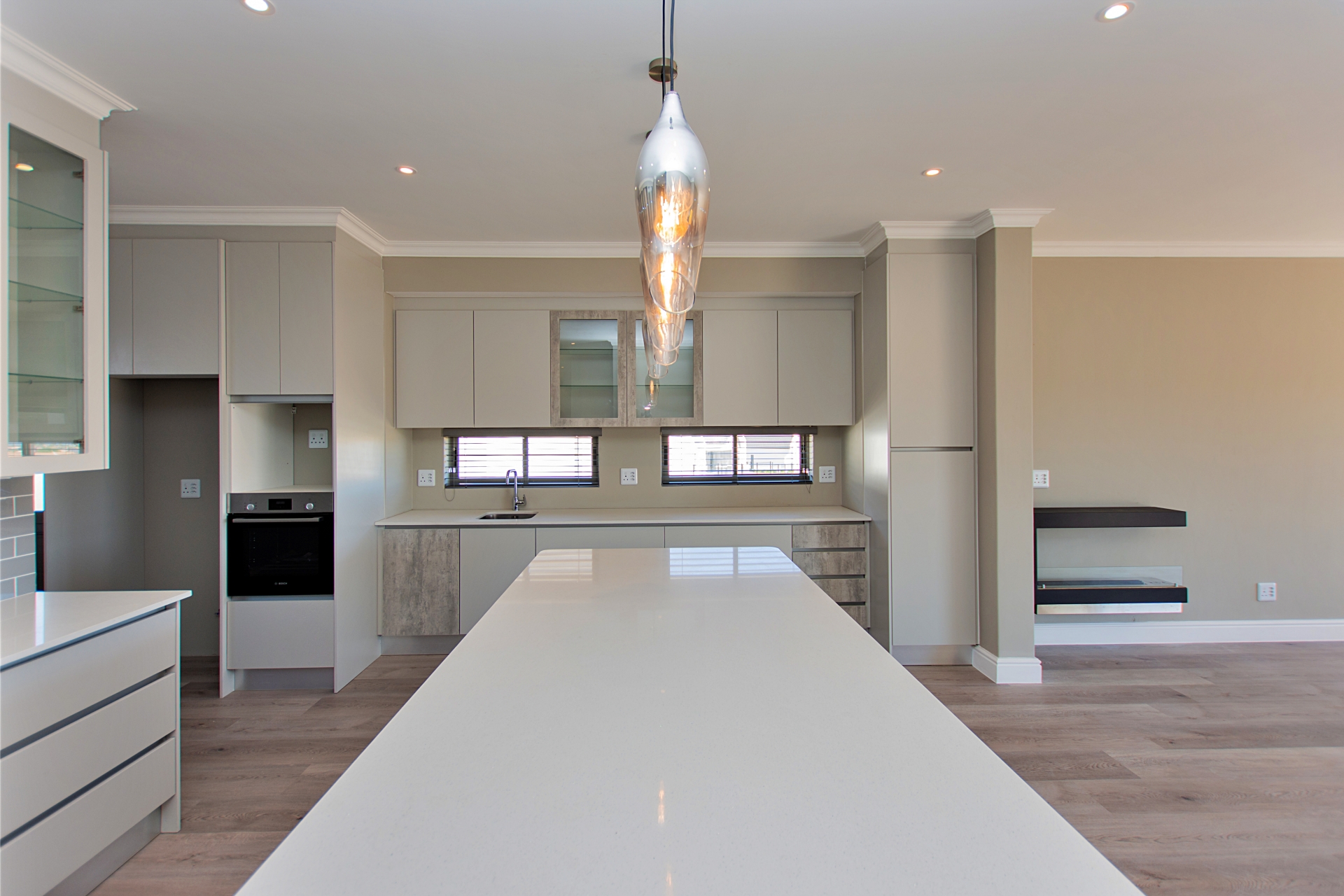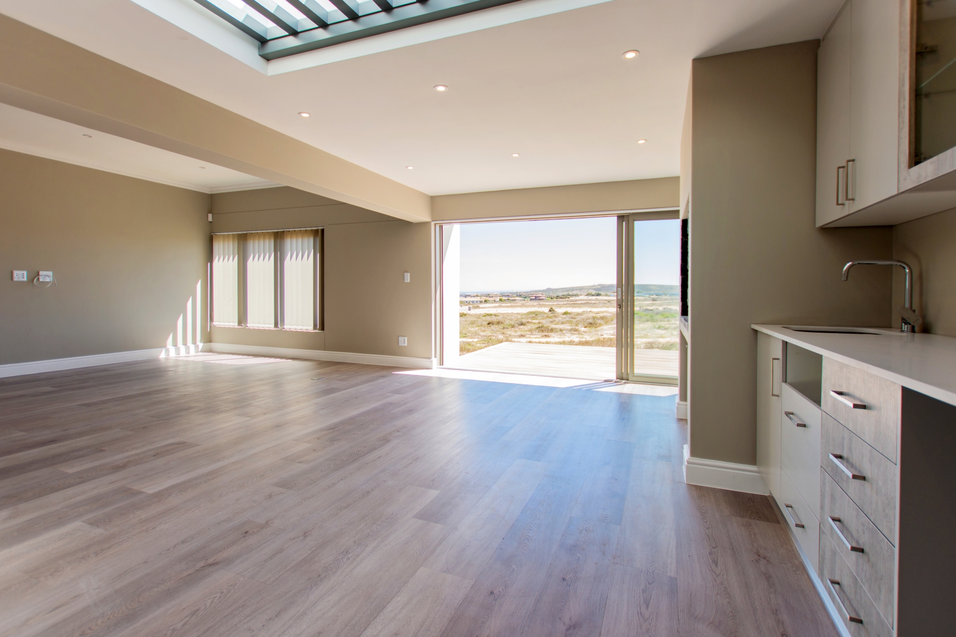 From the moment you enter through the double-volume entrance, bathed in natural light from an overhead skylight, you’re welcomed into a space that feels both expansive and inviting. The open-plan layout seamlessly blends a stylish kitchen with centre island and breakfast seating, flowing effortlessly into the lounge, dining area, and a dedicated scullery and laundry space, designed with practicality in mind.