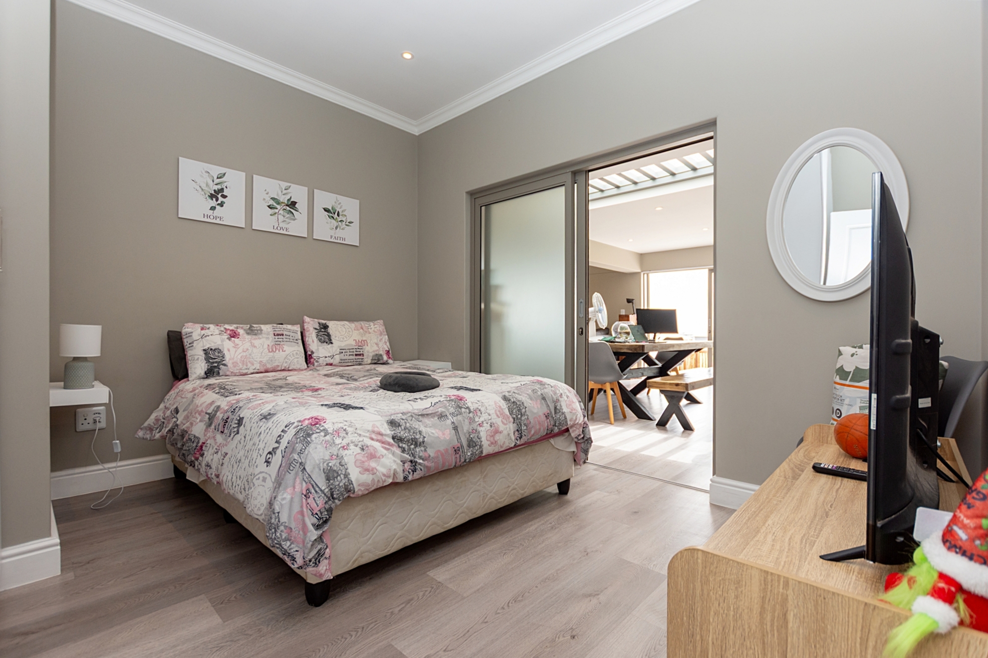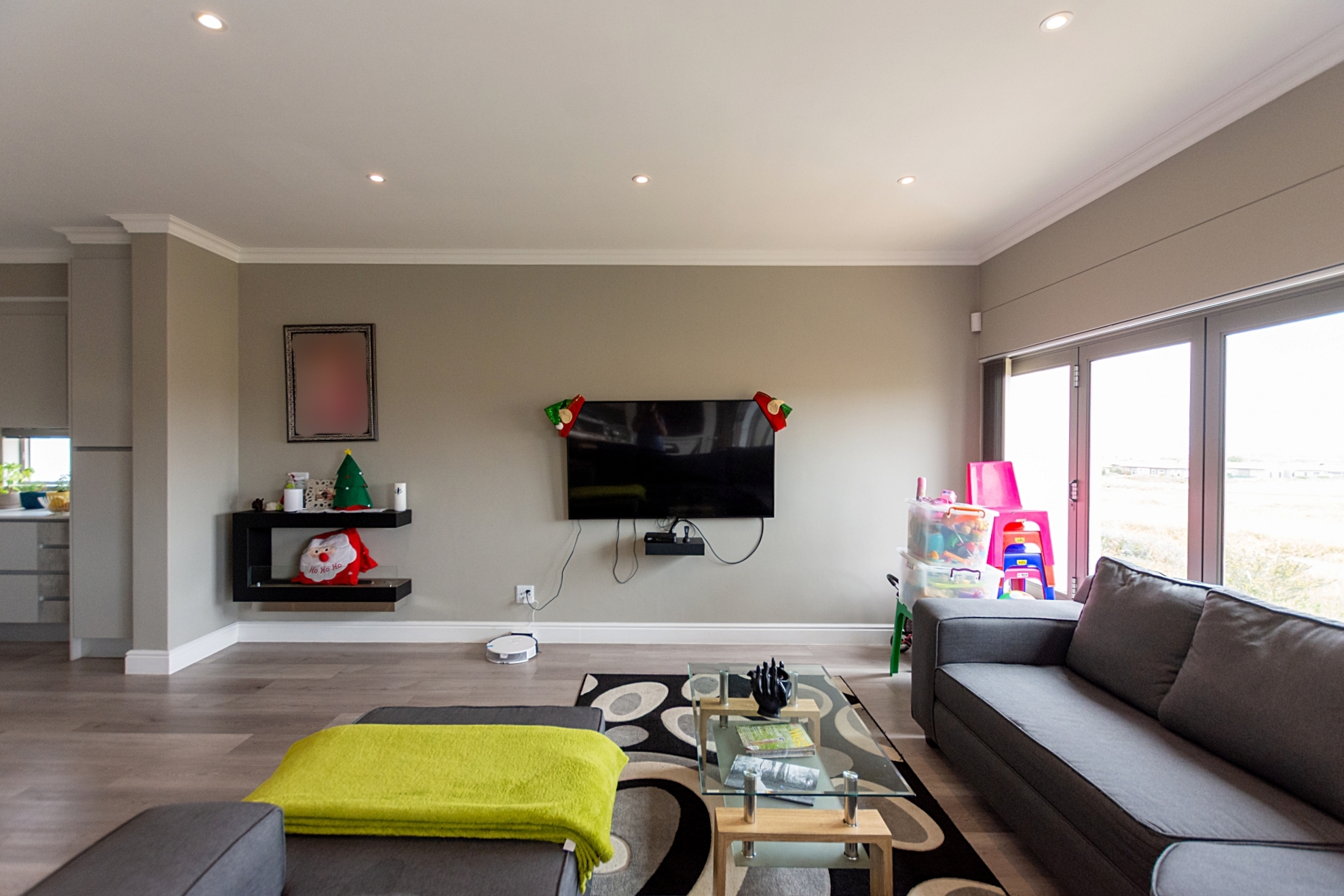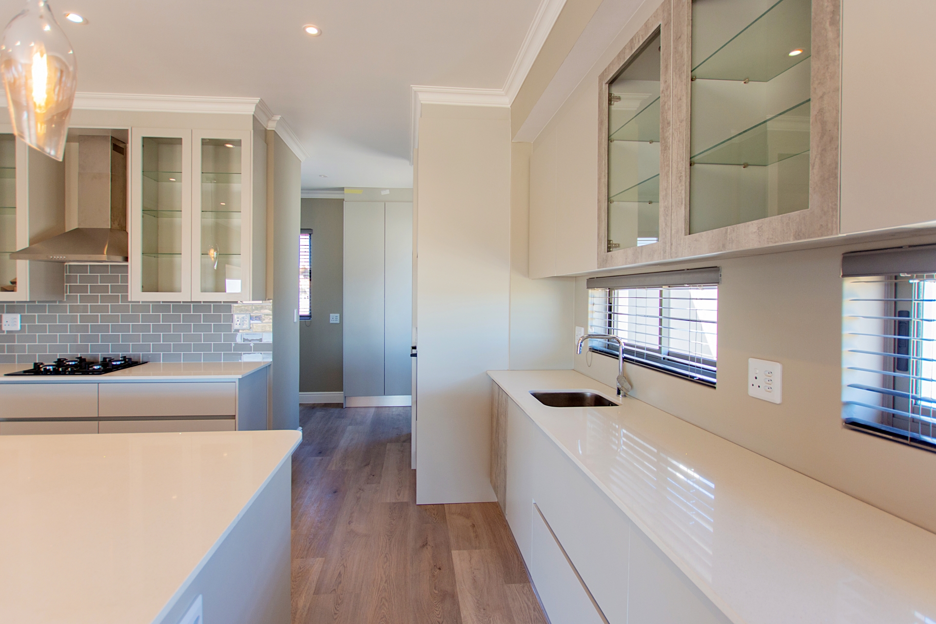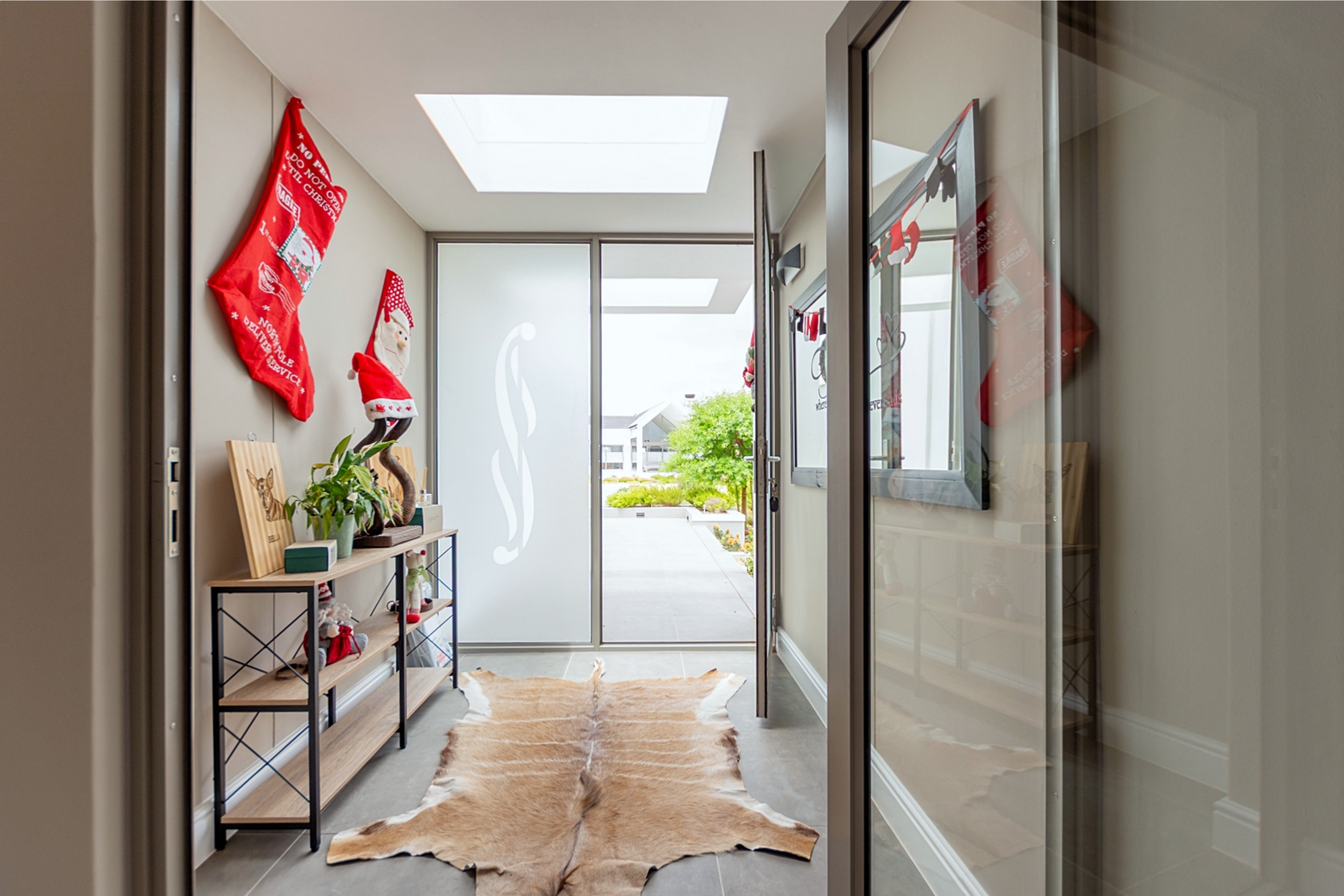 From the moment you enter through the double-volume entrance, bathed in natural light from an overhead skylight, you’re welcomed into a space that feels both expansive and inviting. The open-plan layout seamlessly blends a stylish kitchen with centre island and breakfast seating, flowing effortlessly into the lounge, dining area, and a dedicated scullery and laundry space, designed with practicality in mind.