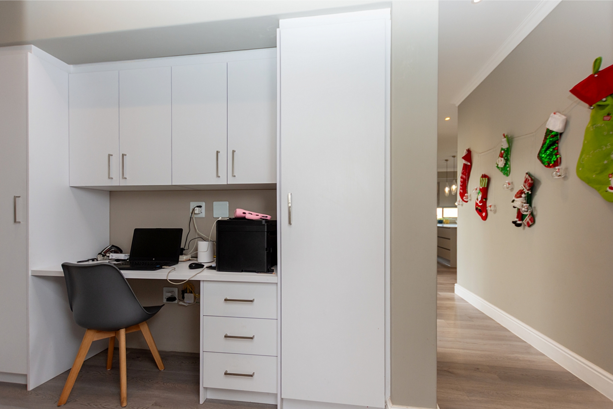 Function meets convenience in the extra-width double garage, featuring tiled floors and built-in cupboard, ideal for storage, hobbies, or a workspace. Sustainability is woven into the home’s design with a solar geyser, inverter system, and six solar panel, helping reduce energy costs while supporting greener living. Extras include fibre internet, an alarm system with outdoor beams, and irrigated garden landscaping for effortless upkeep.