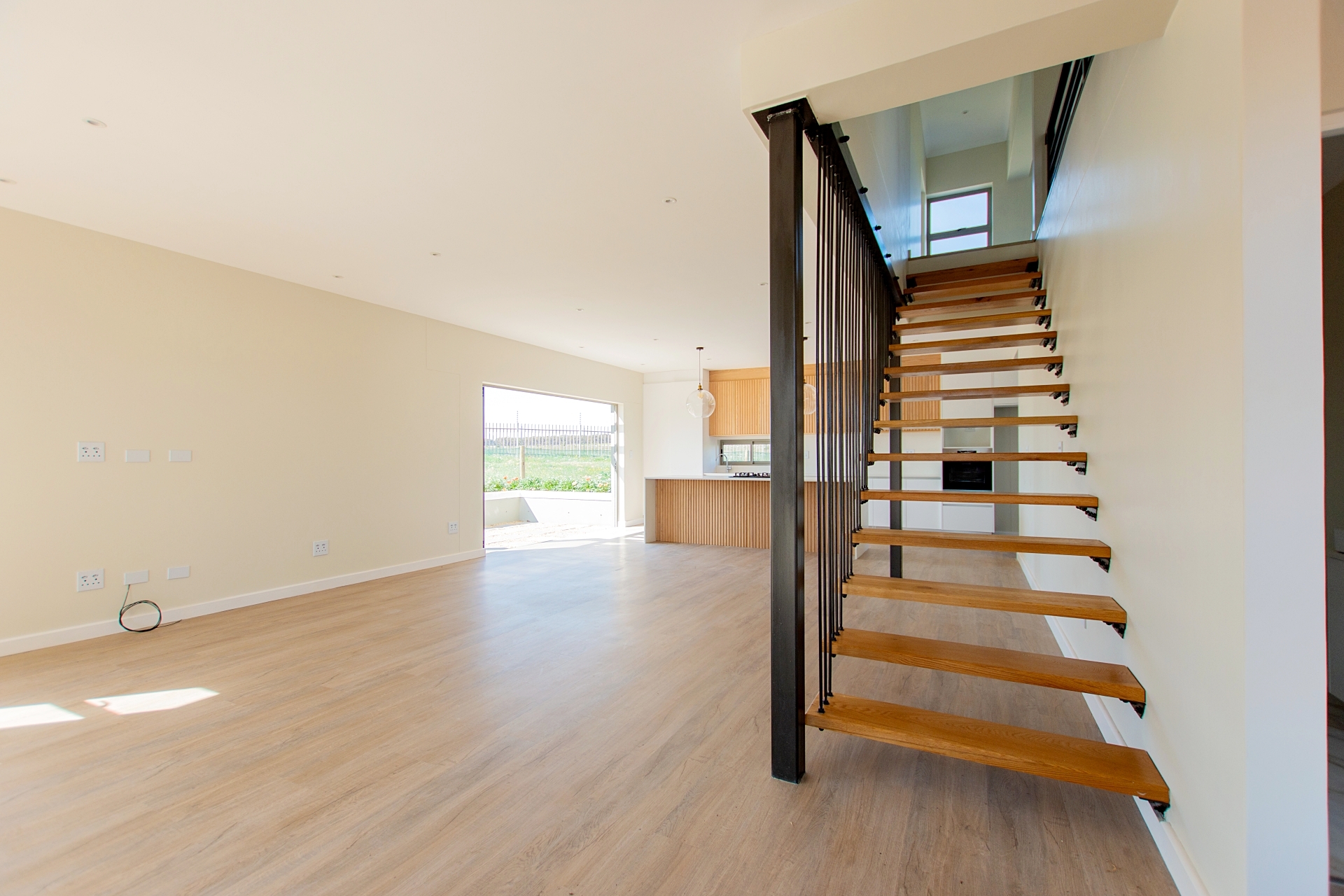 This brand-new three-bedroom double-storey residence in Chardon Village offers a refined balance of contemporary design, practical living, and relaxed West Coast style within Langebaan Country Estate. Set on a well-sized plot the home enjoys tranquil greenbelt and farmland views with distant lagoon vistas adding to its appeal.