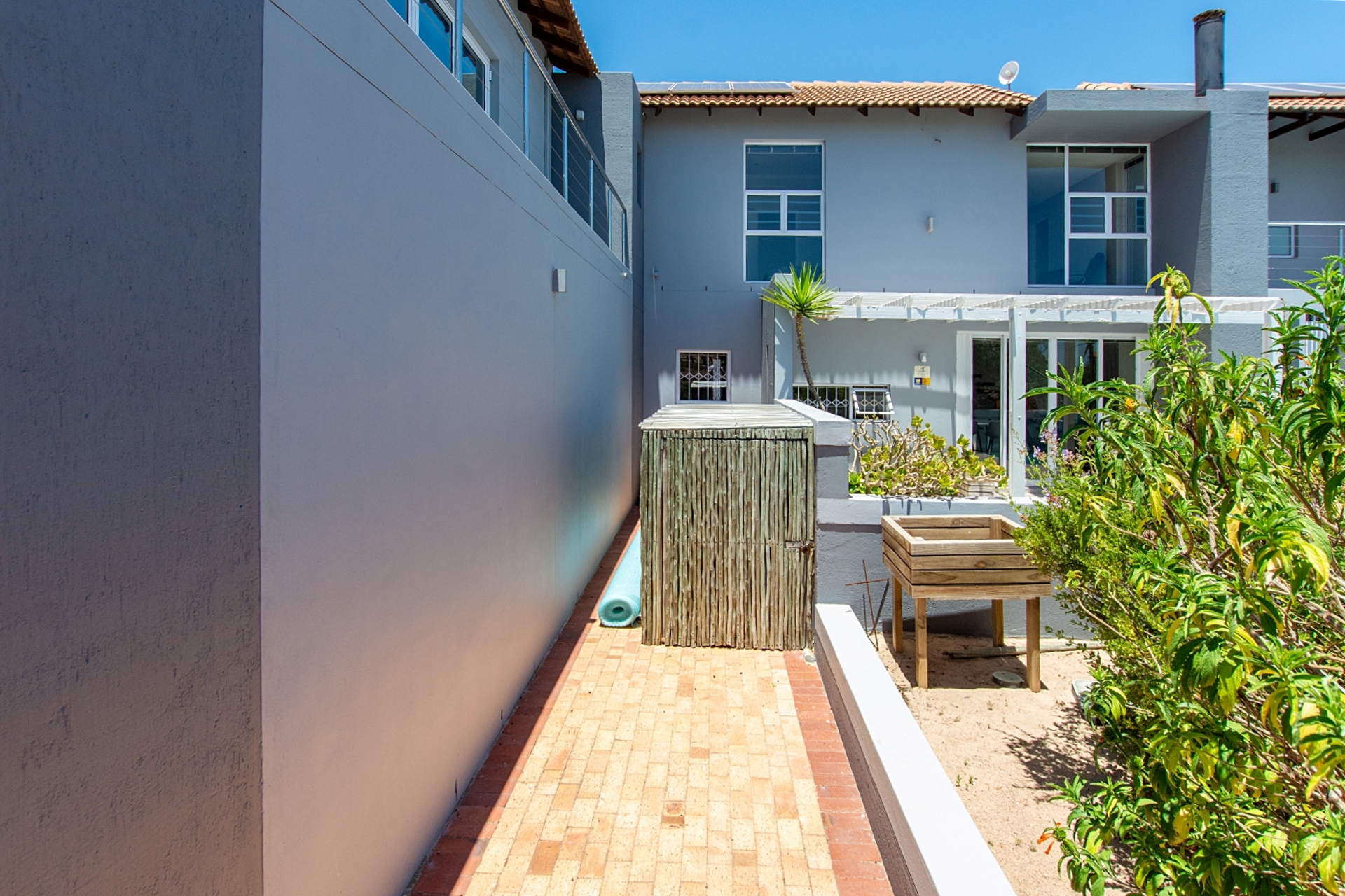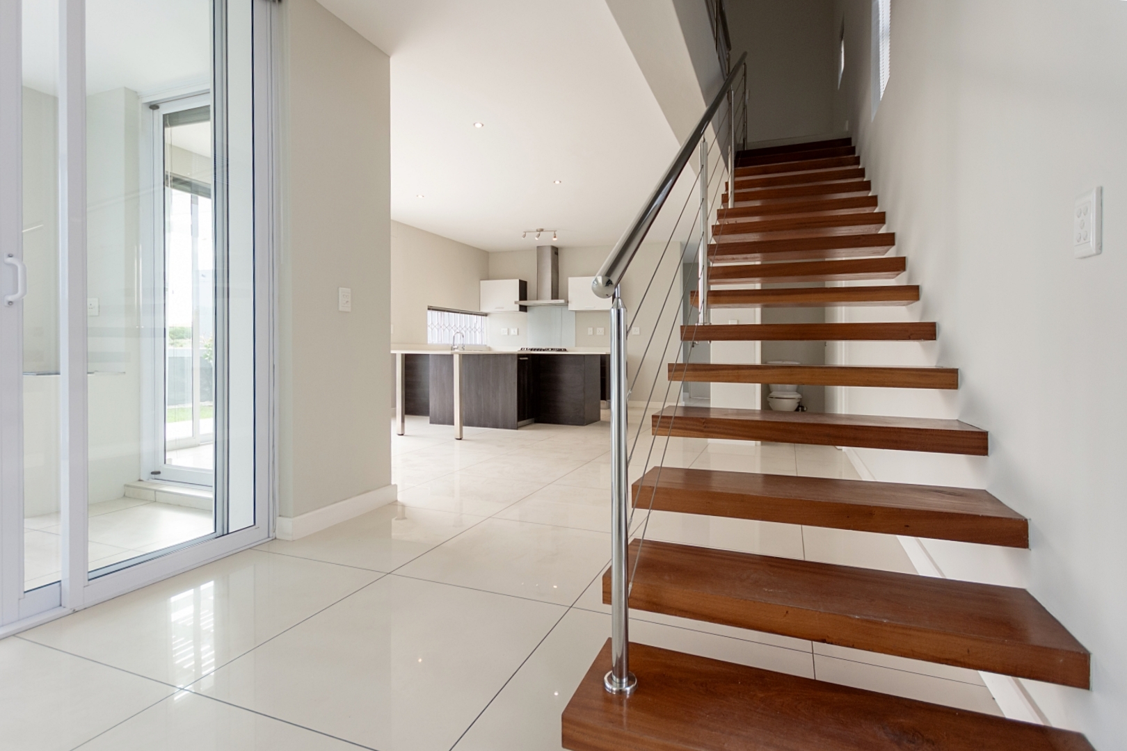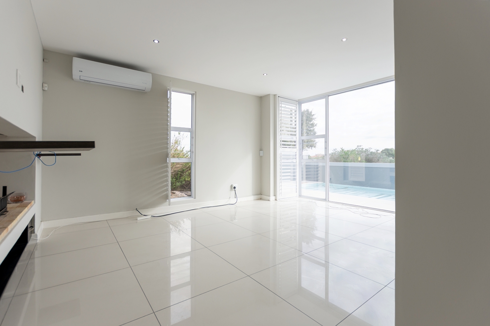 The north-facing orientation ensures natural light throughout the day. A welcoming lounge flowing into a separate braai and entertainment room that opens onto the salt-chlorinated pool and walled garden, perfect for private gatherings and year-round enjoyment.