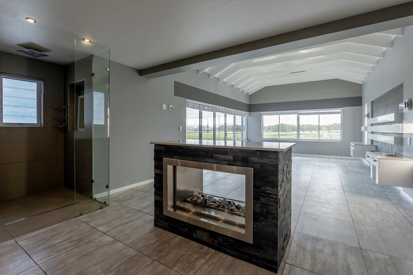 The master suite exudes a penthouse feel with its open-plan layout, double-sided gas fireplace, and private balcony that captures breath-taking views and beautiful West Coast sunsets across the fairways and lagoon.