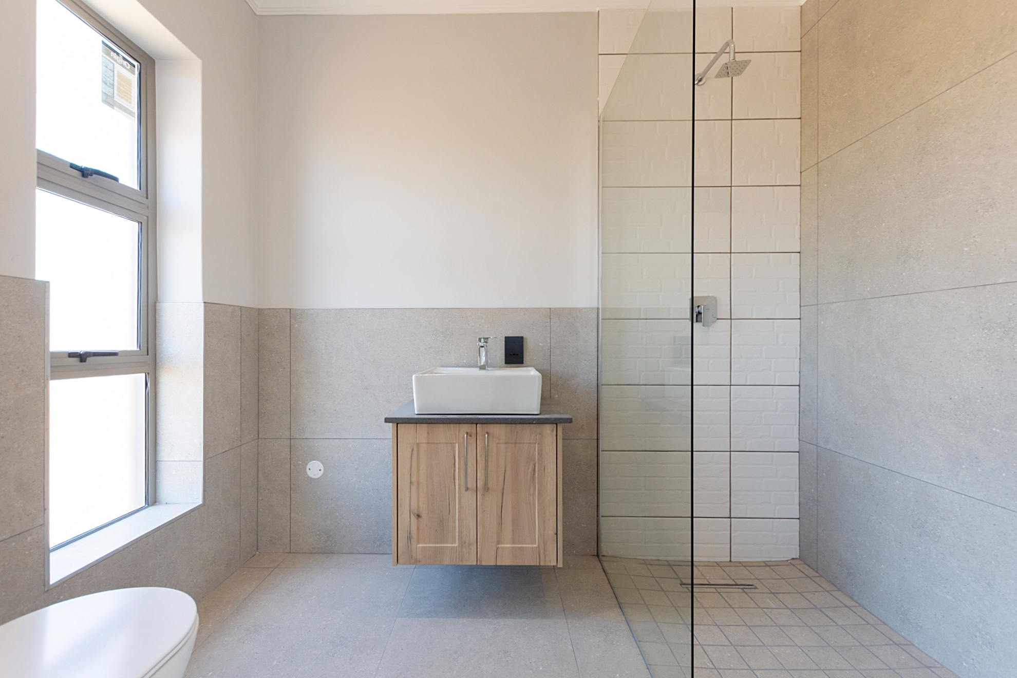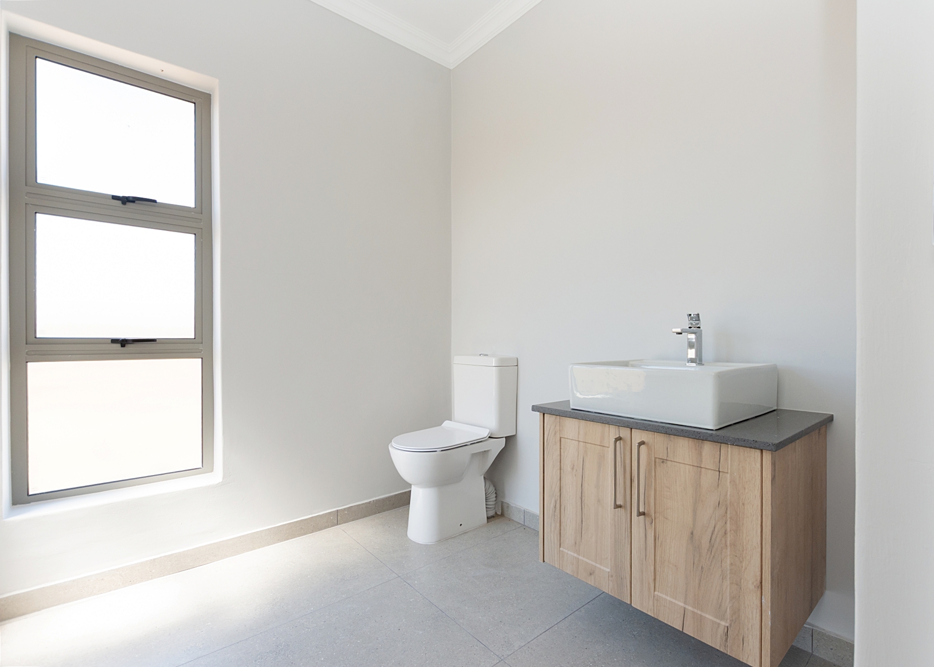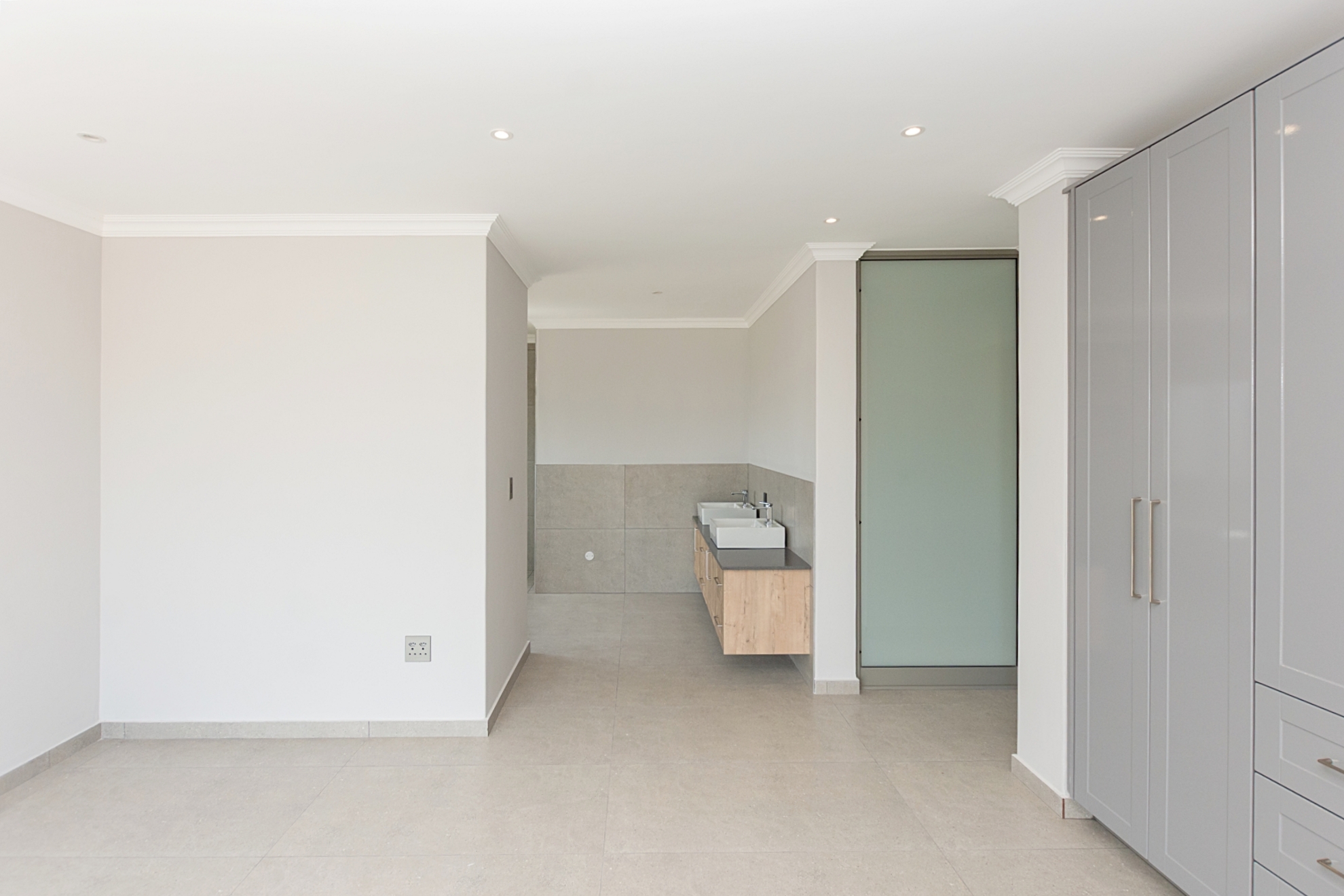 The ground floor opens into a bright living area where the lounge, dining space and kitchen all connect in a natural flow. The kitchen offers clean, contemporary finishes with quality cabinetry, a free-standing a gas hob and electric oven, and a separate scullery that keeps the workspace uncluttered. The central island will complete the heart of the home beautifully. A guest bathroom is conveniently placed downstairs.