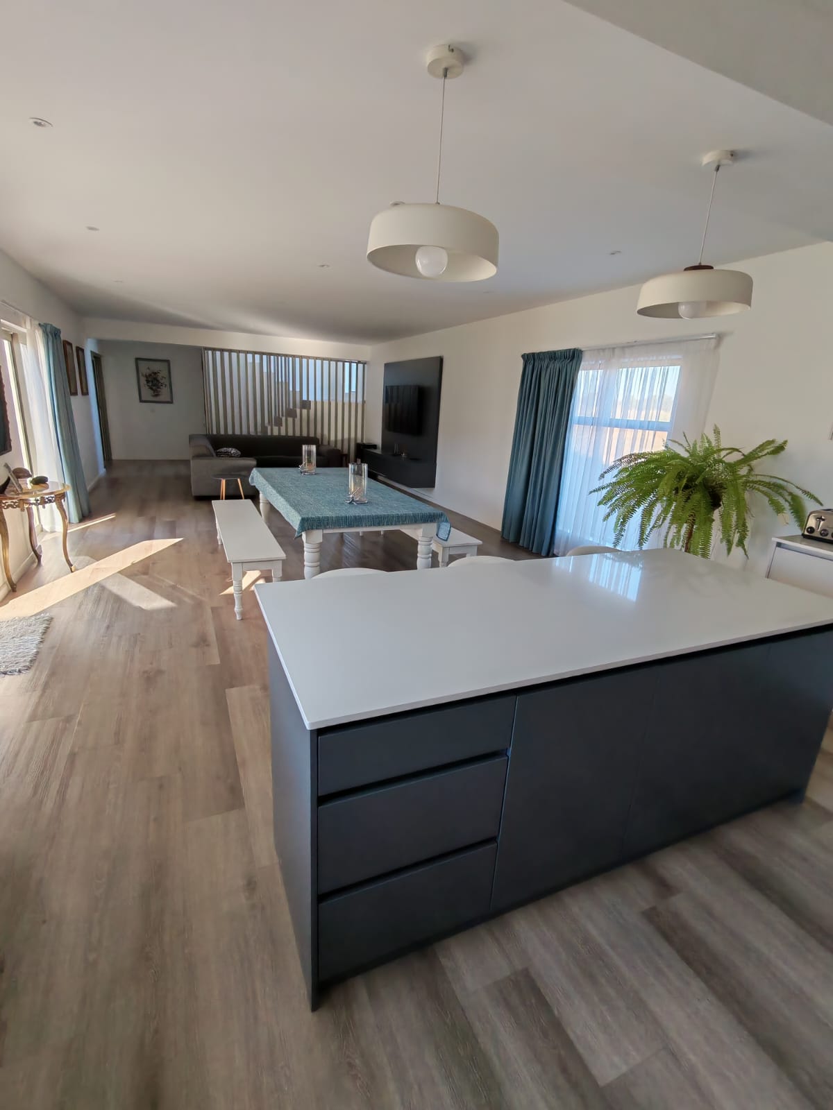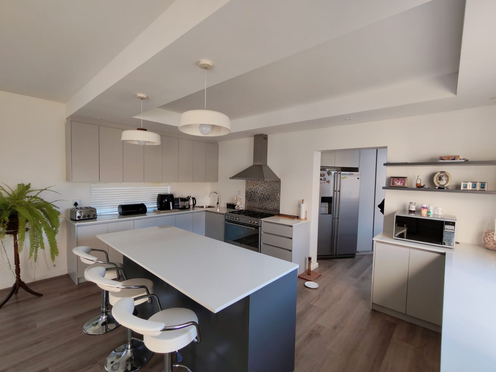 The main living area is spacious and welcoming, combining a modern open-plan kitchen, dining area and lounge with excellent flow. Direct access from the extra-wide double garage through the scullery adds daily convenience and practicality.