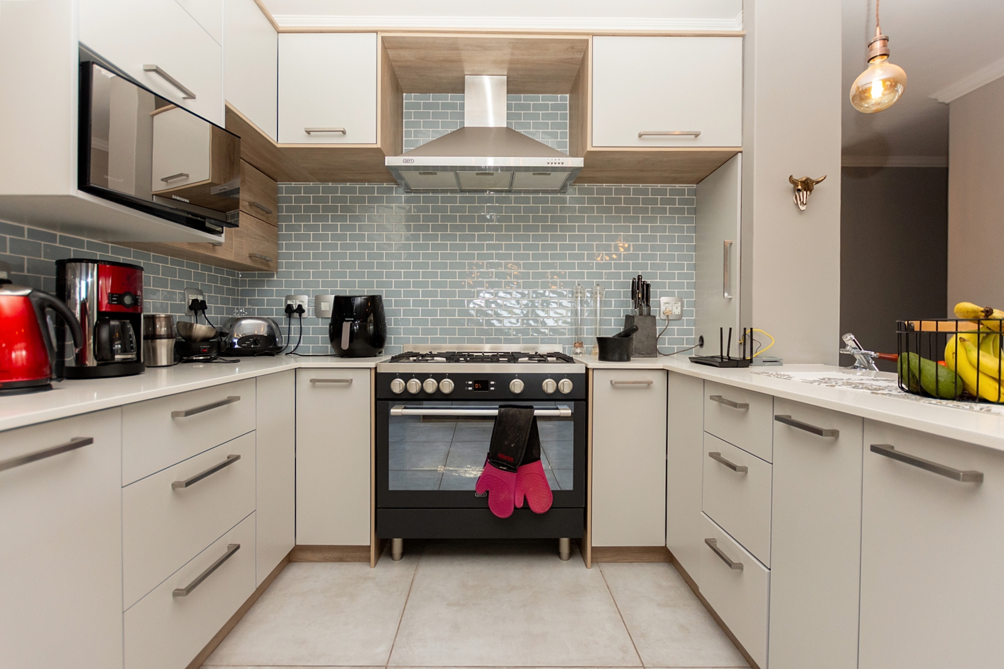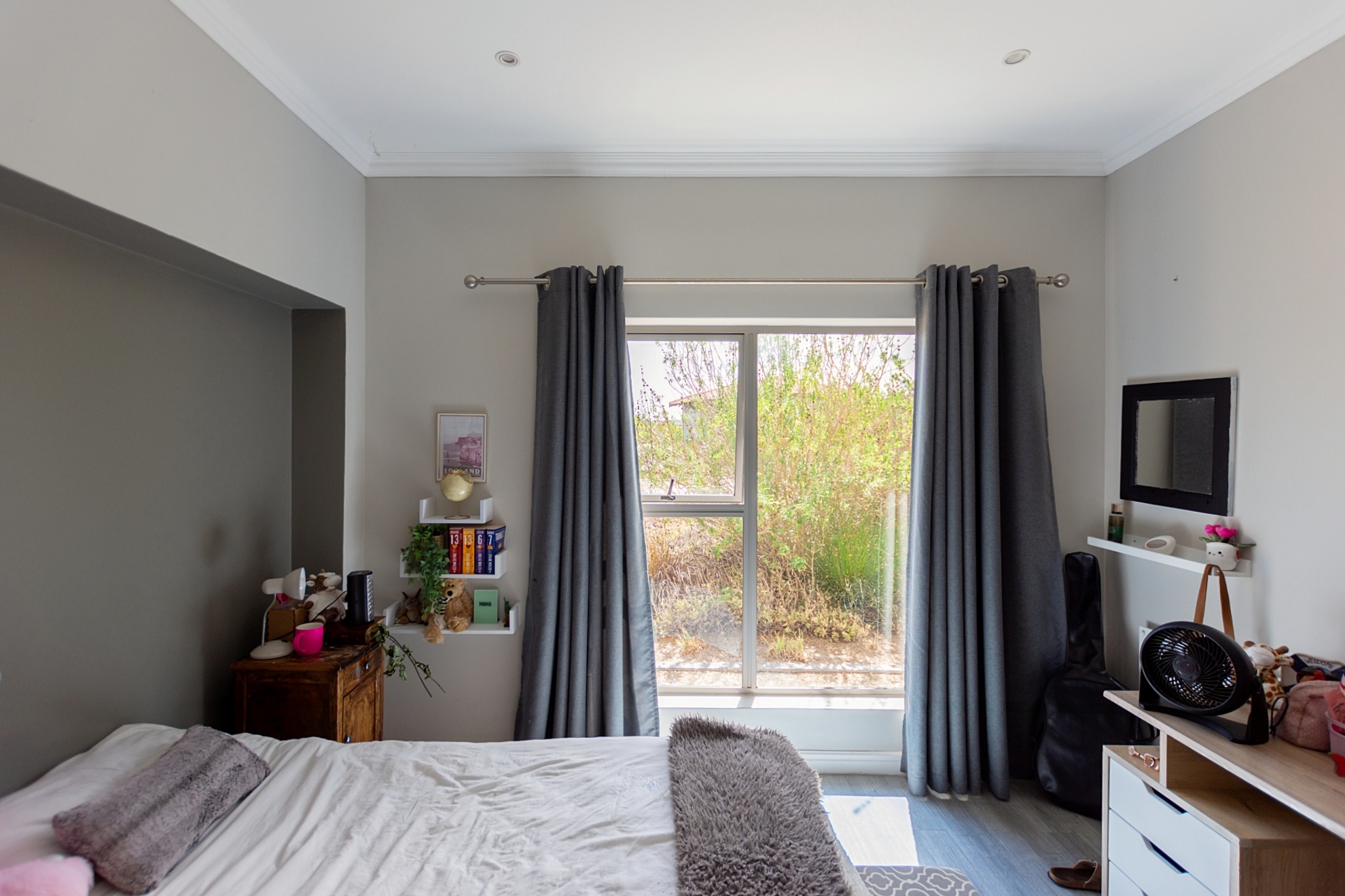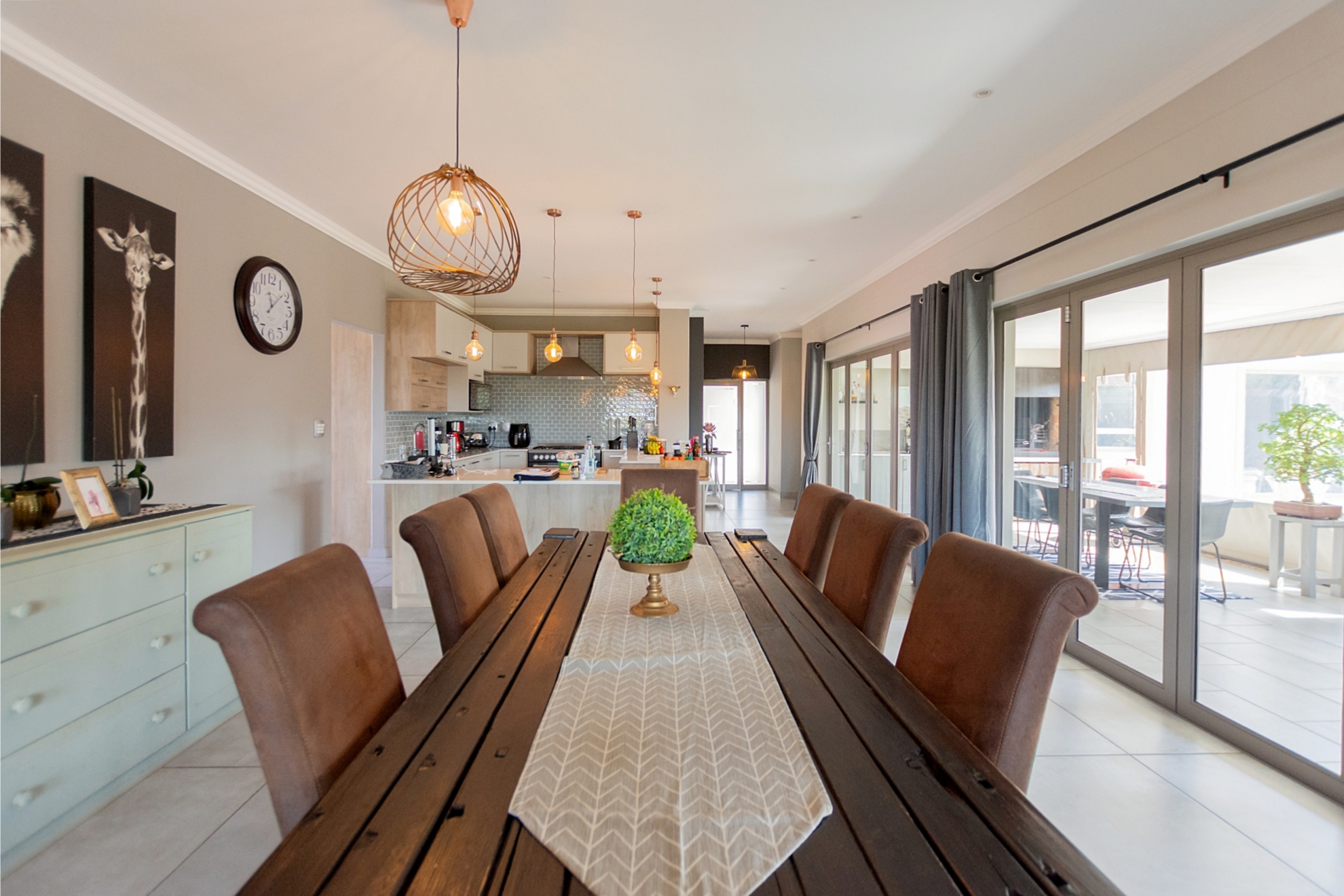 The light-filled open-plan design flows seamlessly from the modern kitchen, fitted with Caesarstone countertops, gas hob, walk-in pantry and separate scullery and laundry, into the dining and lounge areas. A combustion fireplace creates warmth and atmosphere, while large windows frame the natural surroundings. The separate braai room with fold-back doors enhances the indoor-outdoor lifestyle, allowing you to entertain with ease or close off for quieter evenings.