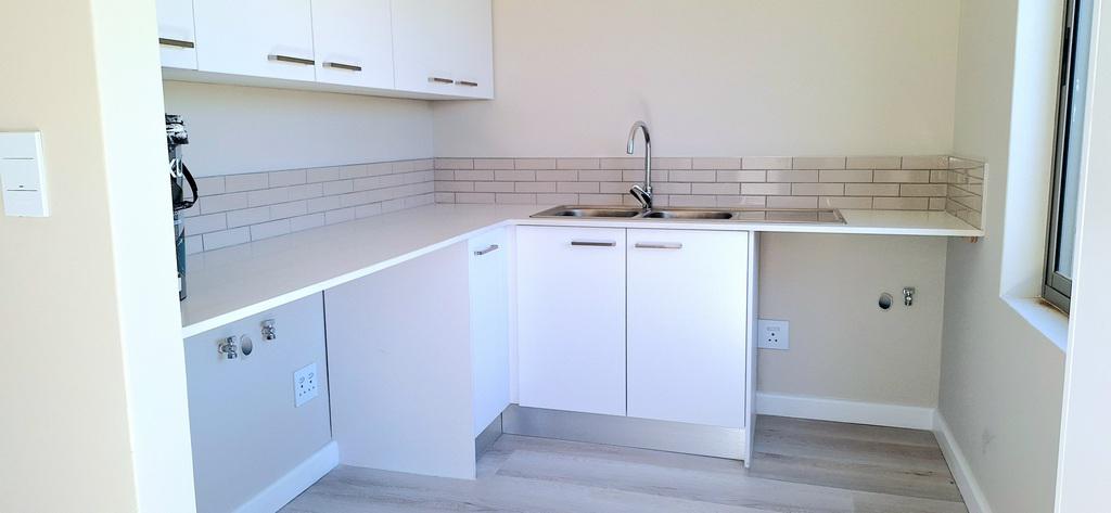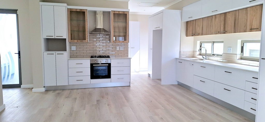 The open-plan kitchen is both stylish and functional, boasting a gas hob, ample cupboard space, and a layout that maximizes the connection to the dining area.
