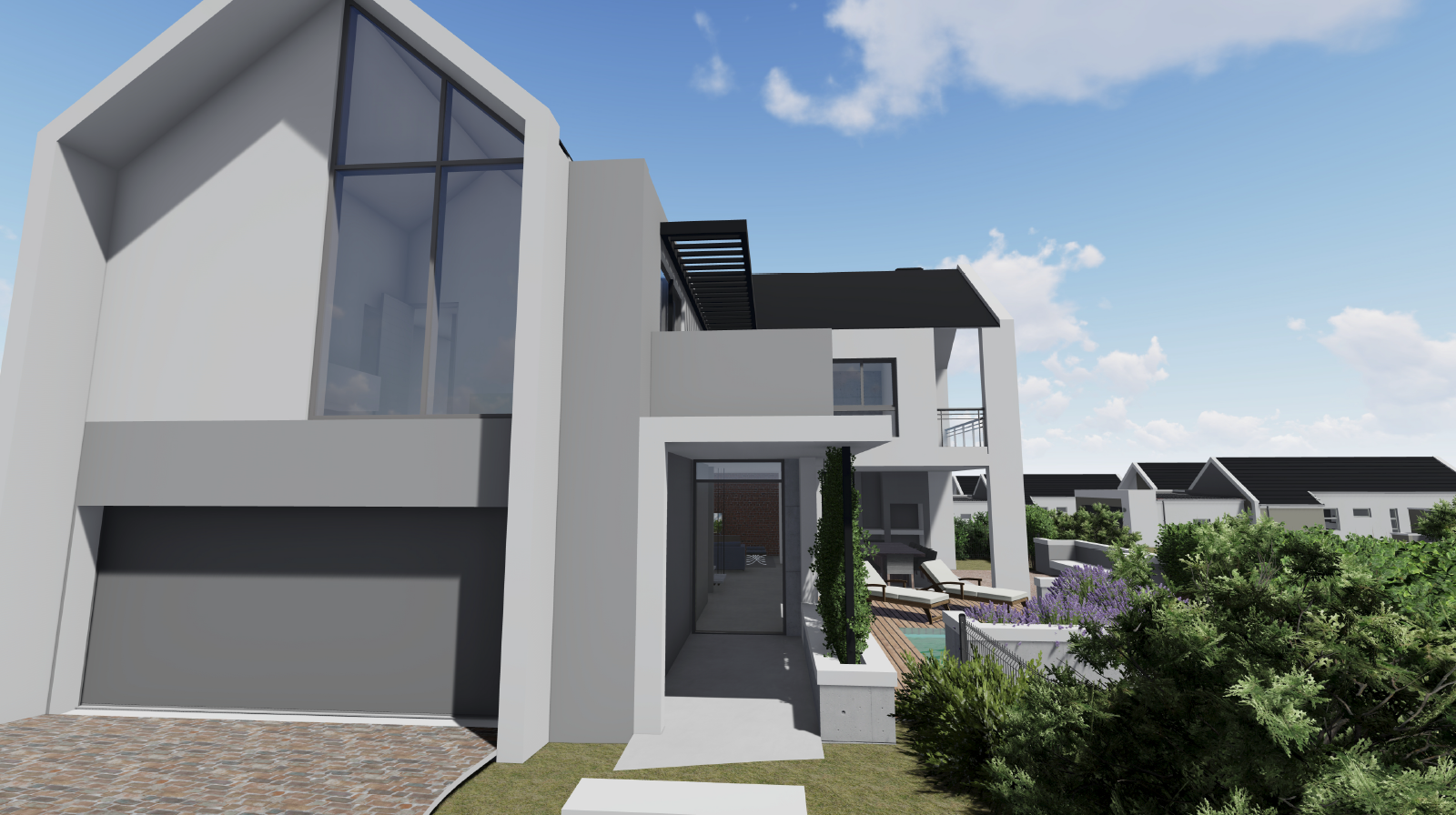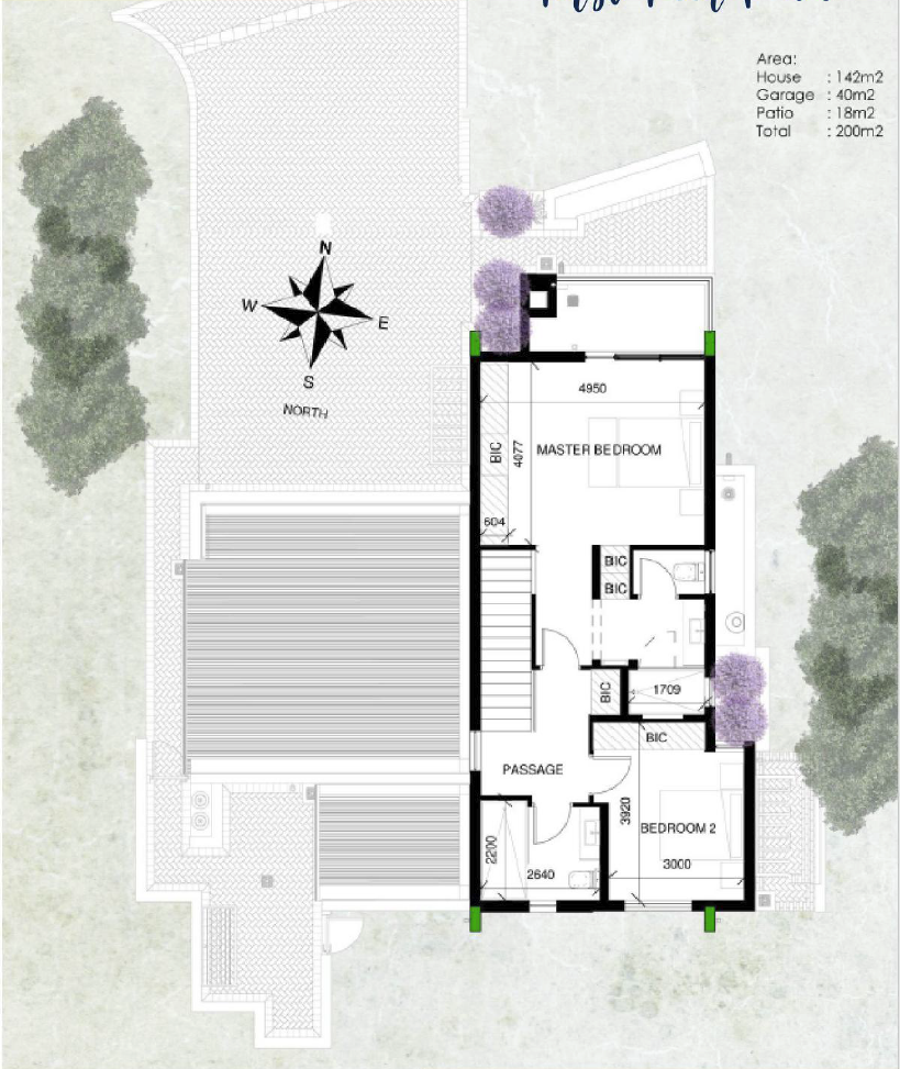 You have a choice of the developer's original plan, which entails the entertainment, kitchen and garages at ground level, and 2 bedrooms with 2 bathrooms on the first floor.