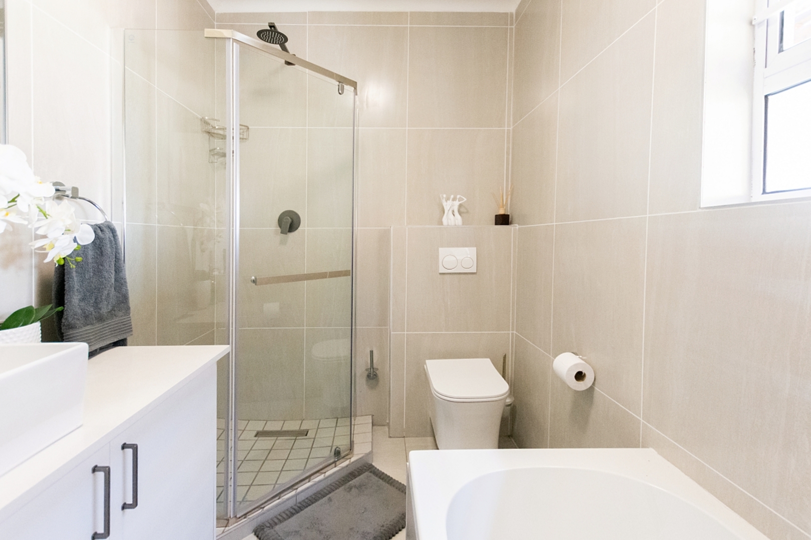 The home features three spacious bedrooms with built-in cupboards, two modern bathrooms including a main en-suite, and a contemporary open-plan kitchen with space for essential appliances. The living and dining area opens onto a sunny patio, extending the home’s social spaces and enhancing the coastal lifestyle. Throughout, the finishes are elegant, durable, and low-maintenance.