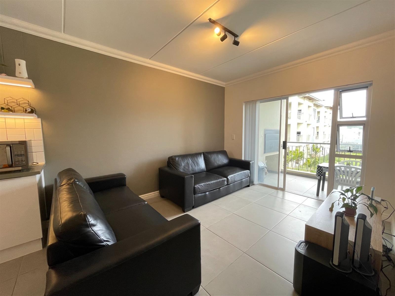 The apartment is fully tiled throughout, providing a clean and low-maintenance living environment. The open-plan kitchen and lounge flow effortlessly onto a private balcony fitted with a built-in braai, the perfect spot for entertaining or unwinding after a long day.