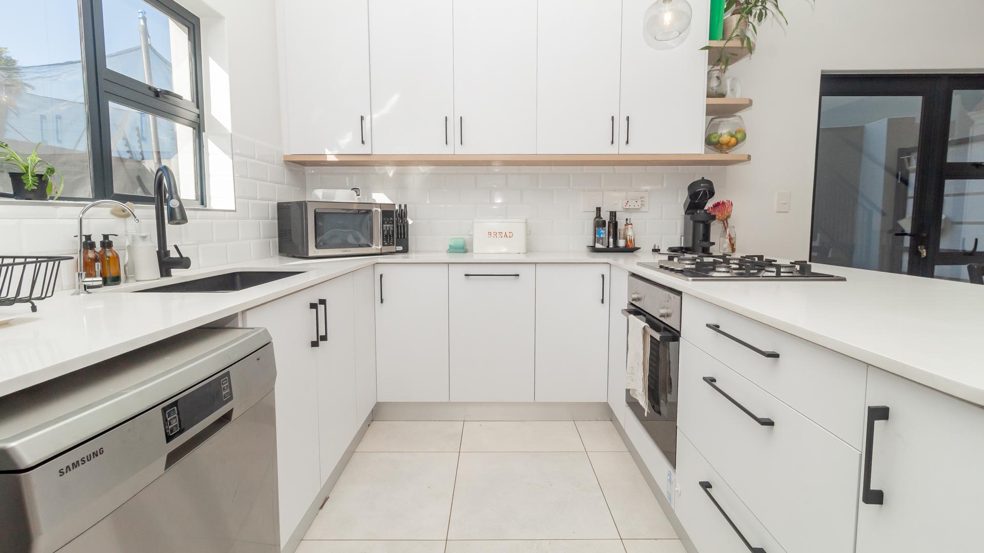 Step through a striking pivot door into a bright, modern living space that immediately feels like home. The open-plan kitchen is finished with sleek, contemporary fittings and flows seamlessly into a generous living area. Stacker doors open up to a spacious patio with a built-in braai—ideal for effortless entertaining and relaxed family living.