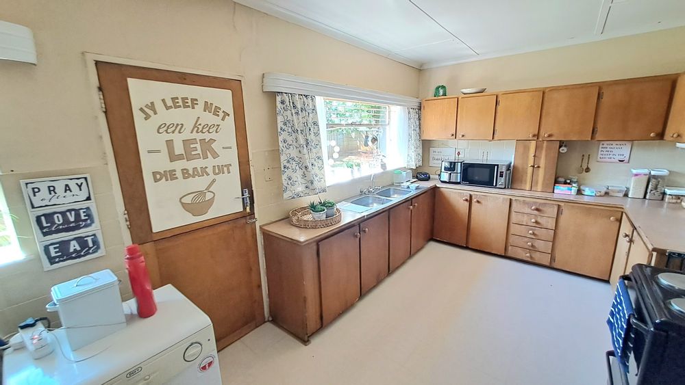 - Dining room that leads to a small verandah with a sliding door and burglar proofing. It further leads to the lovely swimming pool, entertainment area with built-in braai and waterwise garden.The ideal place to relax, have a braai or simply create memories with your loved ones.