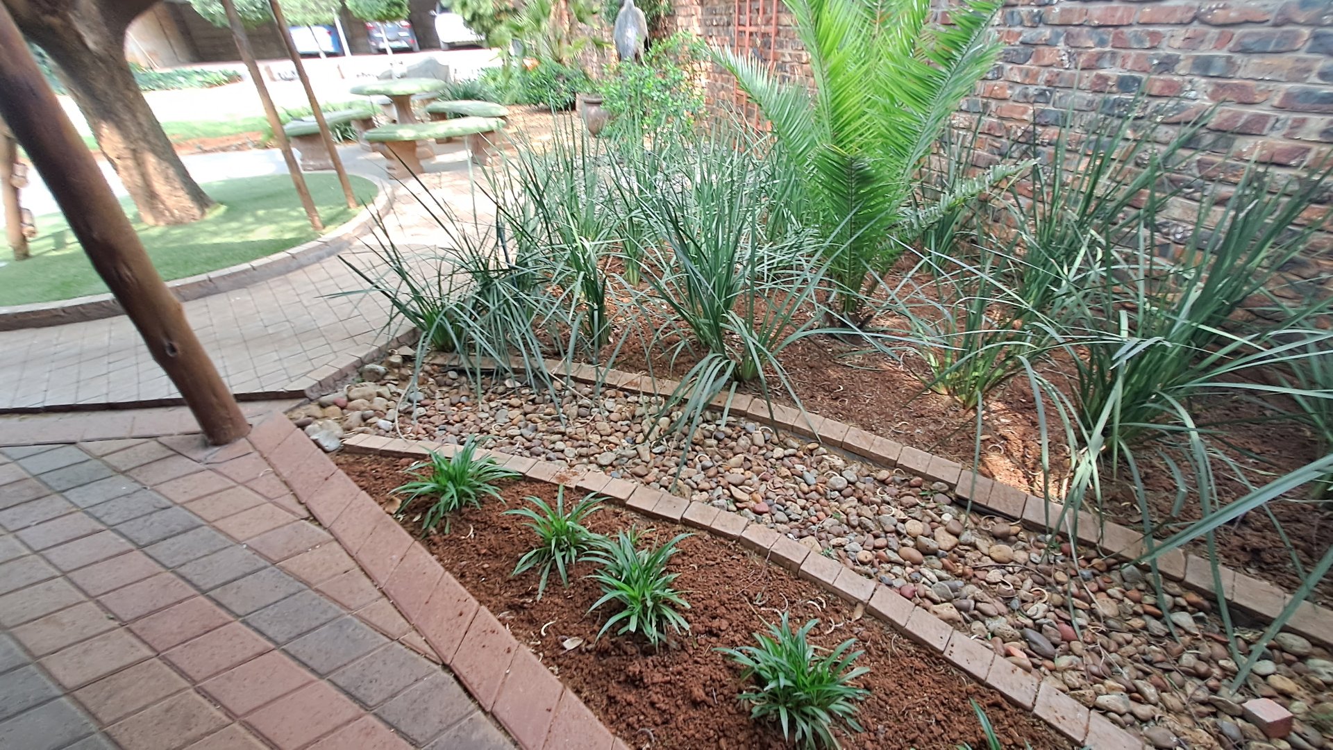 - Lushious, green, easily maintainable, waterwise garden with sprinkler system, paved drive-way.