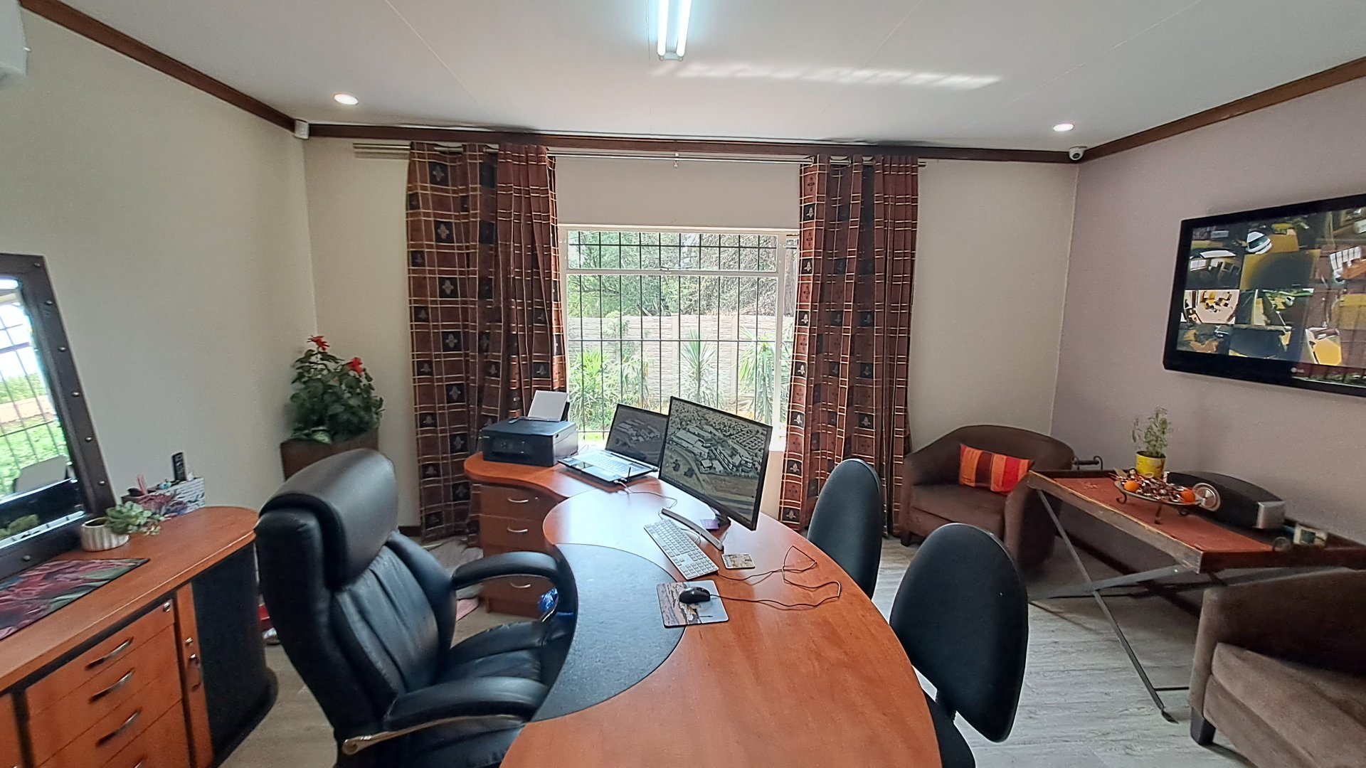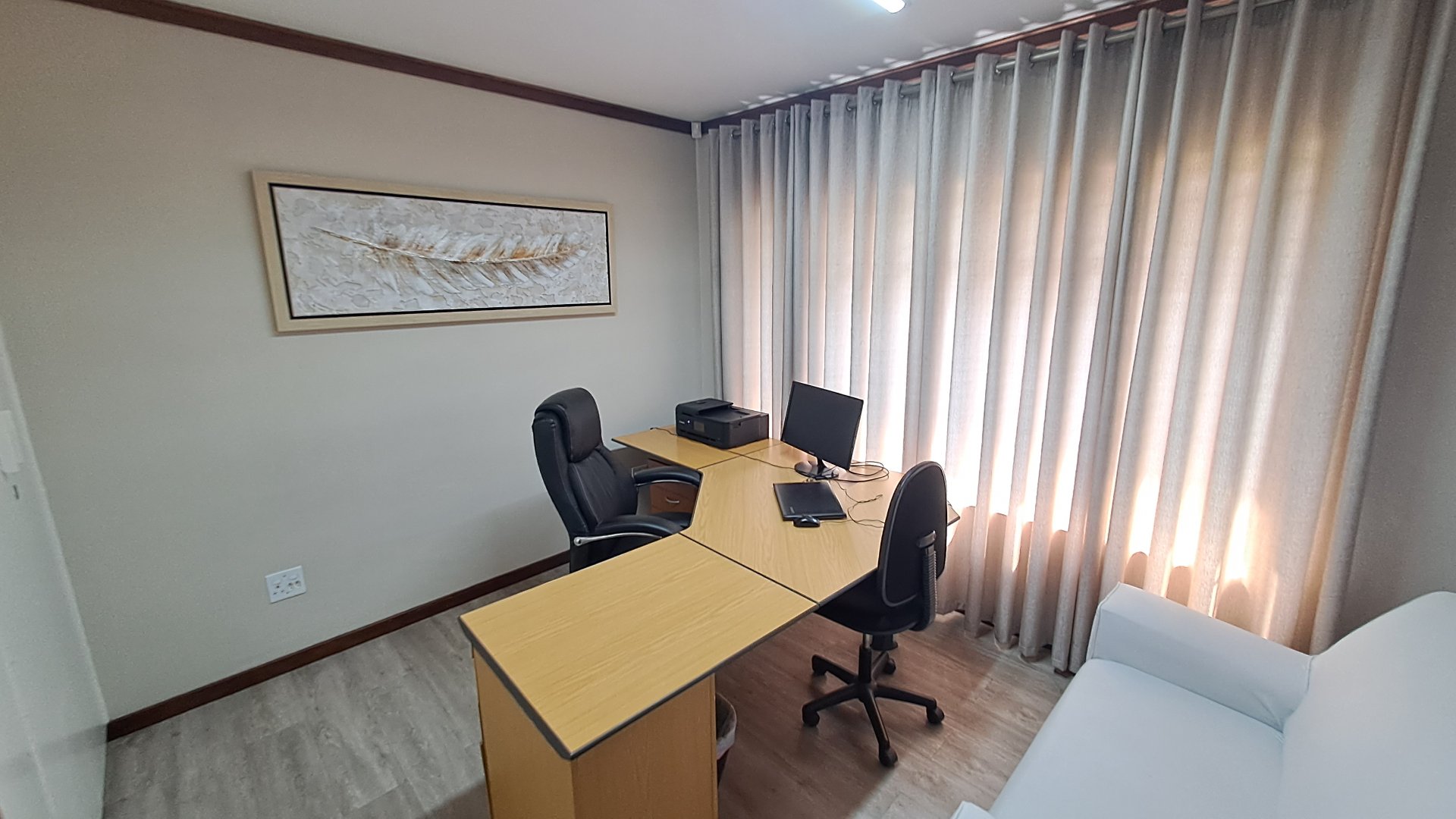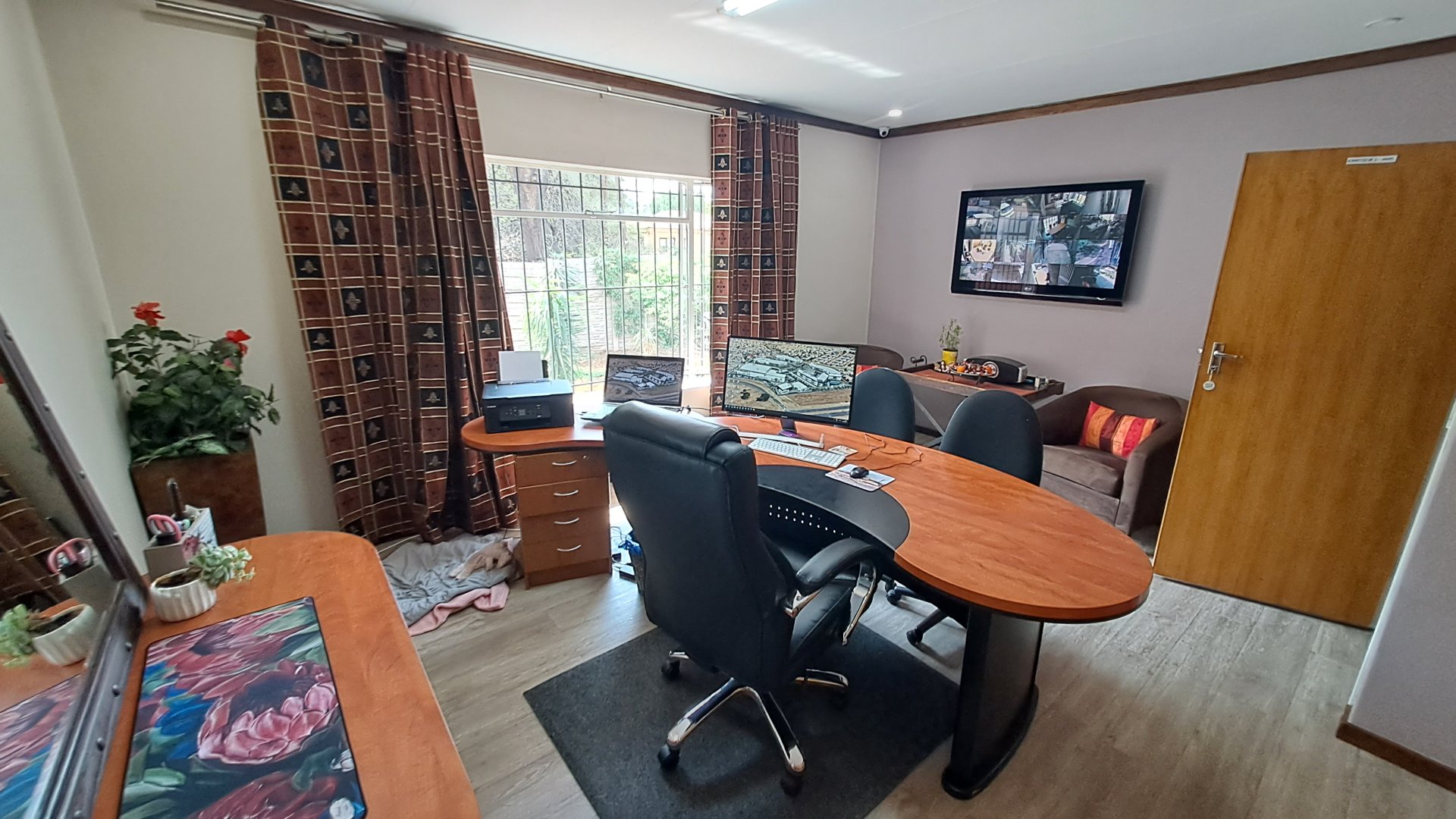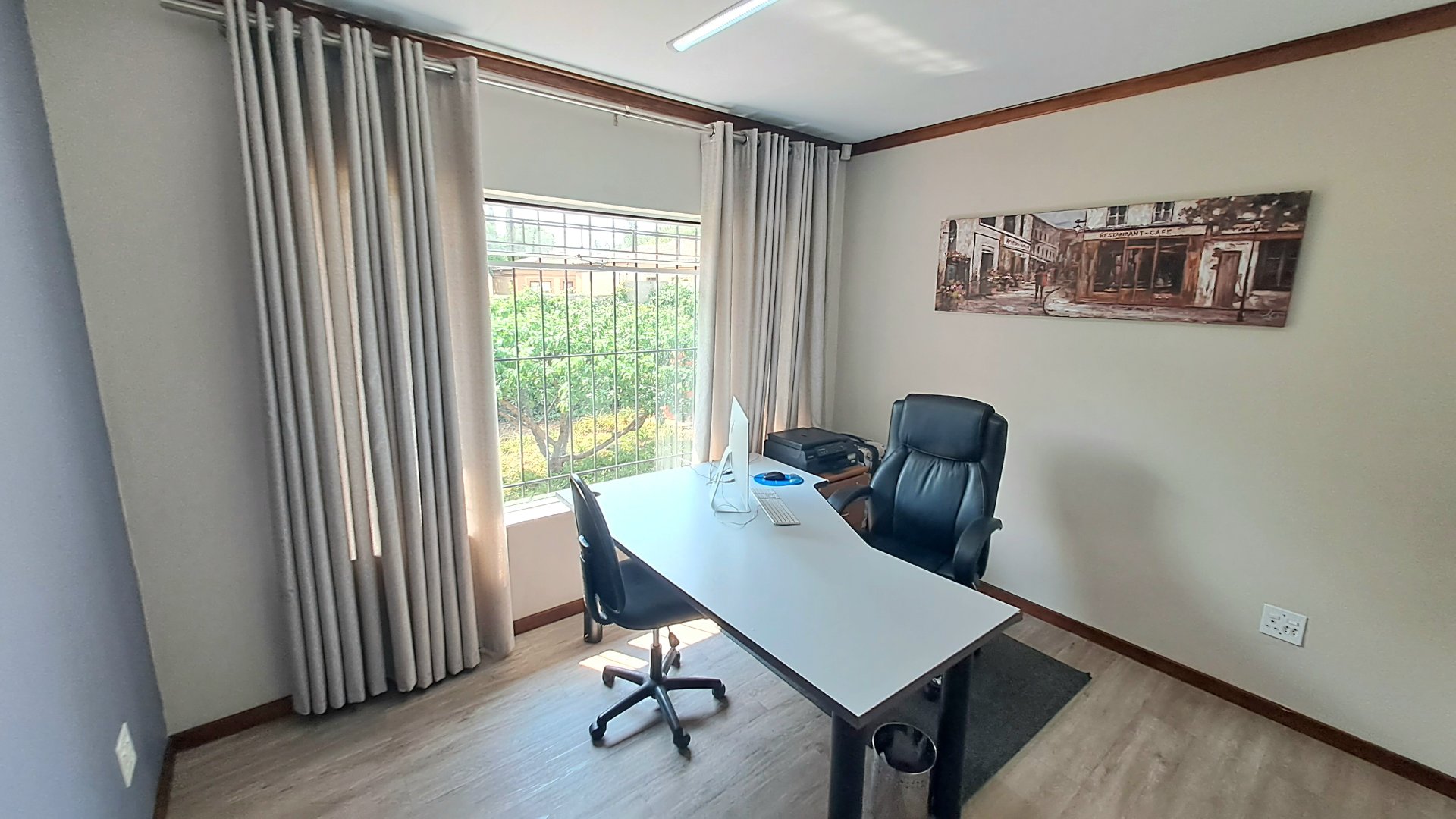 From the moment you enter through the electric security gate, you feel peace and right at home. This beautiful, modern and spacious home, currently being utilized by the owner as office space, grabs your attention with its endless possibilities! Whether as office, guesthouse or family home, it will be a great investment!