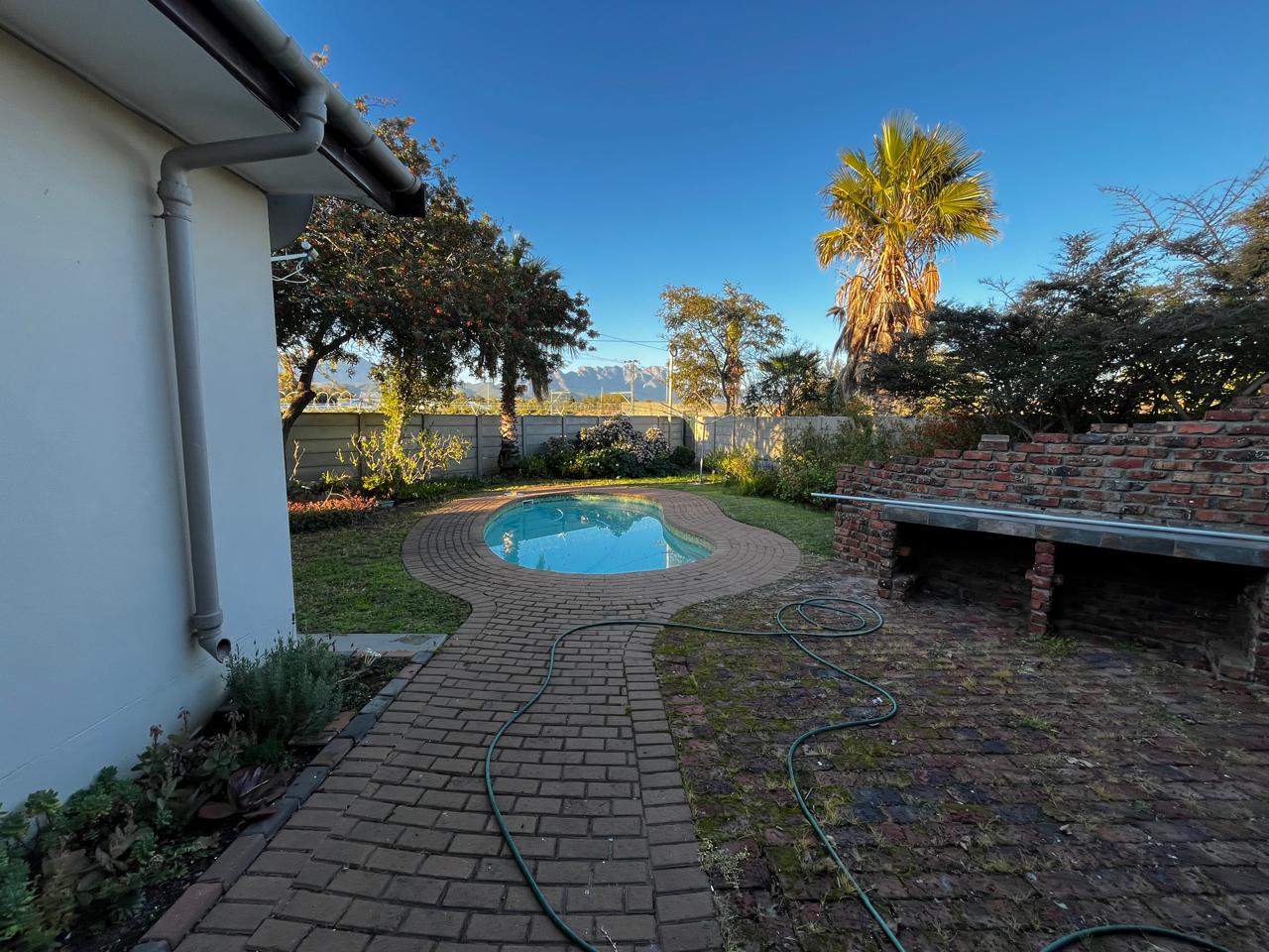 Charming 3-bedroom family home located in Langerug, conveniently situated near schools and the town center. This inviting residence features three bedrooms, all equipped with built-in cupboards, including a main bedroom with an en-suite bathroom. The spacious layout boasts a large TV and dining room, an office space, and a kitchen adorned with ample cupboard space. Additionally, there is an entertainment room with a separate toilet that opens up to an outdoor braai area and a refreshing pool. The property also includes a single garage and a generous garden, perfect for family activities and relaxation.