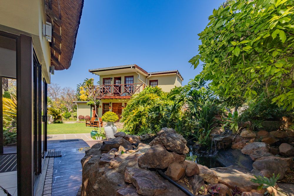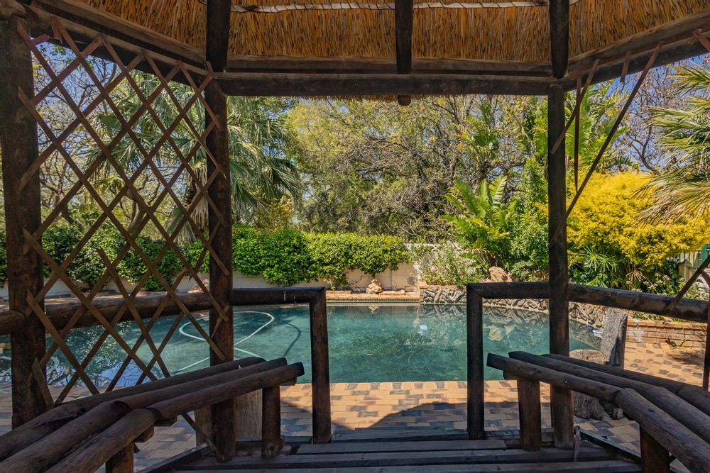 The heart of the home is a well-equipped kitchen with a separate scullery, flowing effortlessly into open-plan living and dining areas. An indoor braai room adds a welcoming touch for year-round entertaining.
