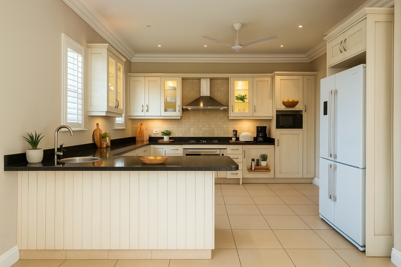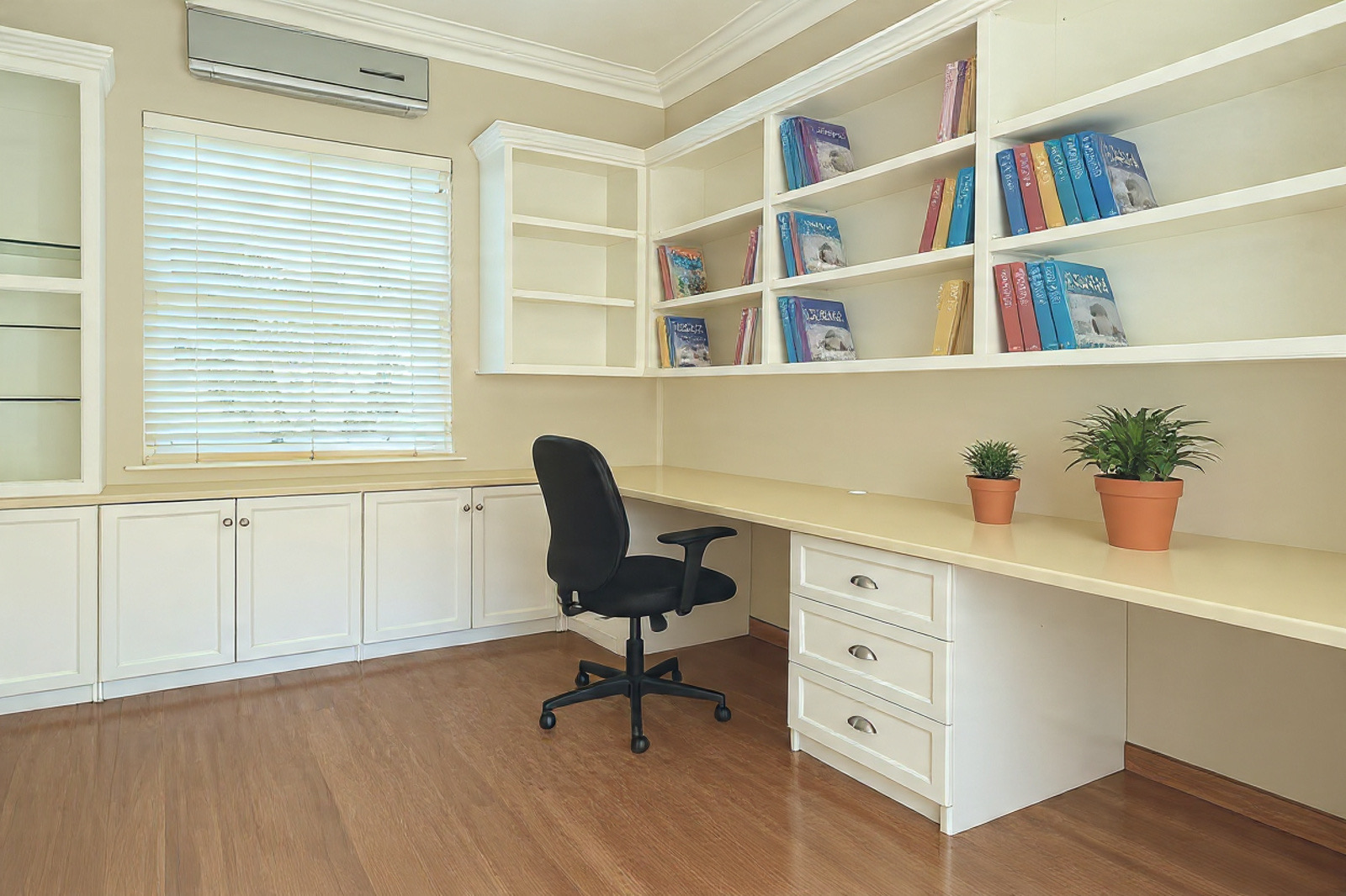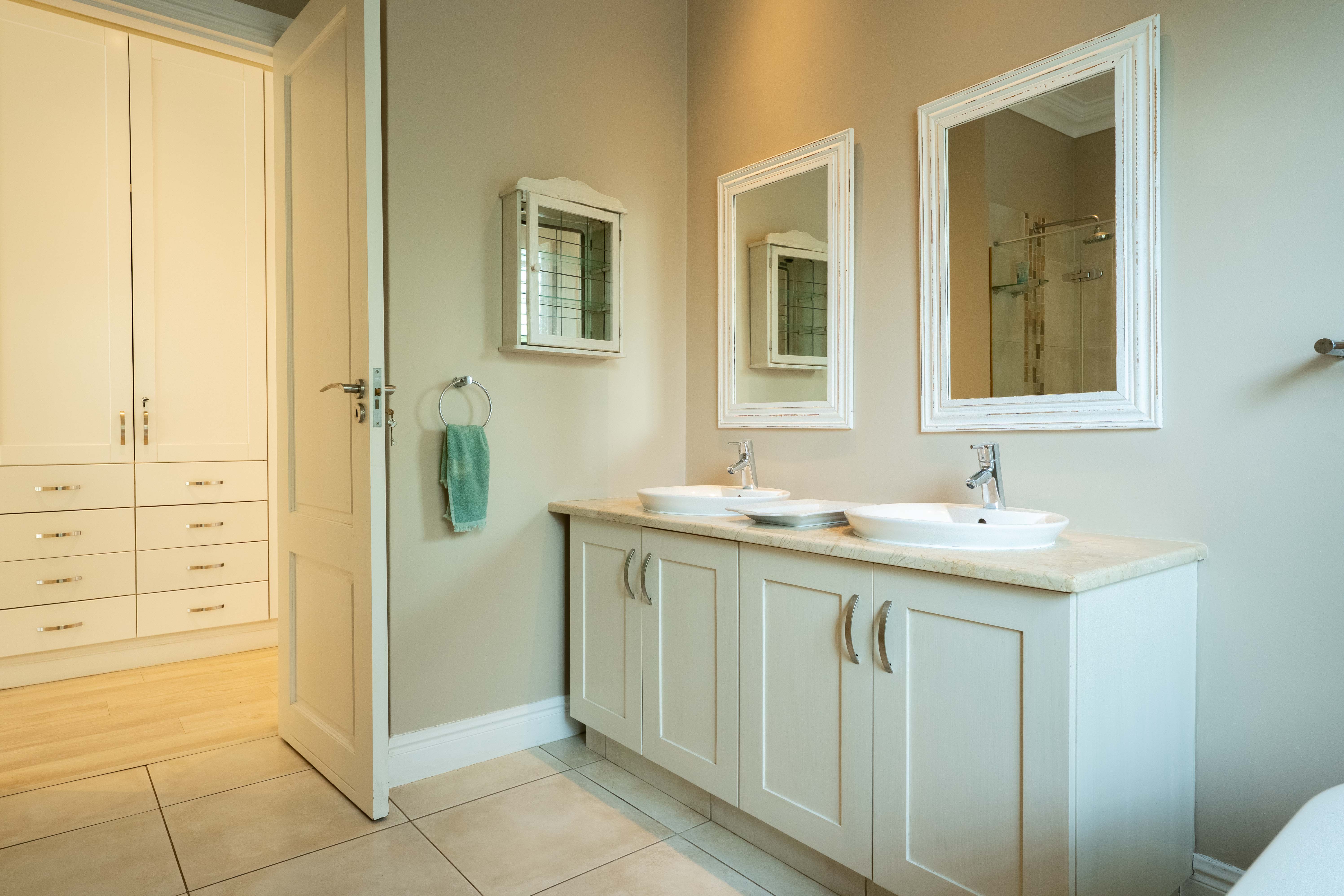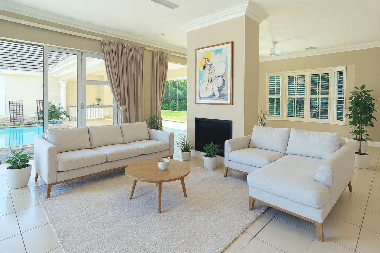 This home has a full sized office that can easily accommodate 2 work stations and comes fully fitted. There are 3 bedrooms with the main offering a full en suite and a ton of cupboards and the second bedroom with its own shower en suite. The family bathroom is full and services the third bedroom. This home also offers direct access double garage, multiple water storage tanks, solar and Invertor system. The home also has staff ablusions. Come and view this immaculate home asap! Furnishings are AI generated.