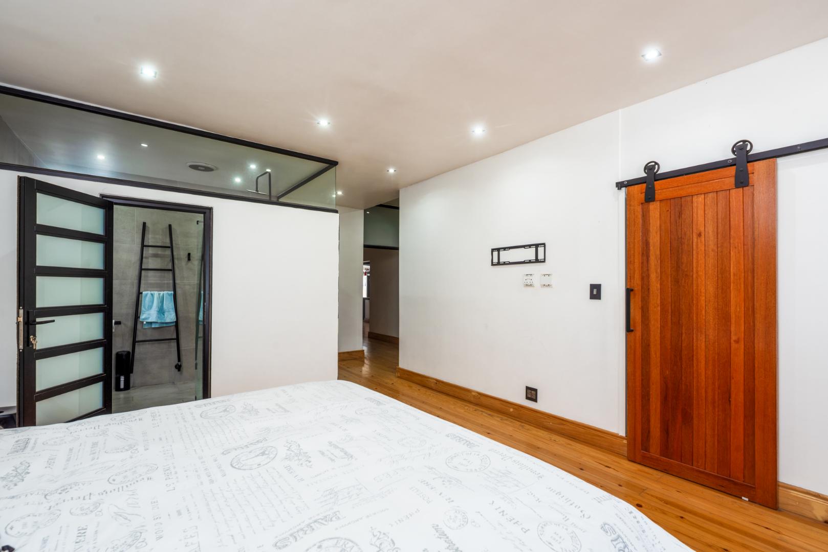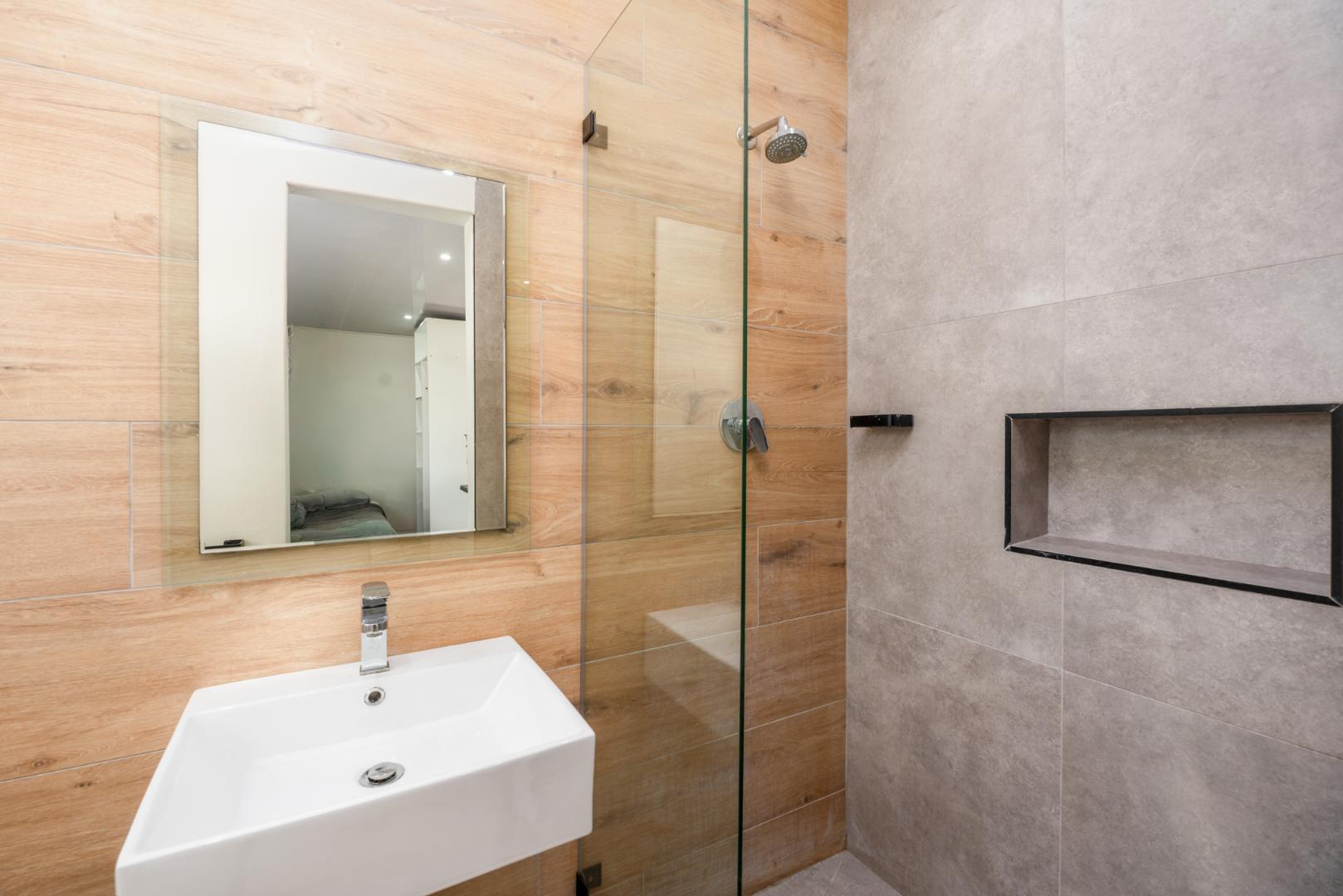 The inviting living spaces include a spacious lounge and dining area with warm hardwood floors that flow seamlessly into a modern kitchen designed to inspire your culinary creativity. The kitchen offers ample cupboard space, a fitted hob, under-counter oven, and extractor fan—making meal preparation a breeze.