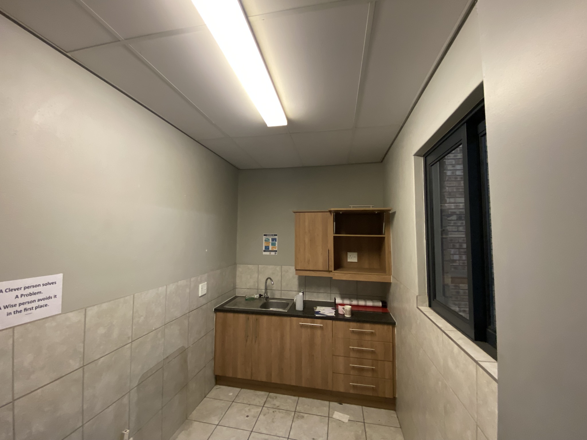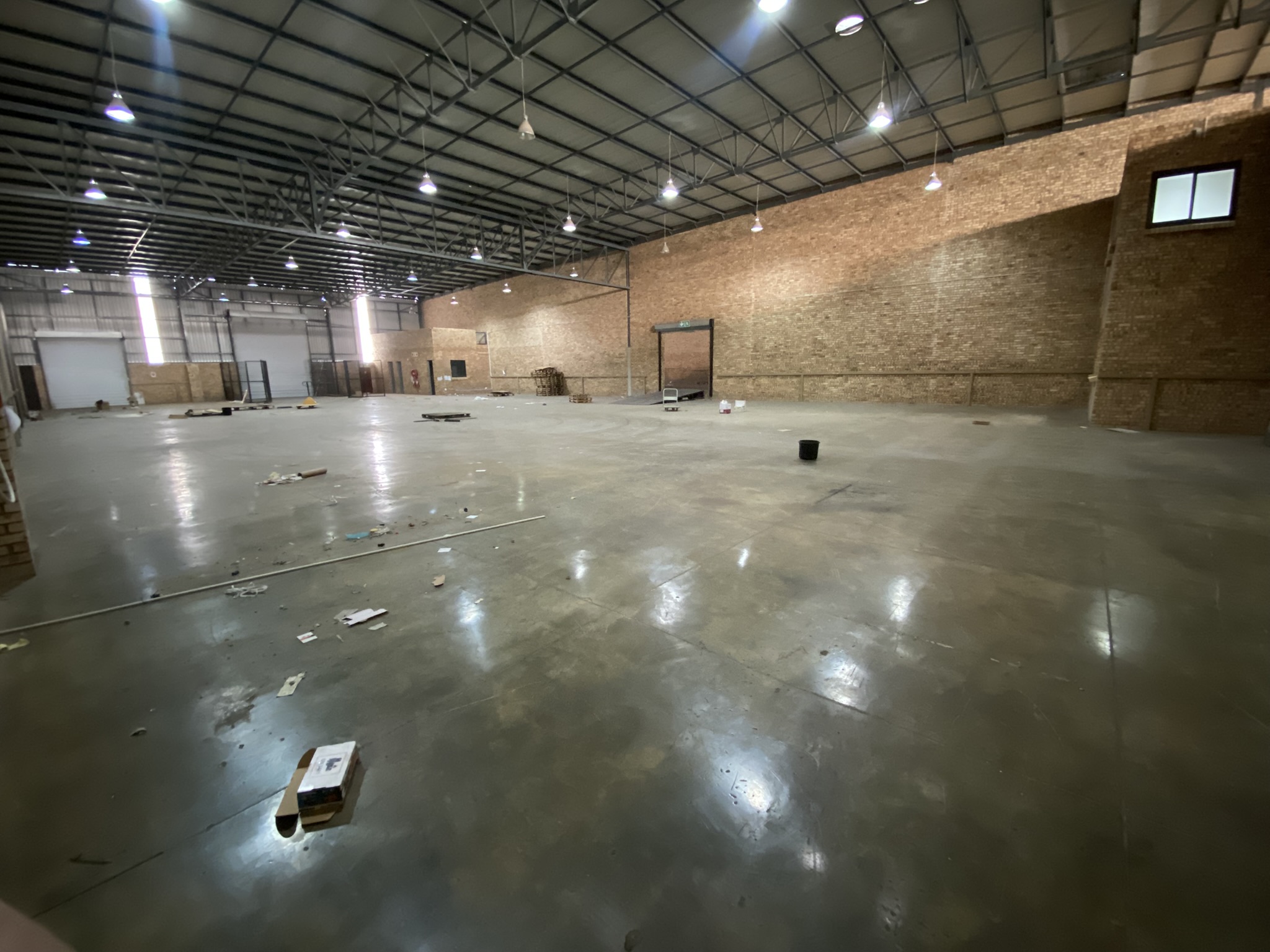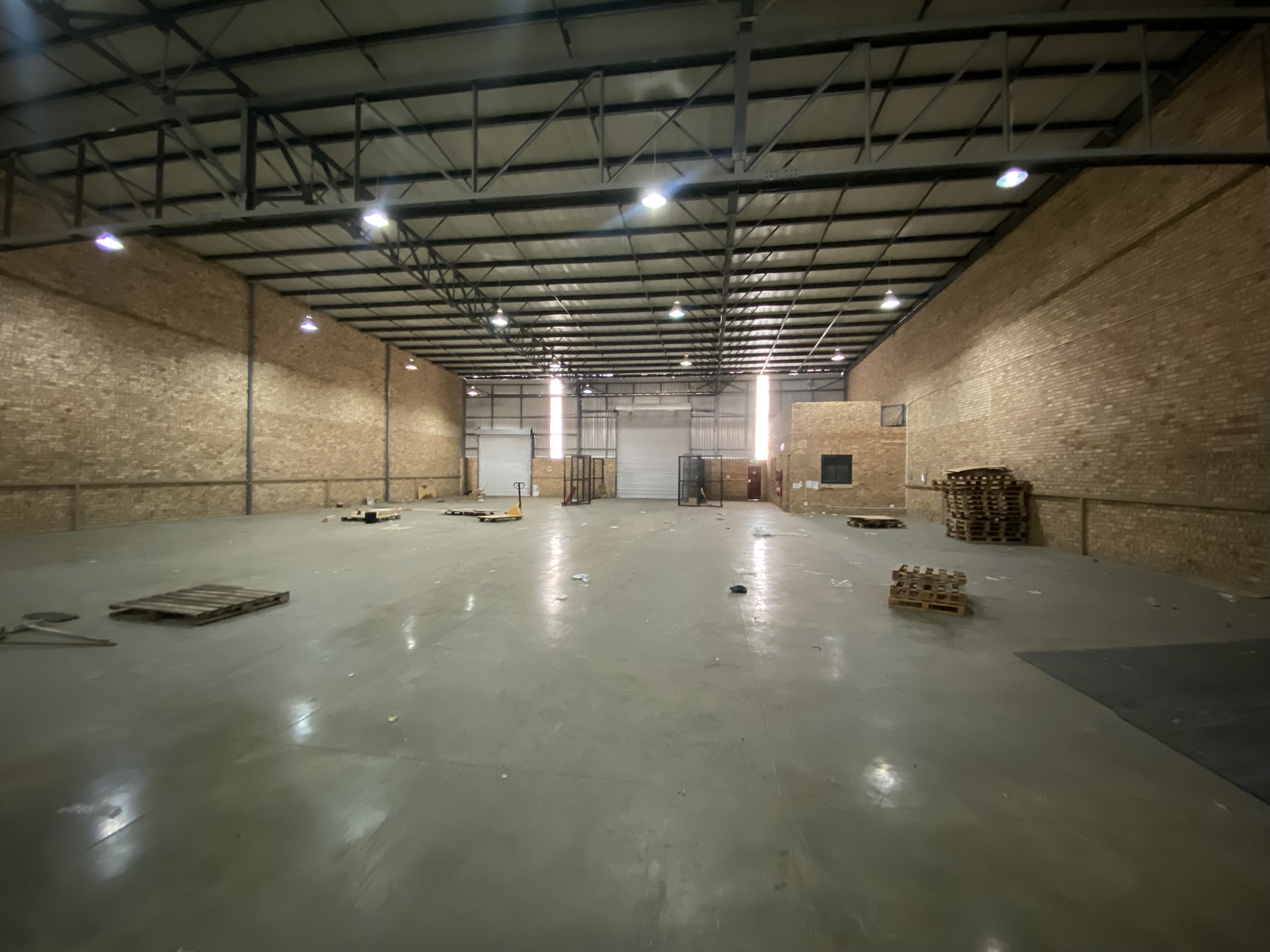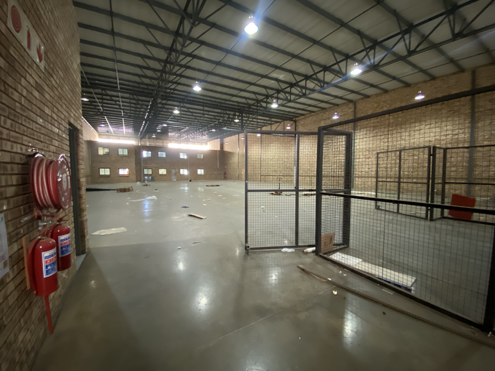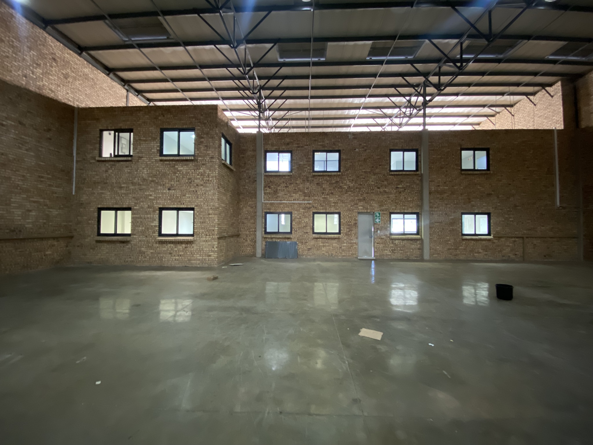This 1,535m2 A-grade facility is immediately available to let. The 426m2 office component is split between the ground and first floors. The ground floor includes a reception area, two large open-plan areas, ladies’ and gents’ bathrooms, and a kitchenette. The first floor features a boardroom, four offices with windows overlooking the warehouse, an open-plan kitchenette, and additional ladies’ and gents’ bathrooms.