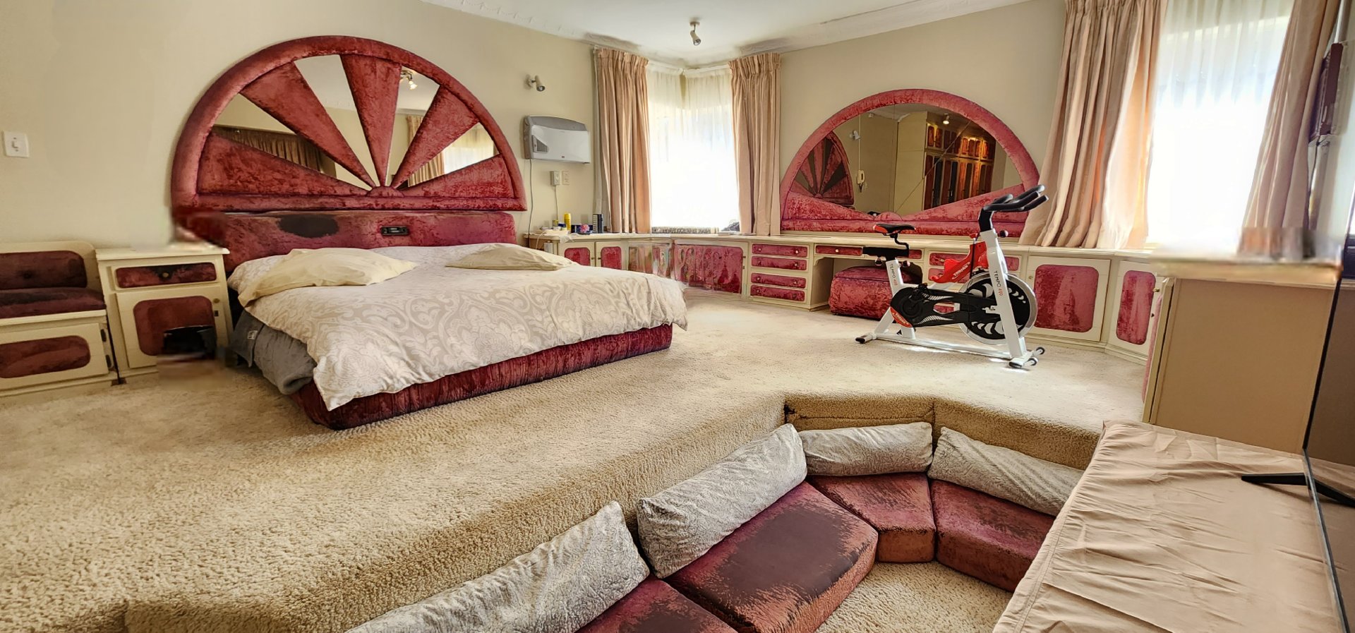 The dining hall flows comfortably from the lounge. The left wing of the property offers the main bedroom, which is super spacious and comes with its own sunken lounge area.