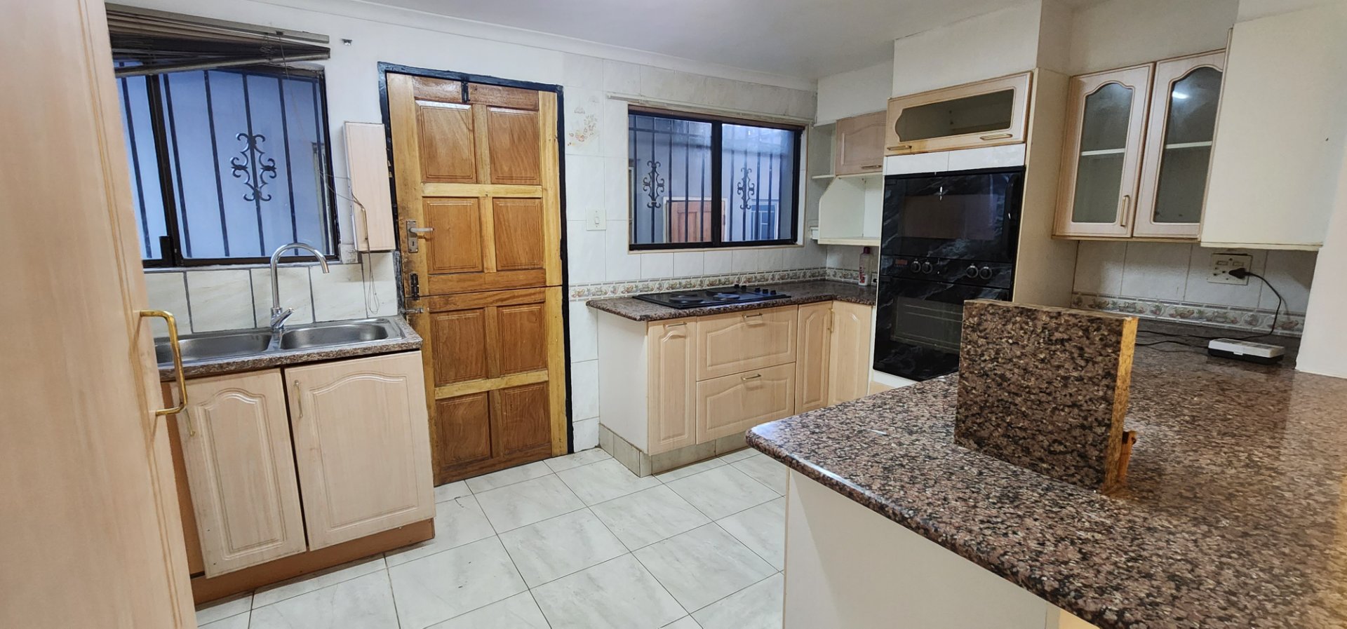 The home offers three sunlit bedrooms, each with built-in cupboards for ample storage. The main bedroom includes a private en-suite bathroom, while a neat family bathroom serves the rest of the household.