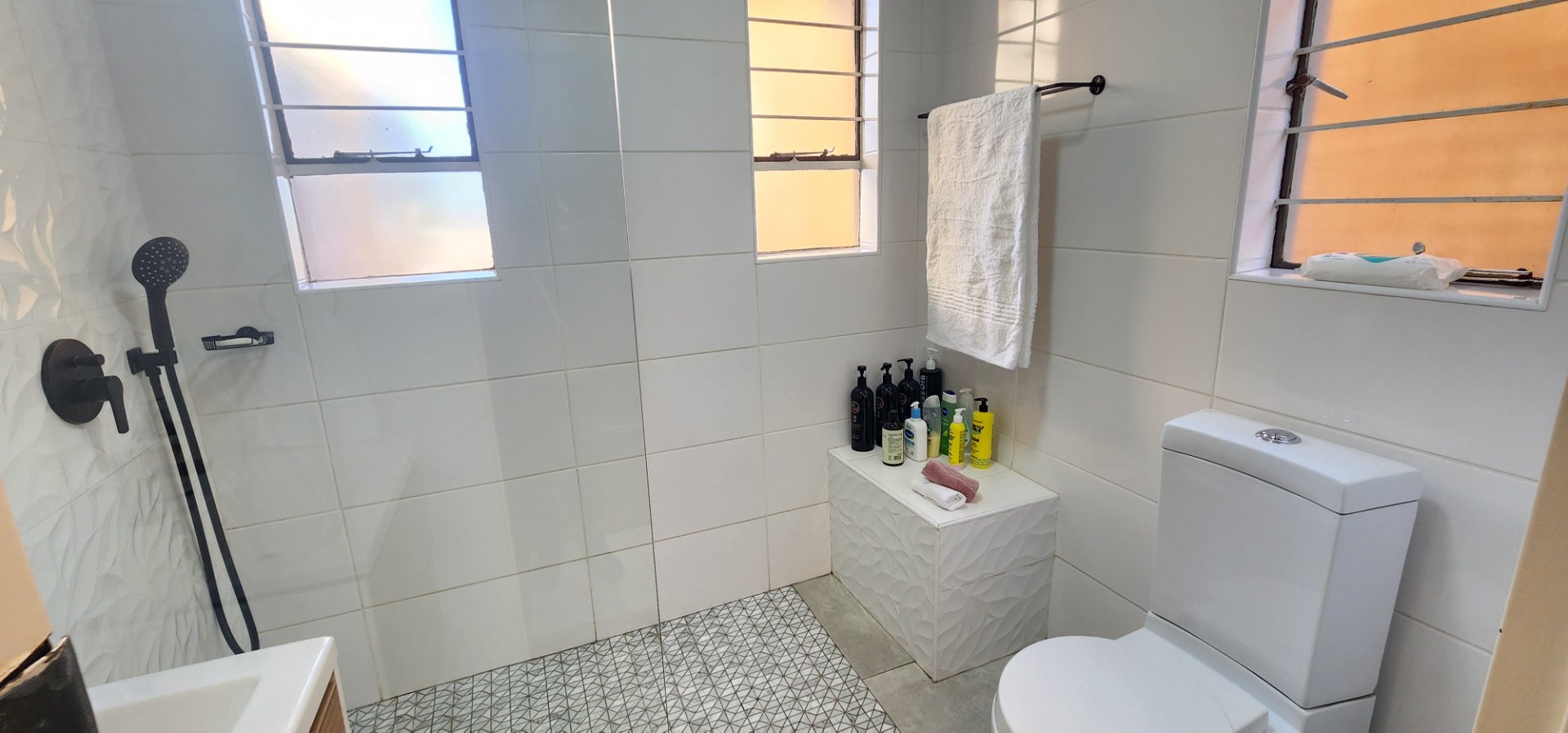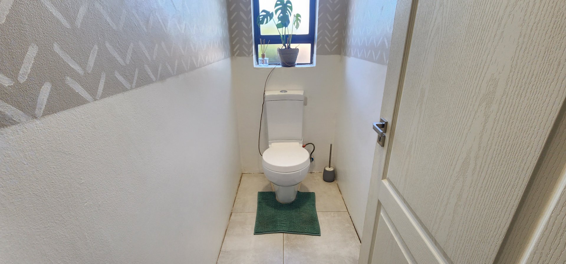 2 Full Bathrooms and guest toilet with a linen cupboard.