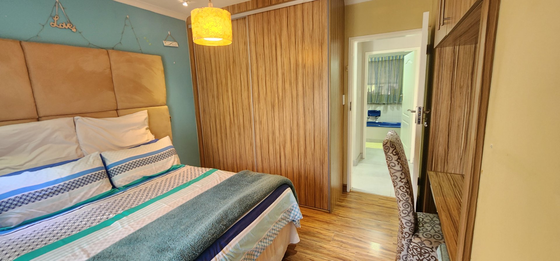 4 comfortable bedrooms with laminated flooring and built-in cupboards. Main bedroom includes a luxurious ensuite and walk-in closet.