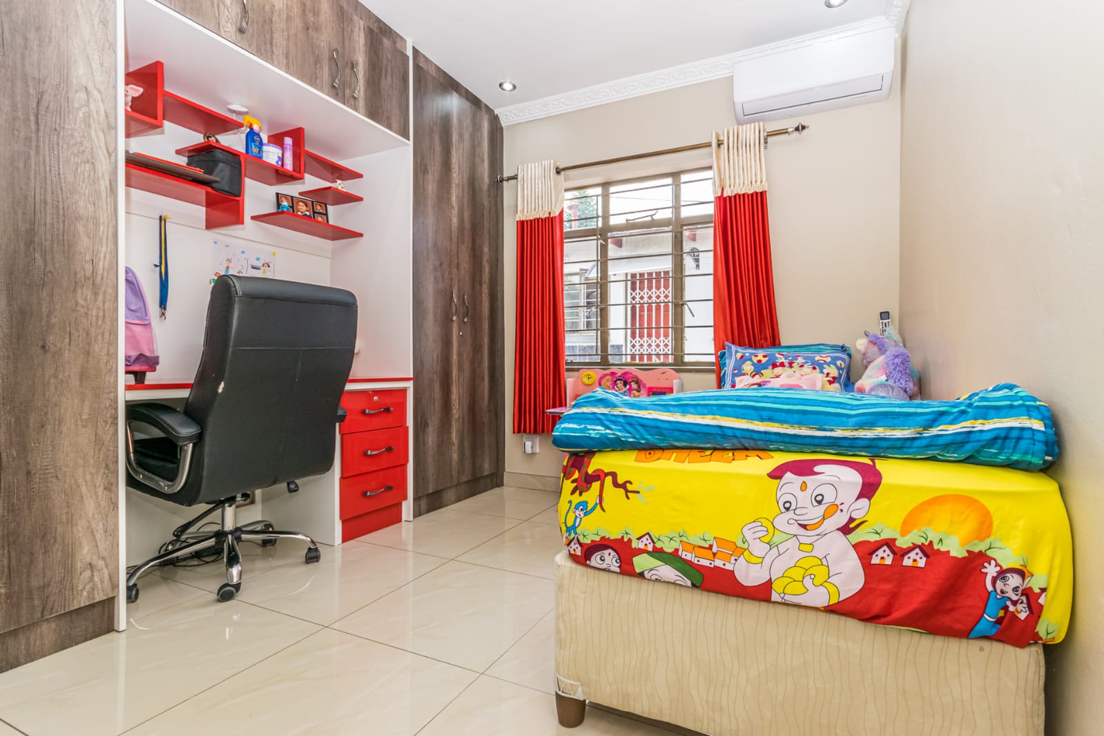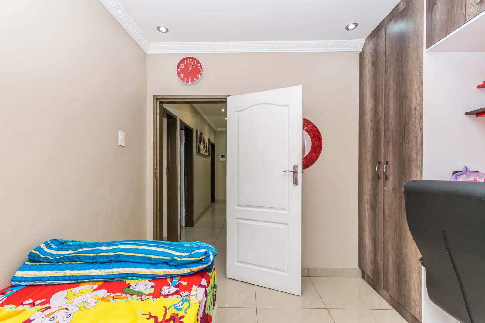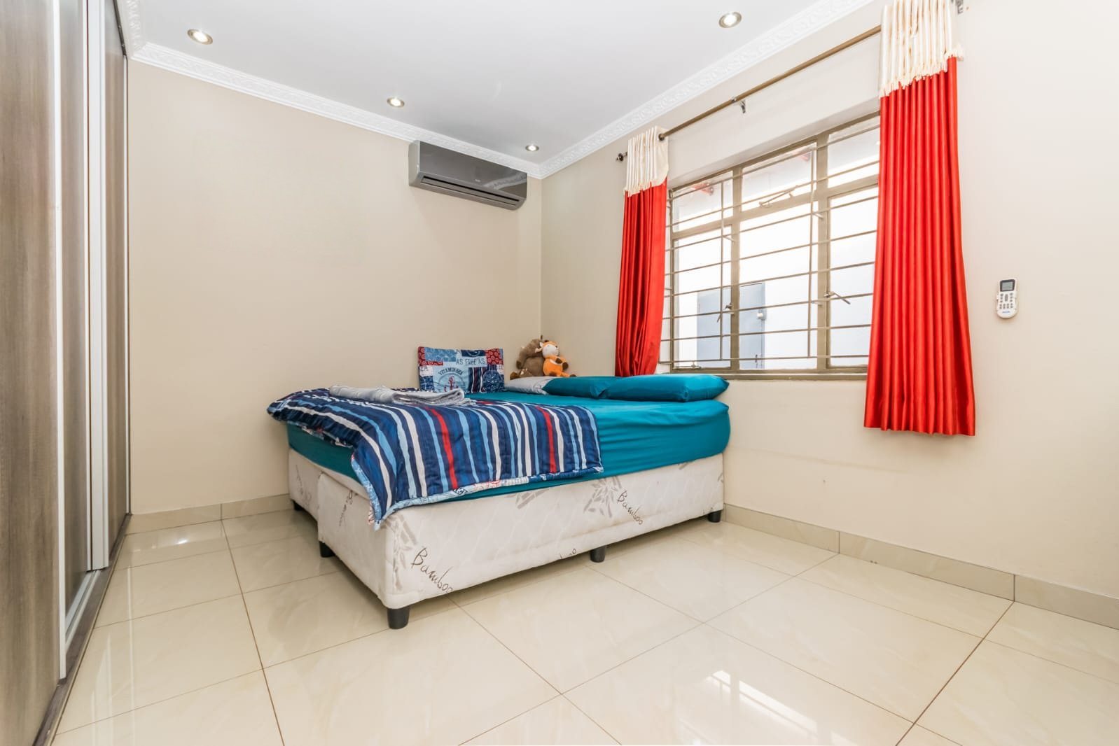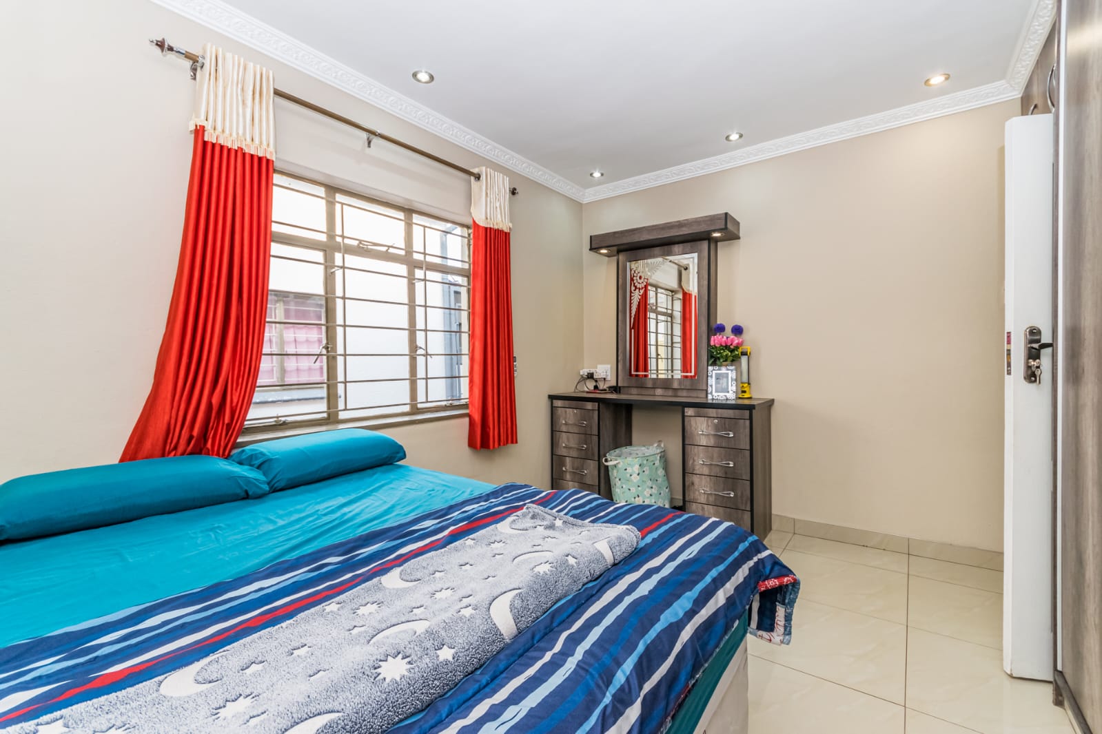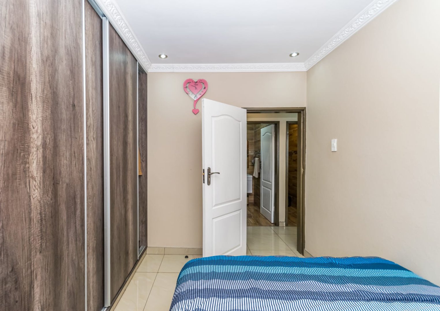 3 Spacious bedrooms fully tiled, each with built-in cupboards providing ample storage.