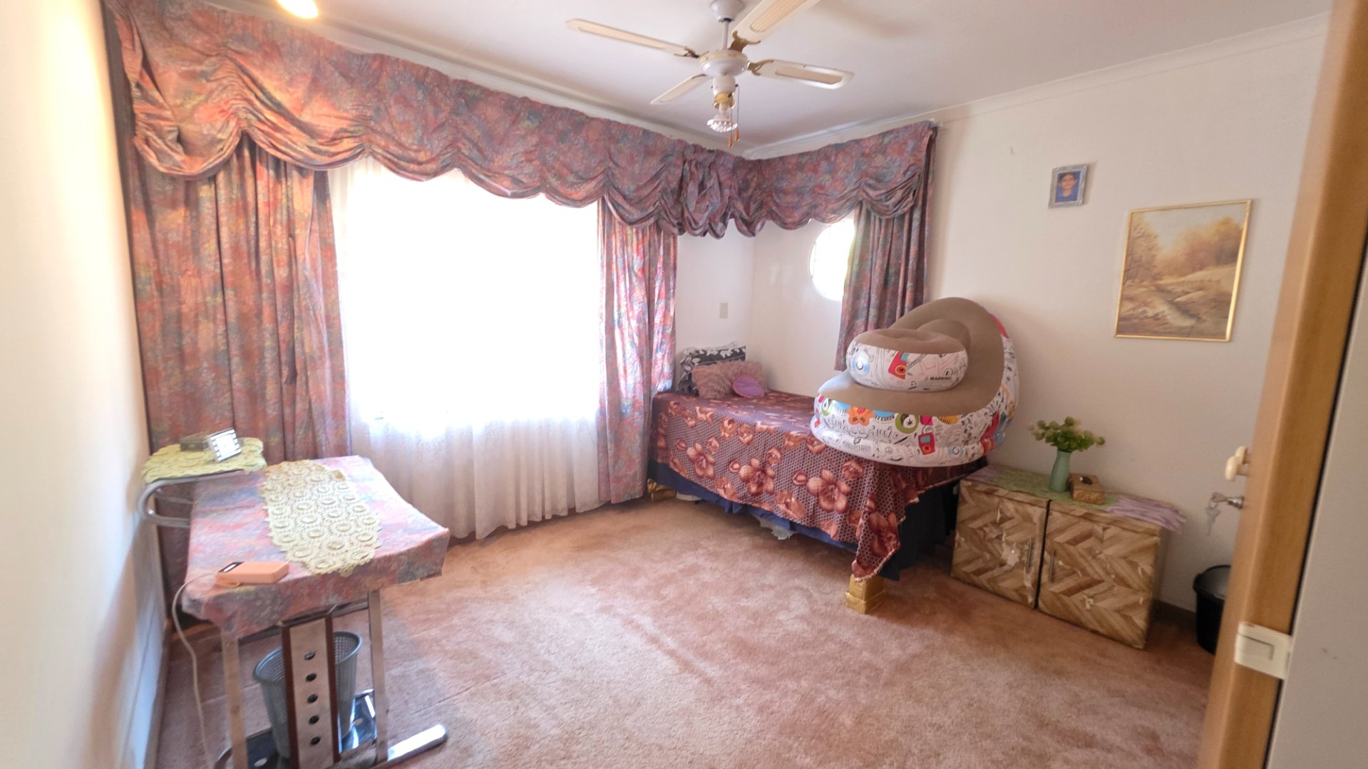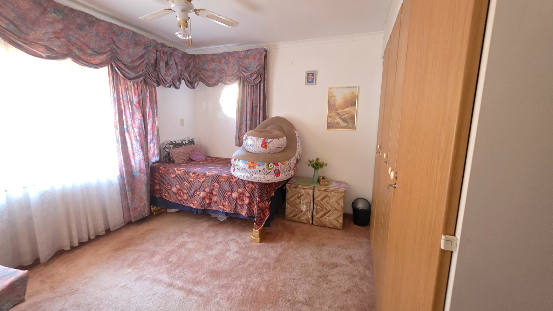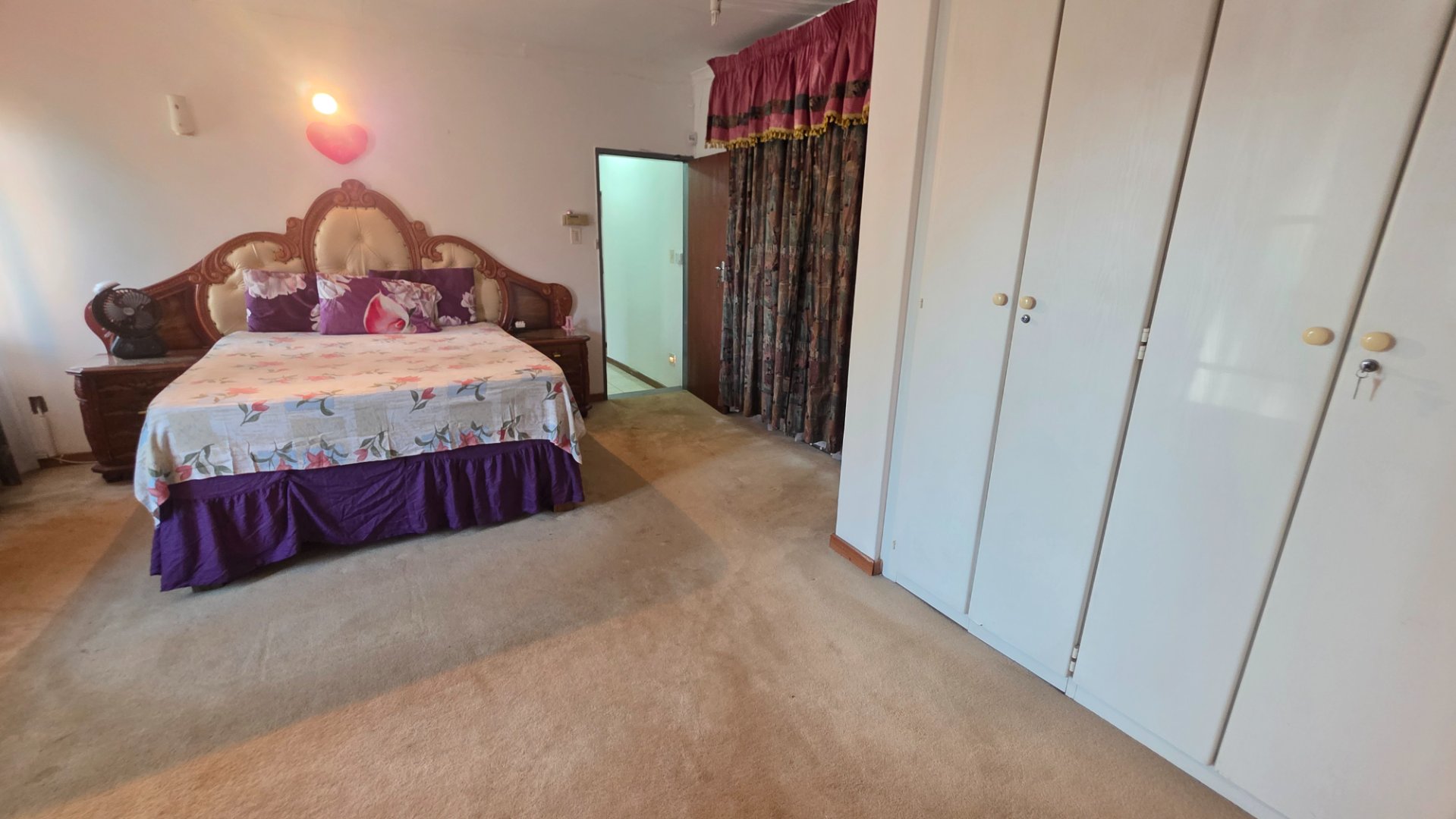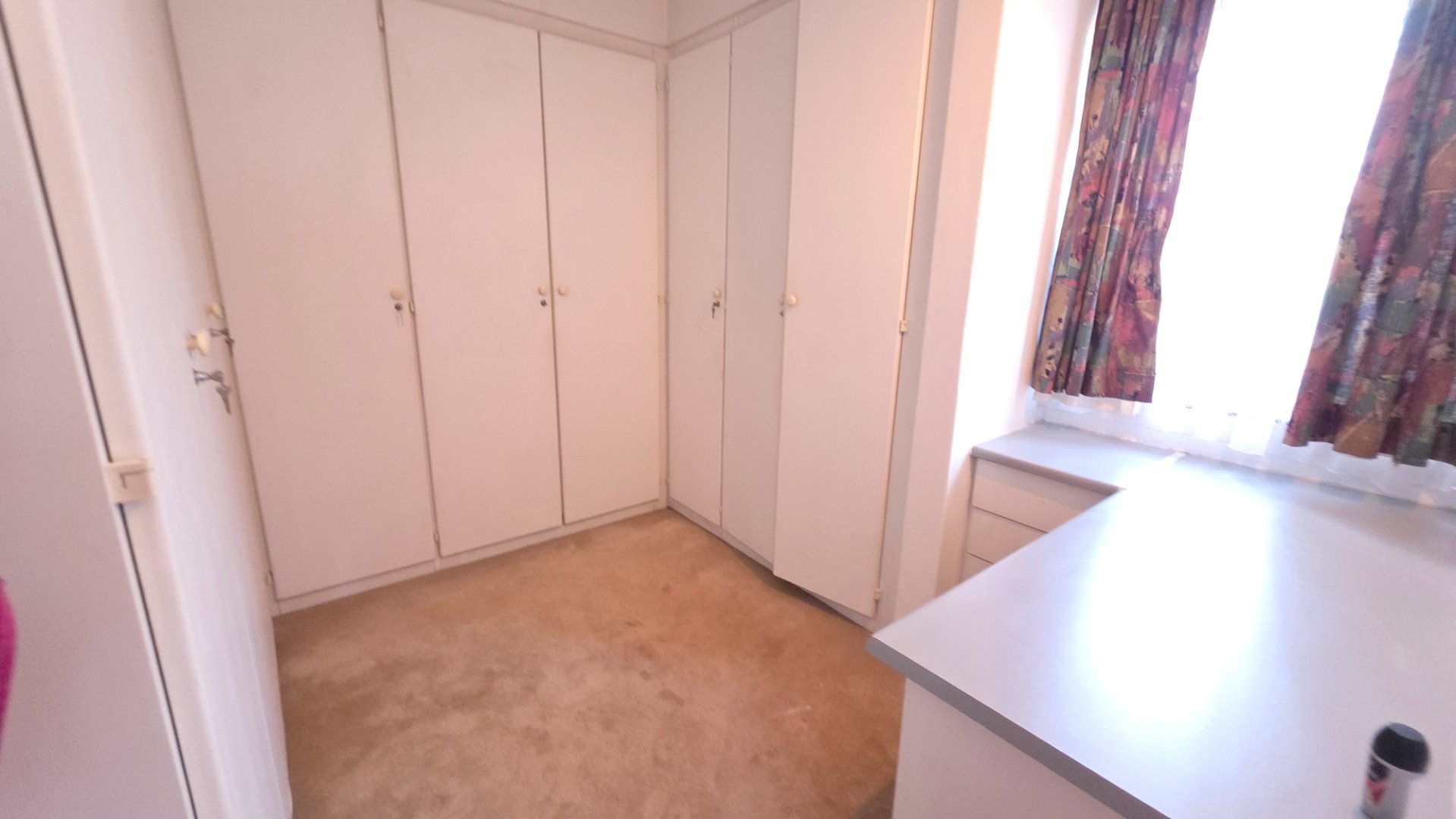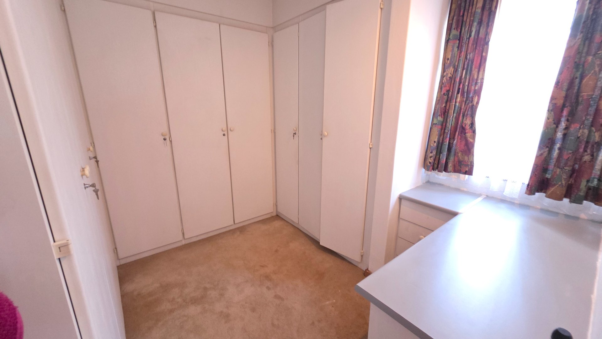 3 bedrooms, all carpeted with built-in cupboards and ceiling fans.