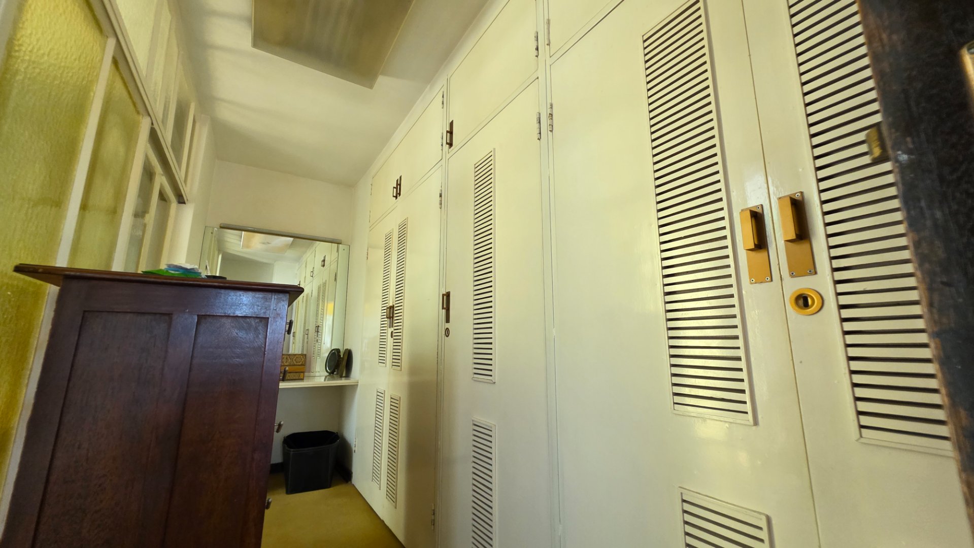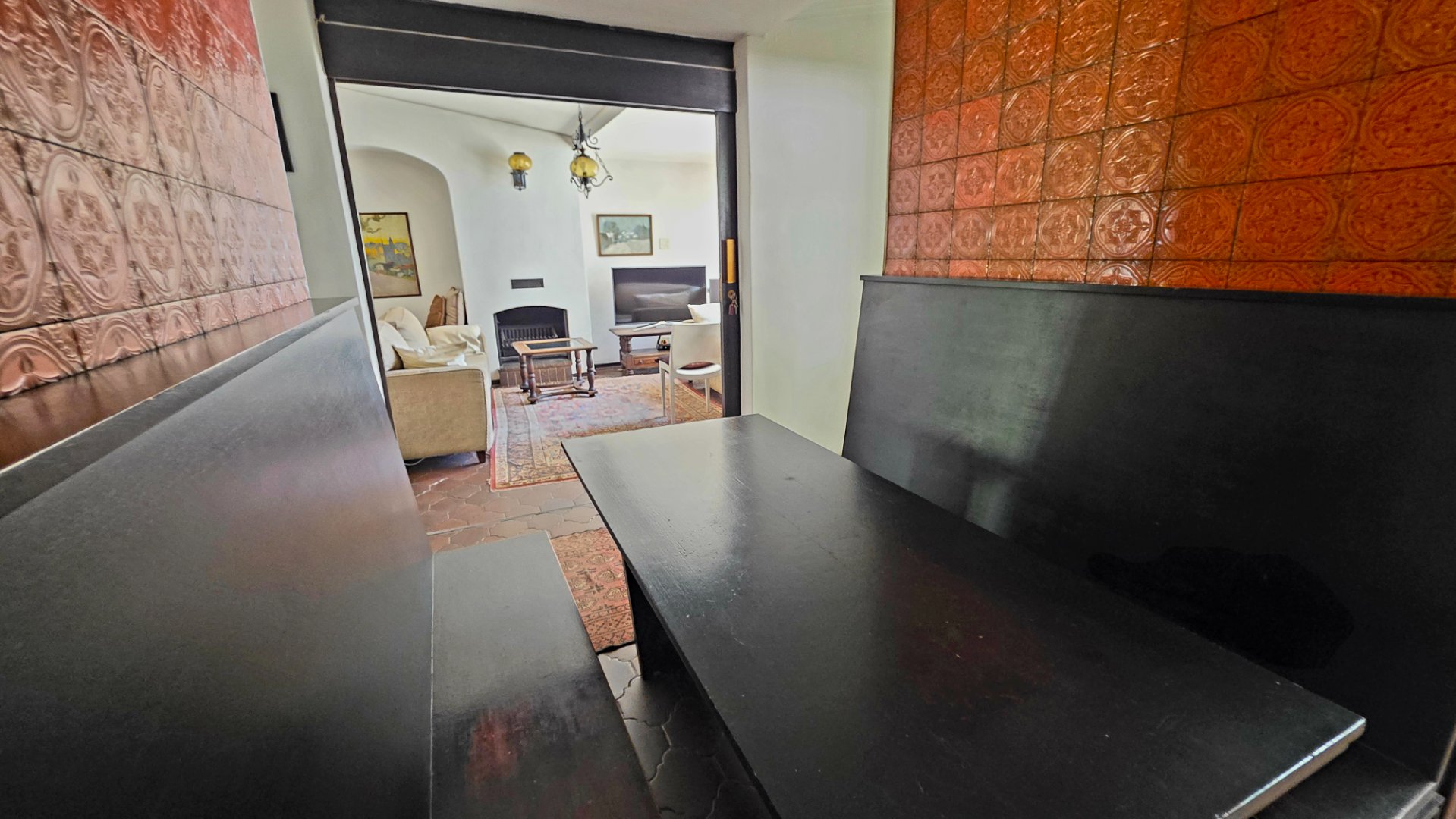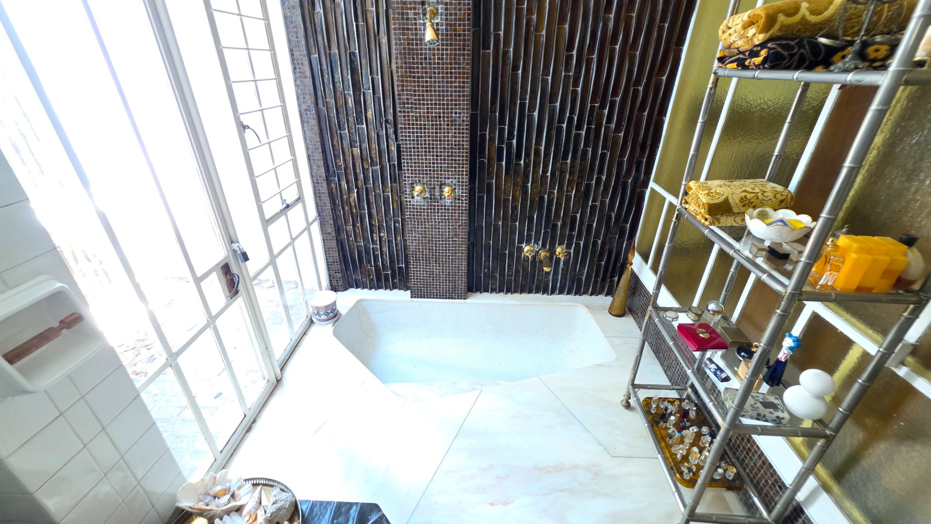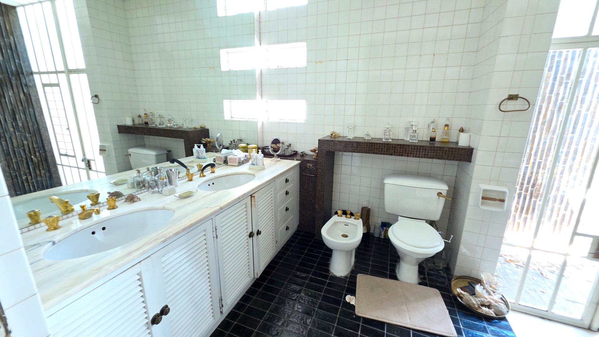 The home has three living areas including an entrance lounge a TV lounge with a divider door leading to the backyard and a dining room with a marble basin. There is also a study and a breakfast area with a built in table. The kitchen is fully fitted with granite tops a double electric oven an electric stove a pantry and a scullery laundry area.
