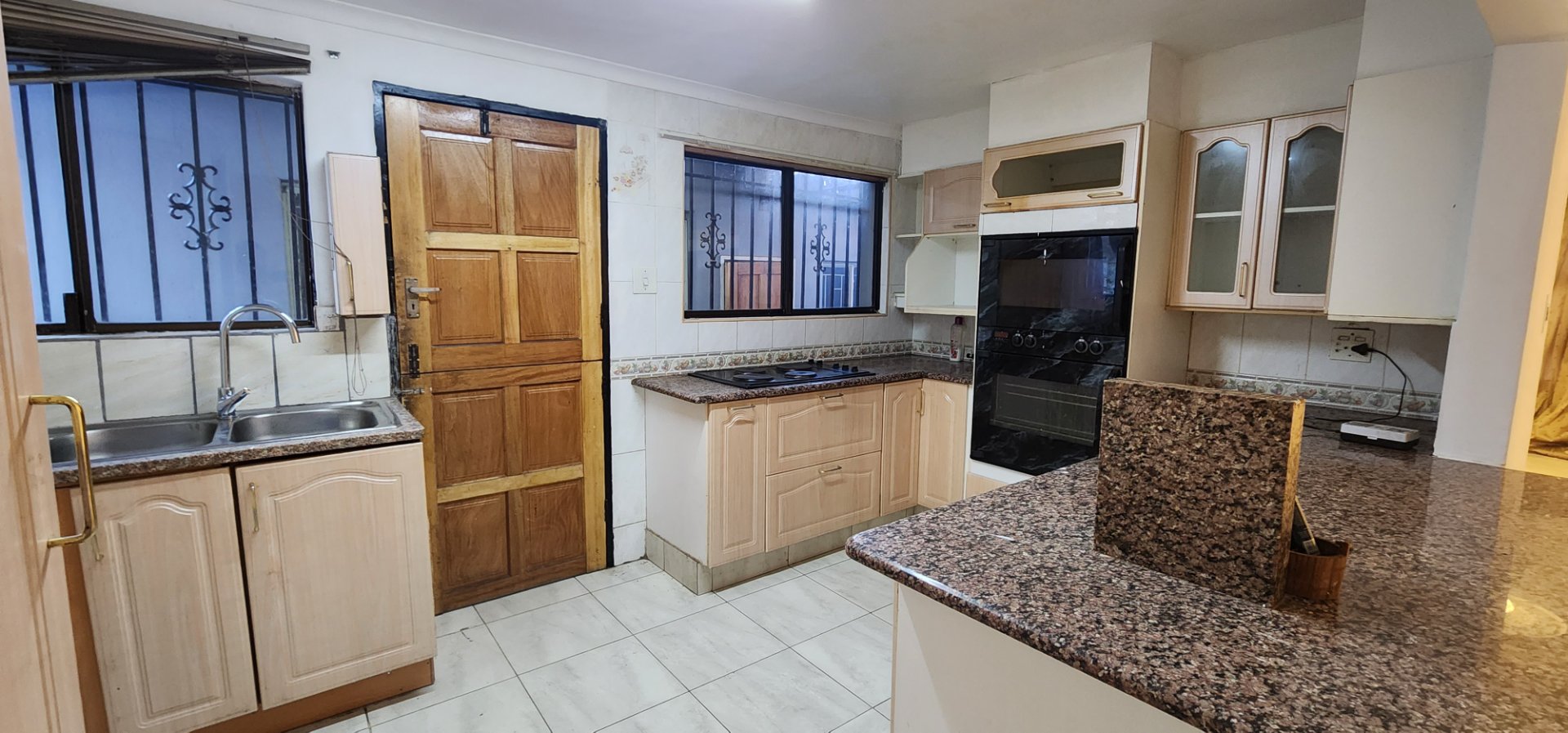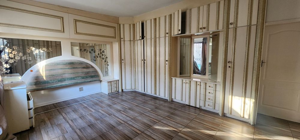 The three bedrooms are filled with natural light and feature built-in cupboards, providing ample storage. The main bedroom boasts an en-suite bathroom for added privacy and convenience, while a communal bathroom is conveniently situated along the passage for the rest of the household.