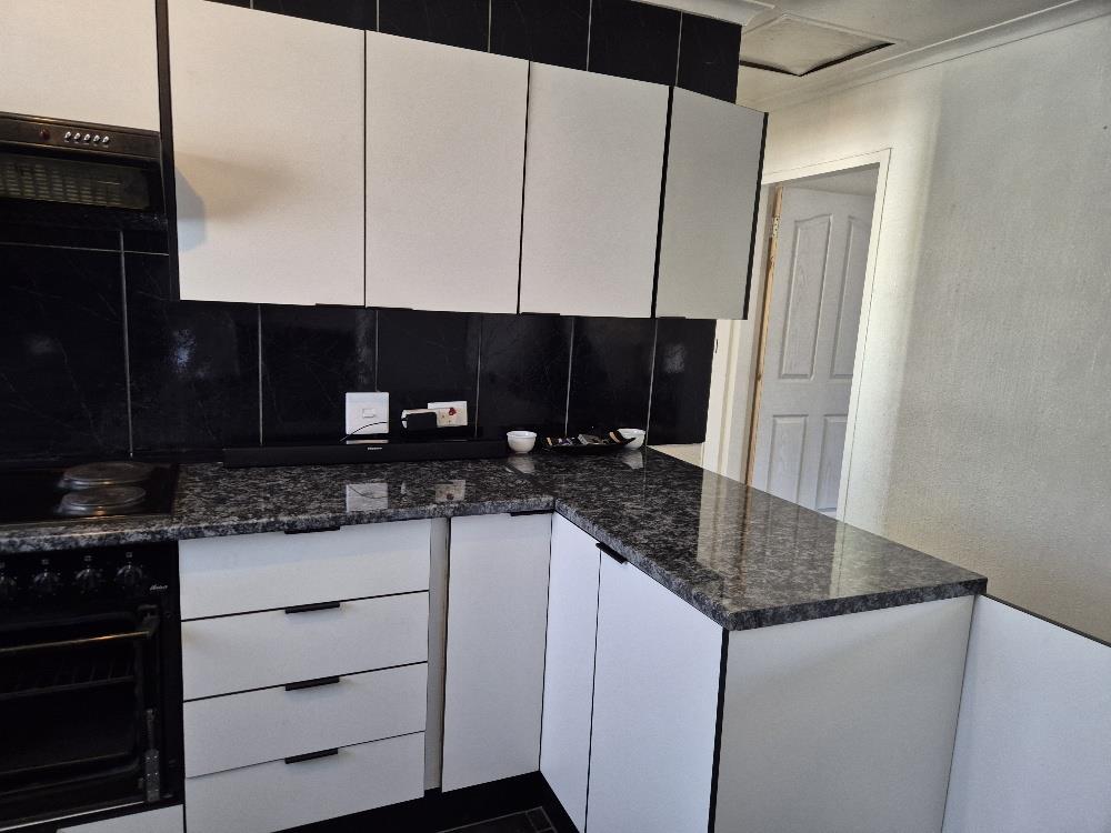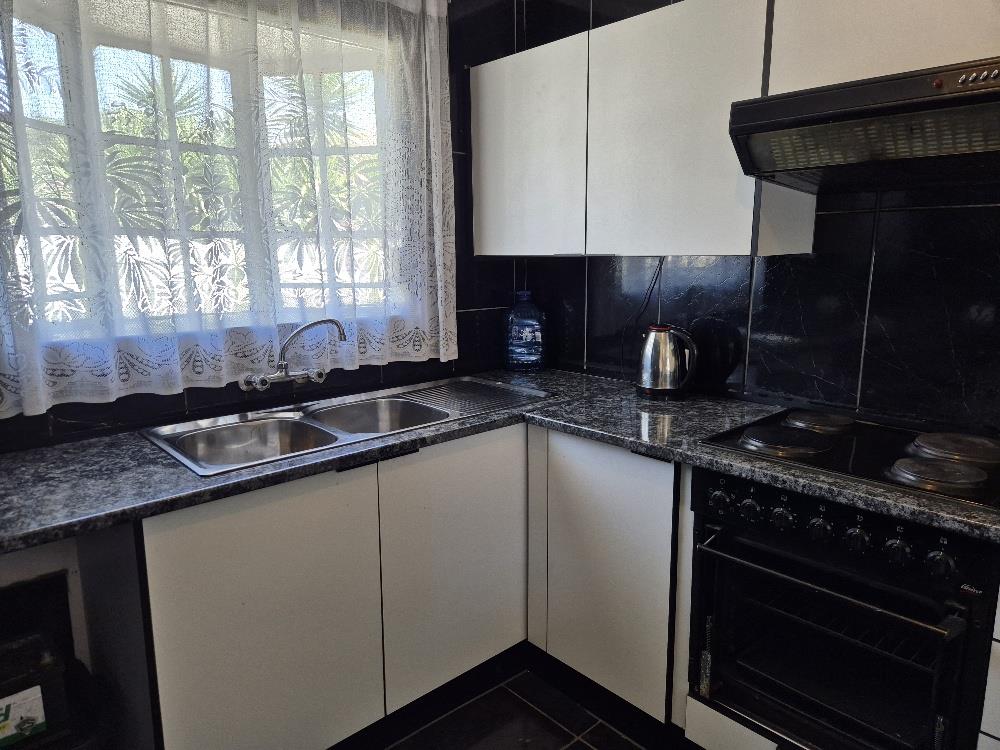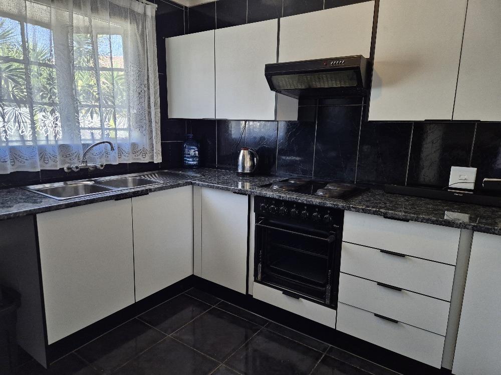 Step inside to find the entire house elegantly tiled, offering a seamless flow from room to room. The spacious kitchen is a chef's dream, featuring built-in cupboards, a 3-piece stove, a washing machine, and a fridge, ensuring all your culinary needs are met.