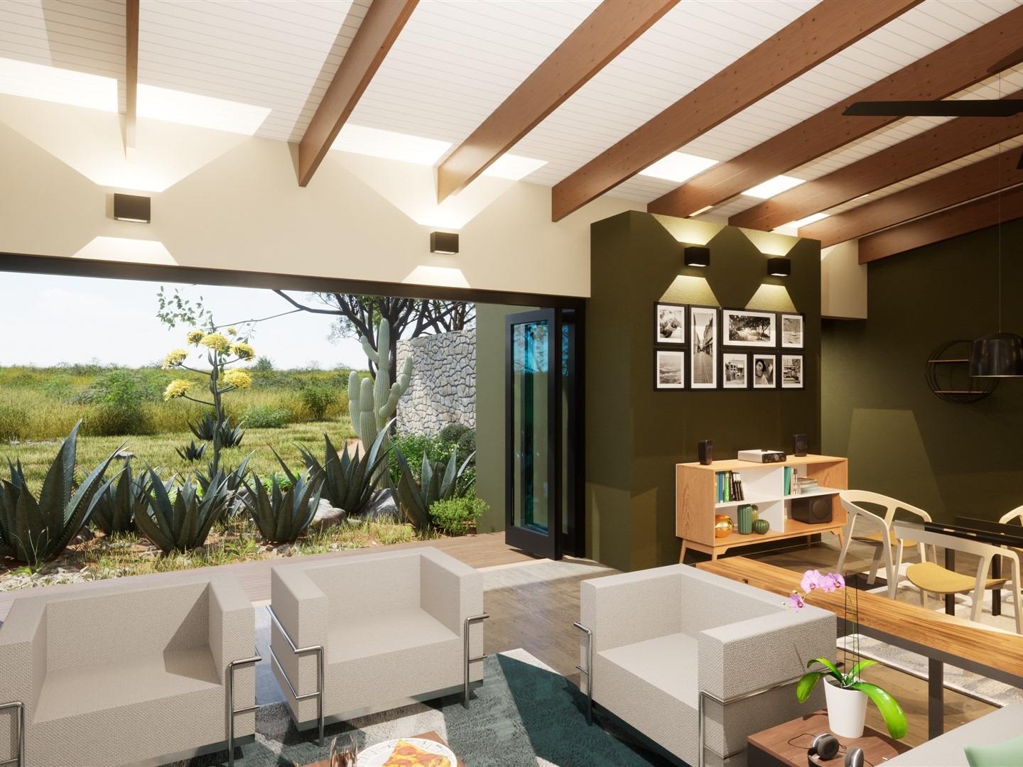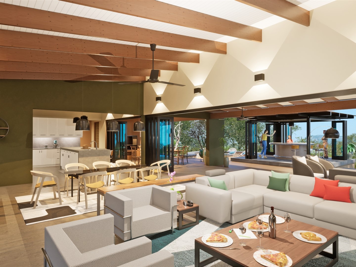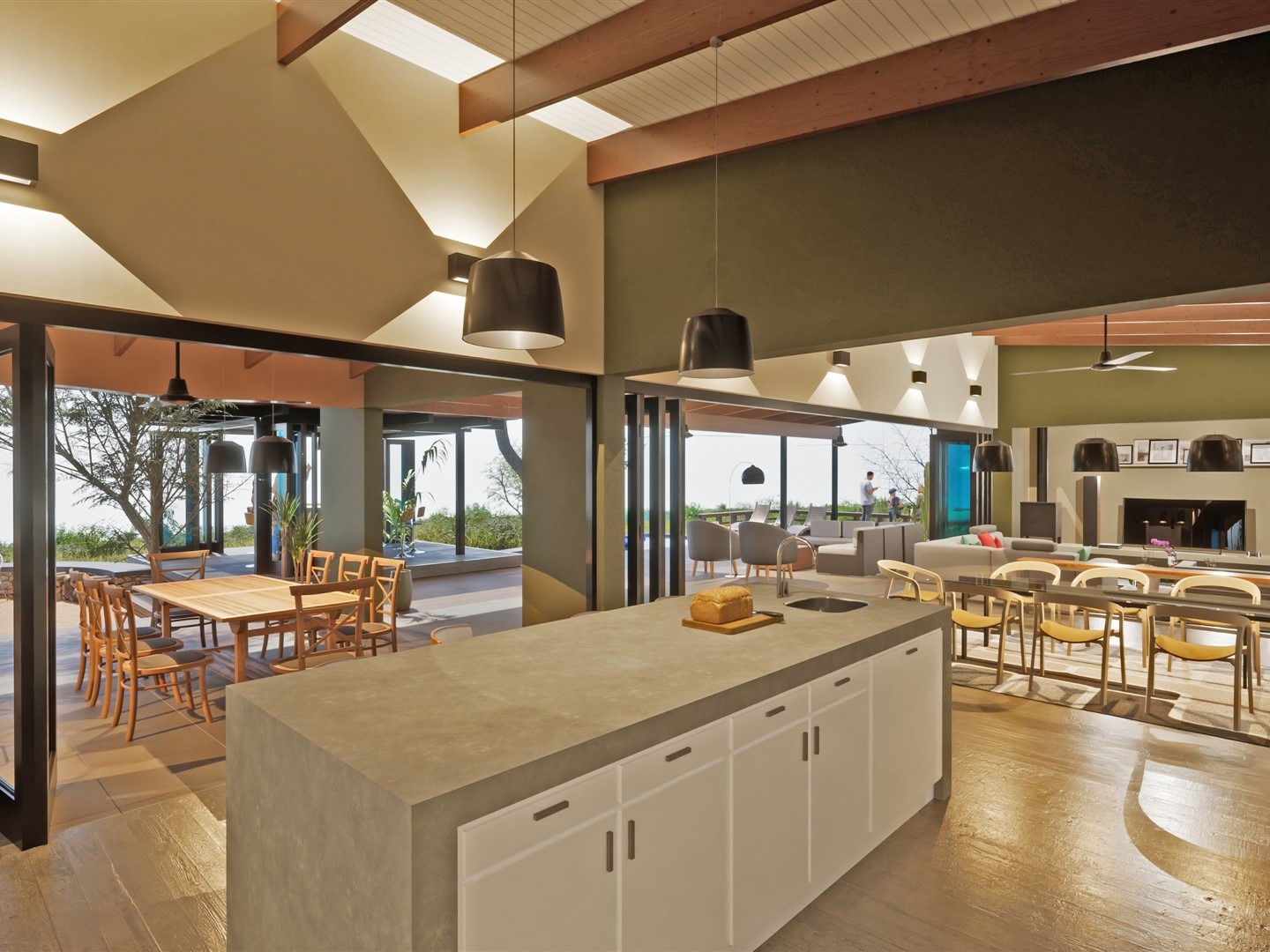 From the front door you are welcomed by uninterrupted views of the Drakensberg mountains. You pass the wine-cellar on your right and enter into a large open plan lounge, dining room and designer kitchen, all of which opens with stack doors onto the covered patio.