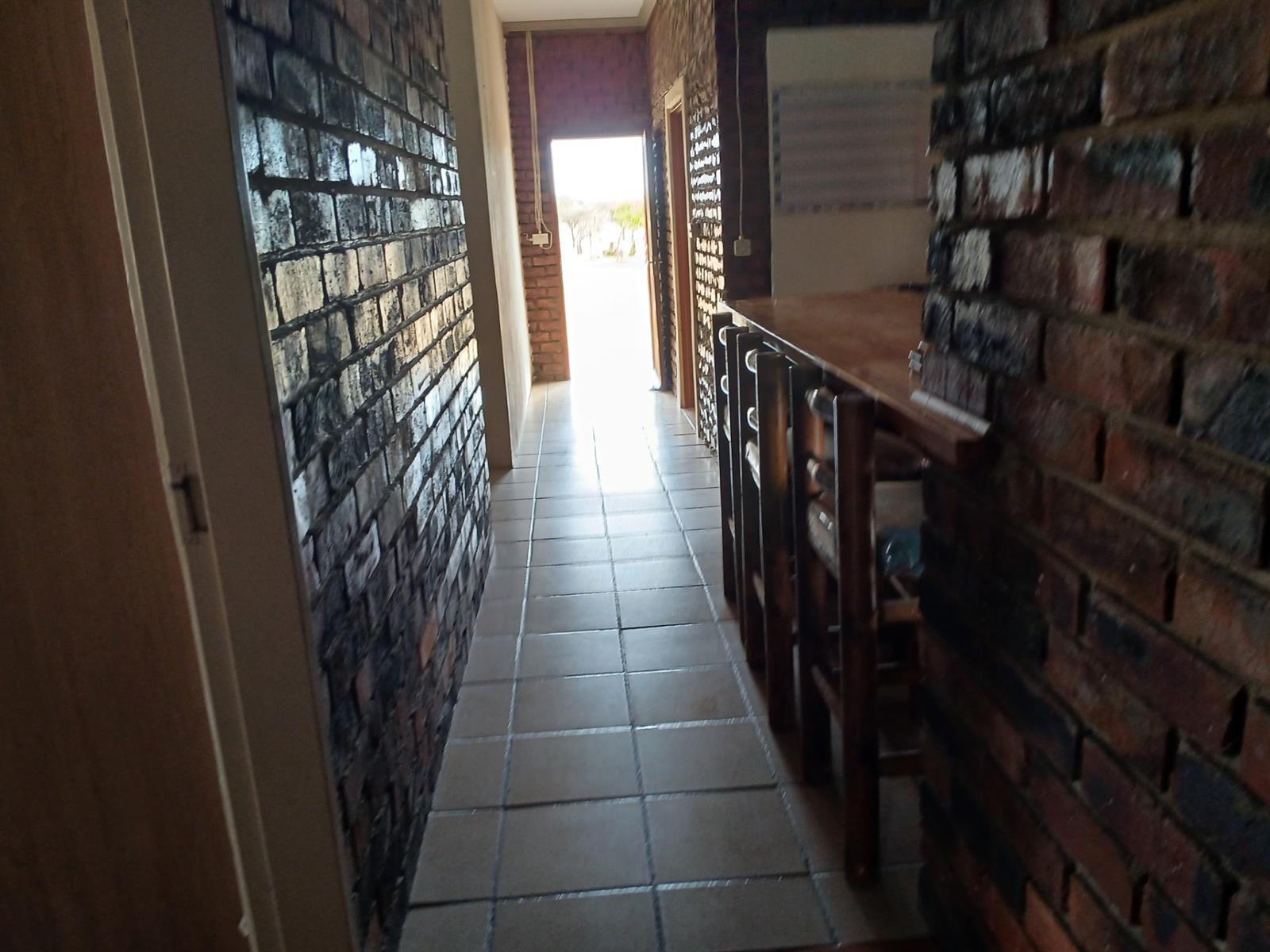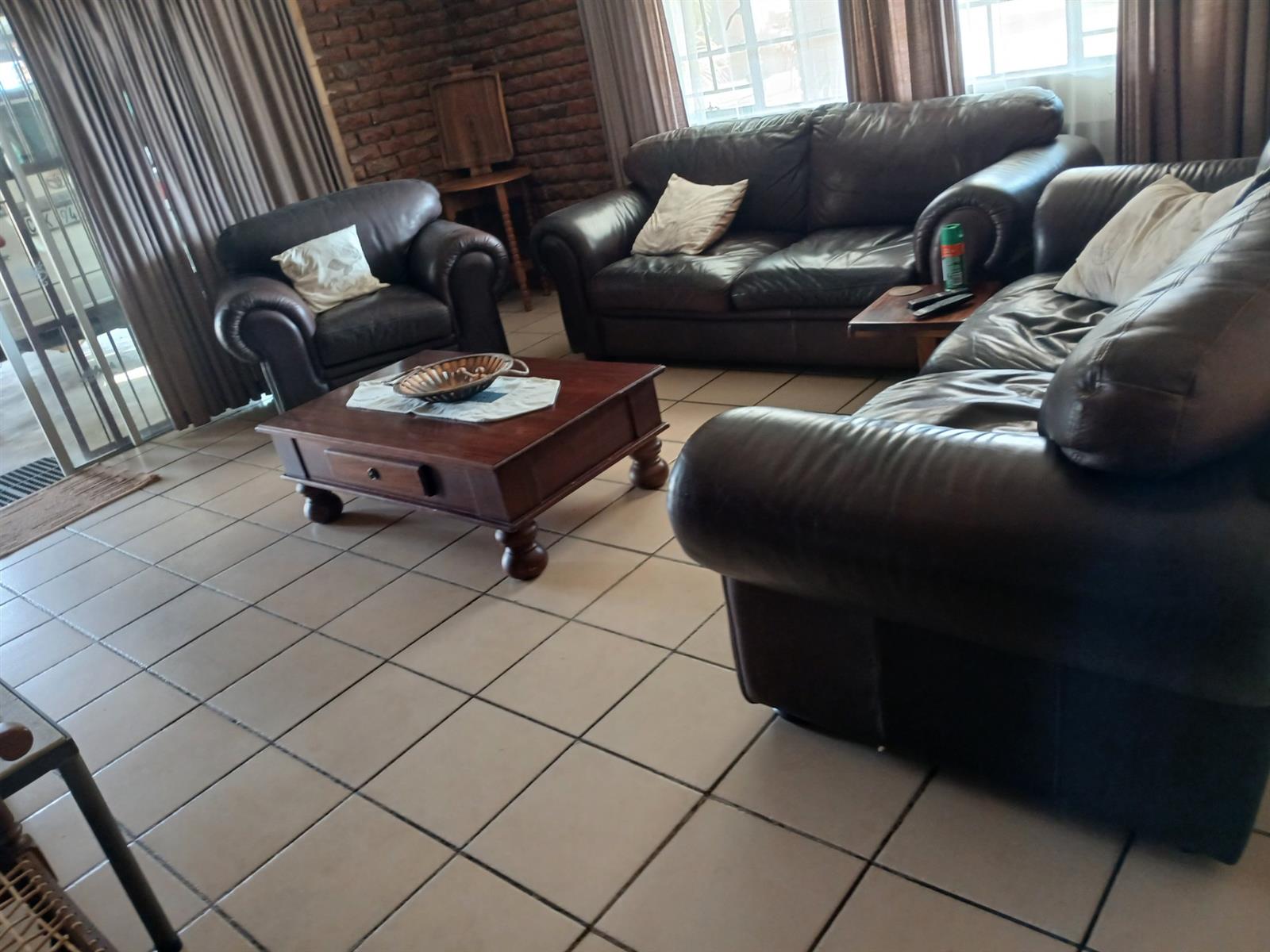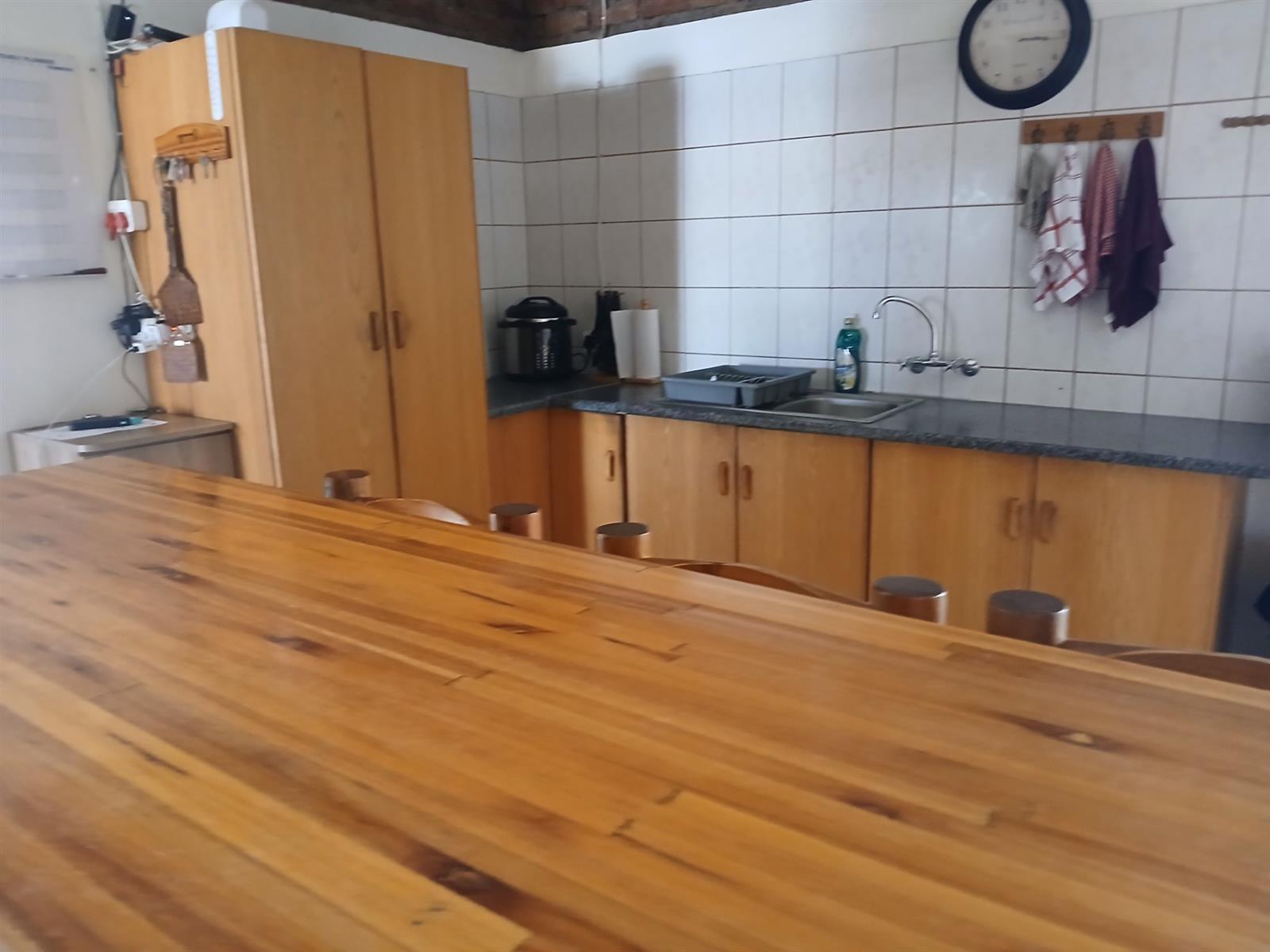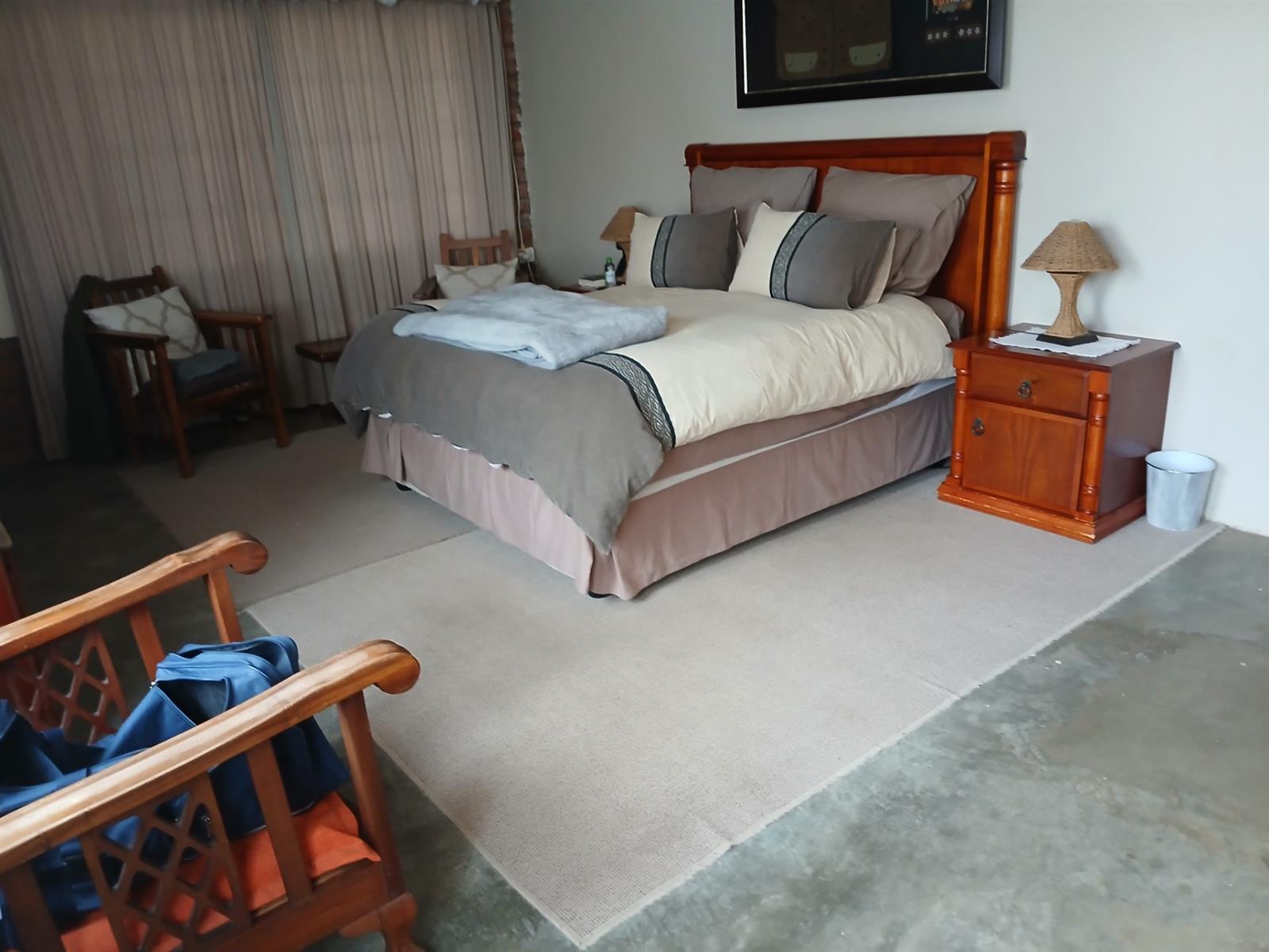 A one bedroom flatlet with huge entertainment area, a bar, kitchen, living area, and bathroom.
