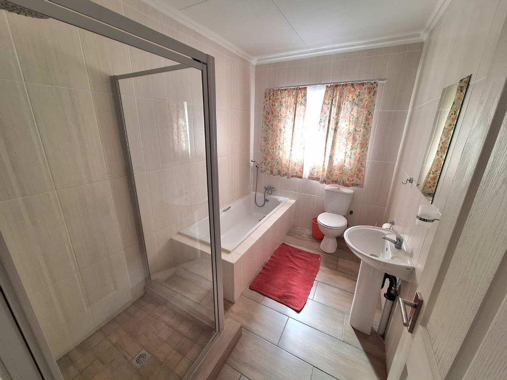 Outside, a covered entertainment area with a charming boma sets the stage for outdoor enjoyment, while the fully paved property ensures easy maintenance. Security is paramount with burglar bars installed on all windows for peace of mind.