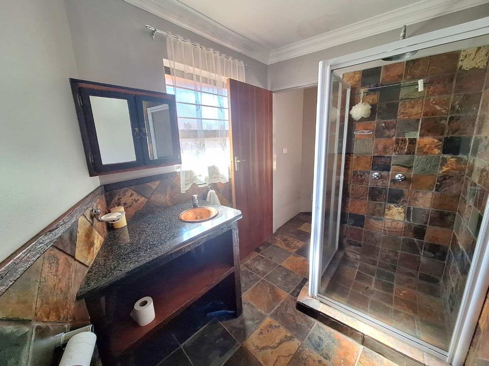 A beautiful sleeper wood staircase leads to the second floor, where a well-designed kitchen with a separate scullery awaits. The kitchen is adorned with kiaat cupboards and offers ample space for groceries and electrical appliances. The upper level opens onto an expansive verandah with a breathtaking 180-degree view. Additionally, you'll find a spacious lounge area, a bathroom featuring a shower, toilet, and basin, and a versatile loft area that can be used as extra sleeping space or an office.