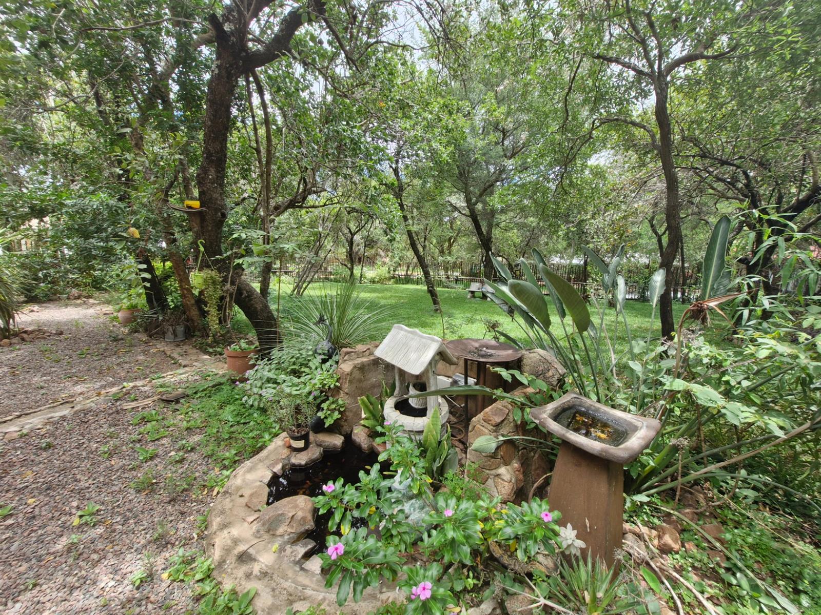 The dedicated entertainment area features a built-in braai and jacuzzi and overlooks an established garden, creating an inviting setting for relaxed outdoor living and entertaining.