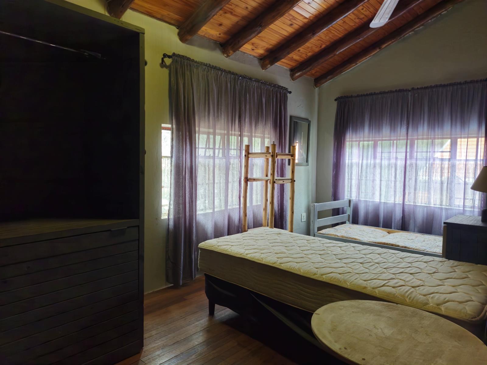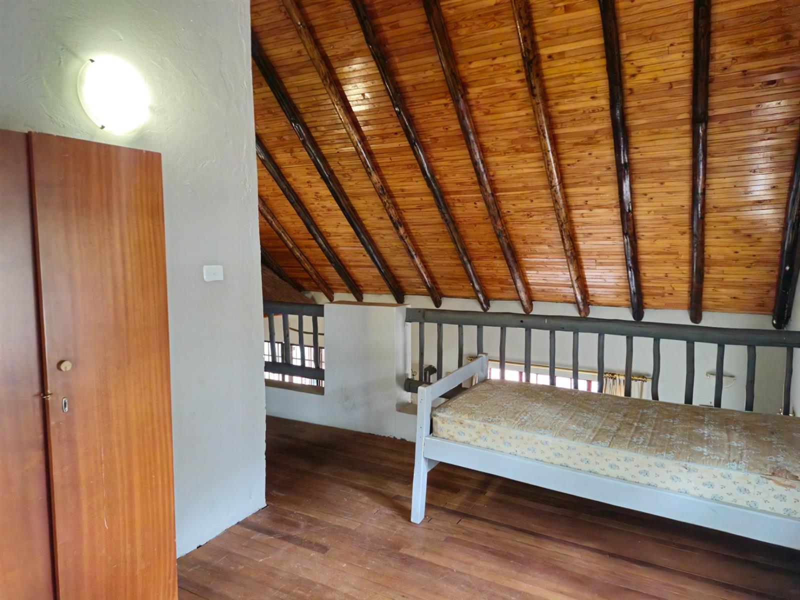 Two upstairs loft bedroom boasts warm wooden flooring.