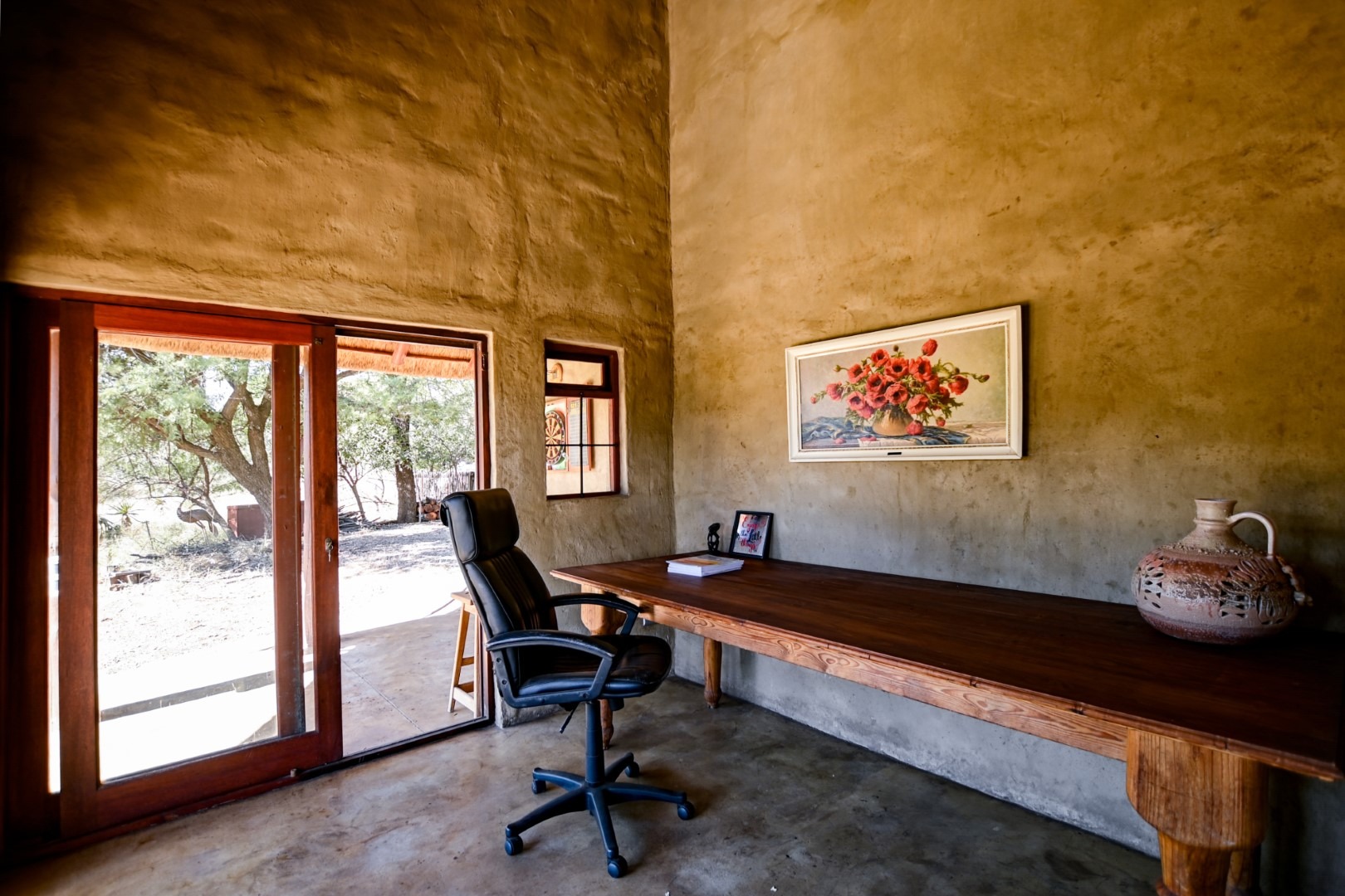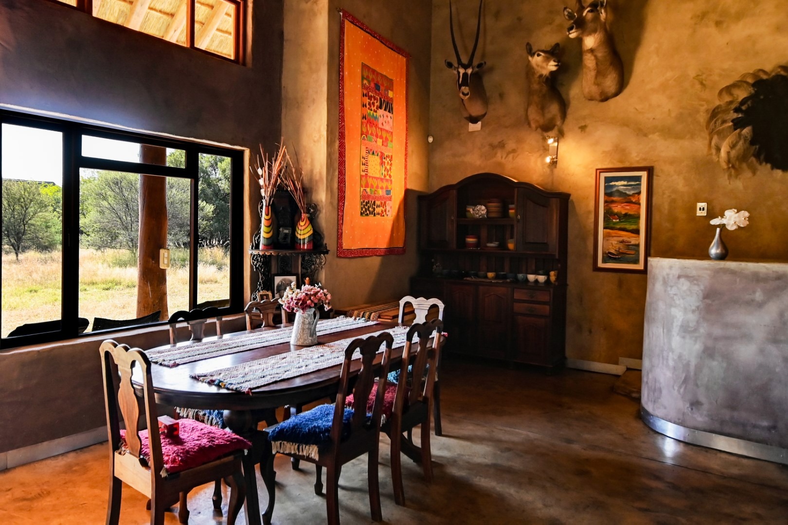 Featuring a spacious kitchen, study, and luxurious en suite bathrooms. Enjoy the comfort of 1 lounge, dining area, and 4 garages. With a generous floor area of 497m2 and a lush garden, this property offers a serene escape. Boasting land features like a borehole, access gate, and golf course, along with extras such as 24 hour security, wildlife roaming, horse riding trails, and a tennis court.