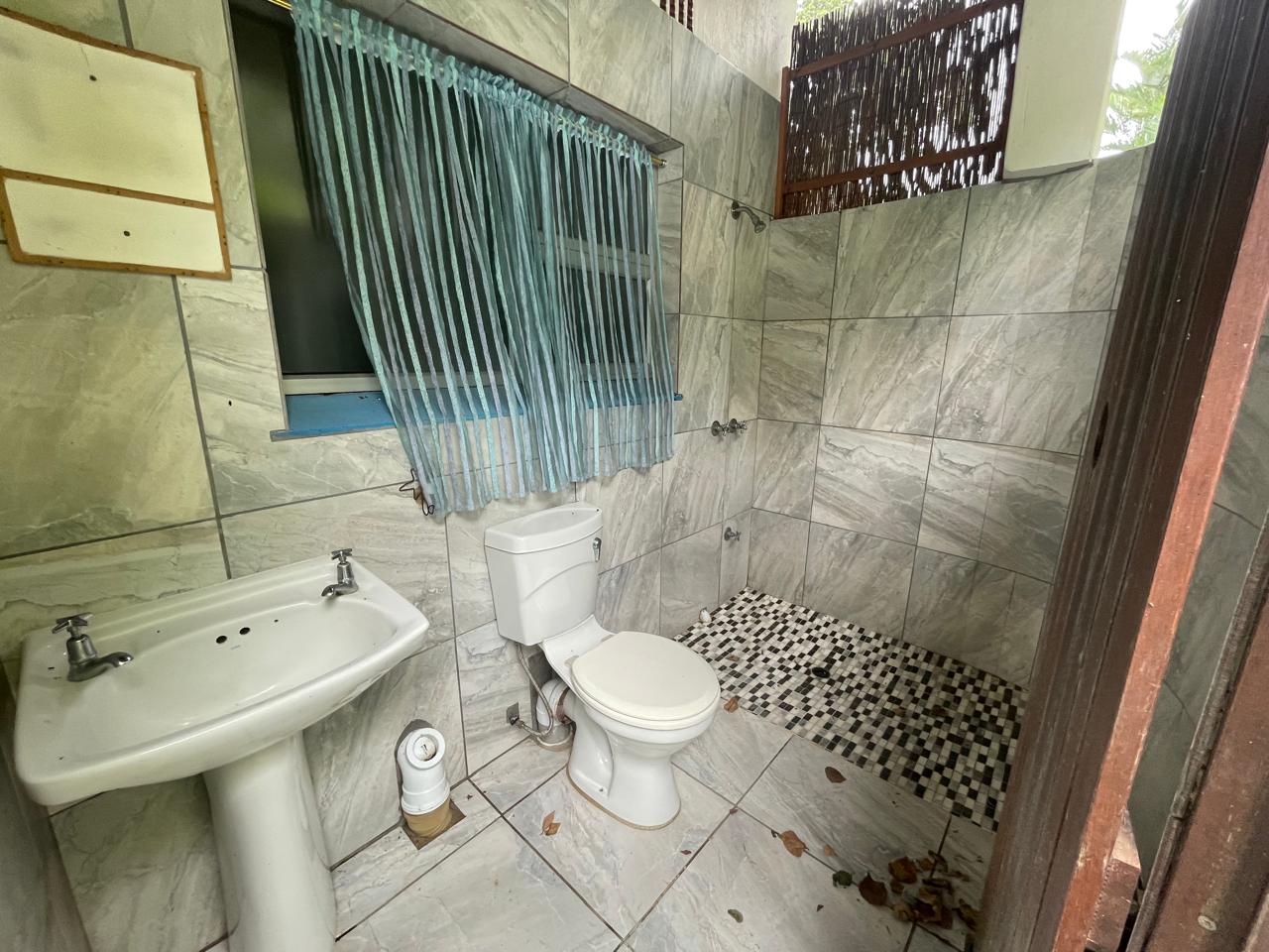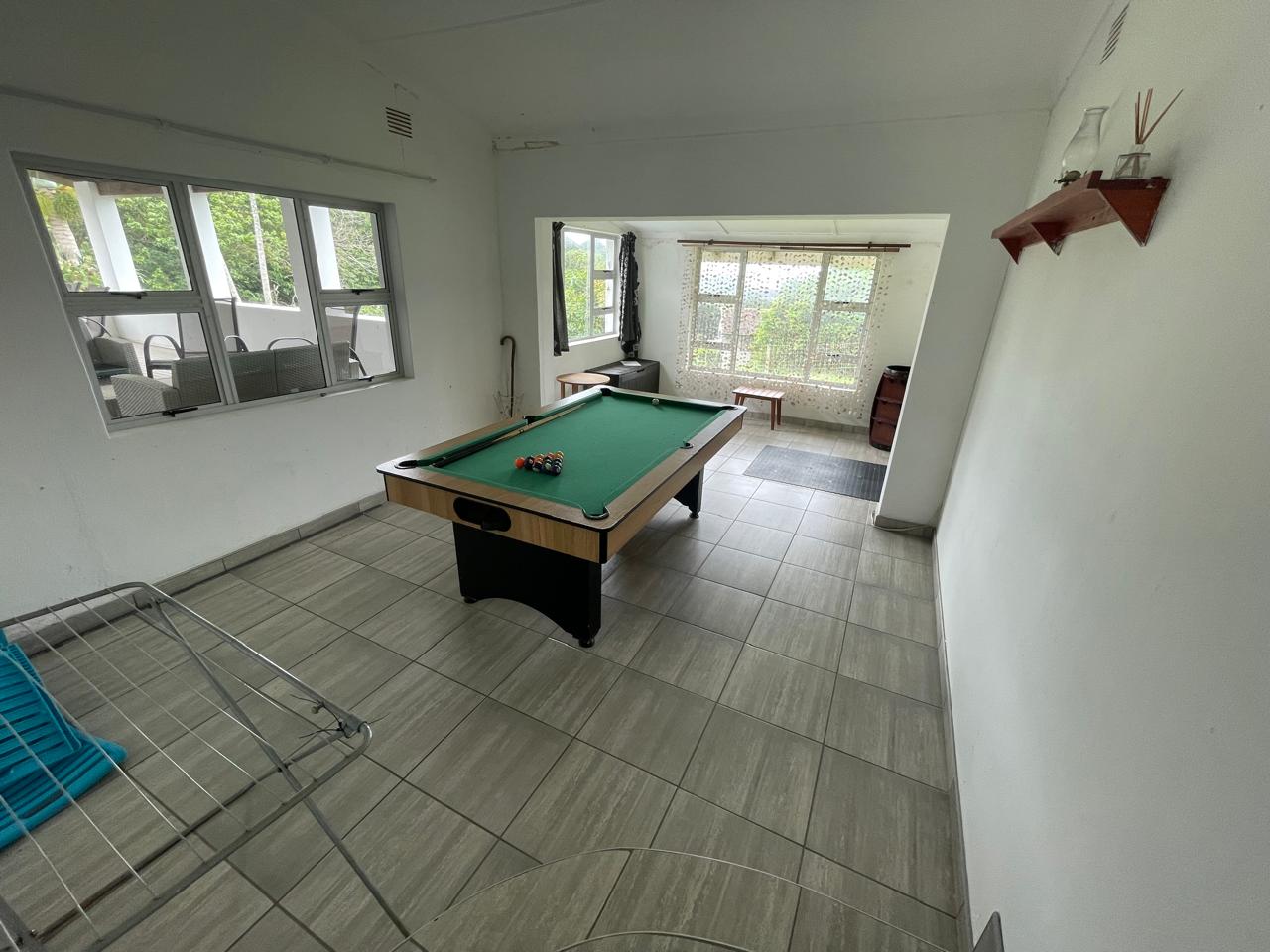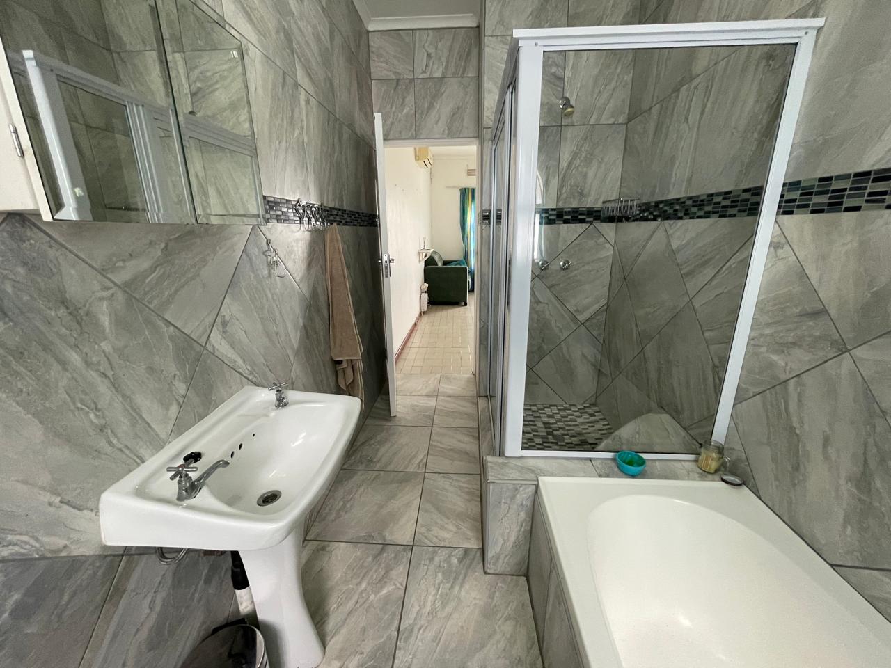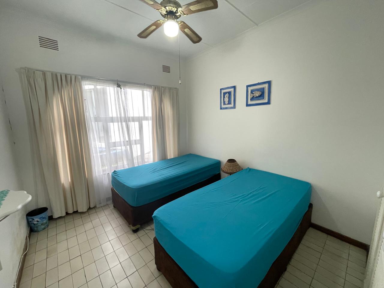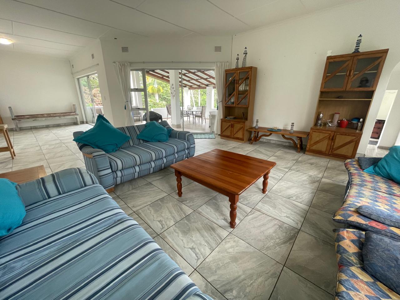 The main bedroom features an en-suite bathroom, built-in cupboards, and a ceiling fan, and overlooks the sparkling pool with stunning sea views. The remaining bedrooms are generously sized, and equipped with built-in cupboards and fans, with two also enjoying ocean-facing views. A full guest bathroom serves the additional bedrooms.
