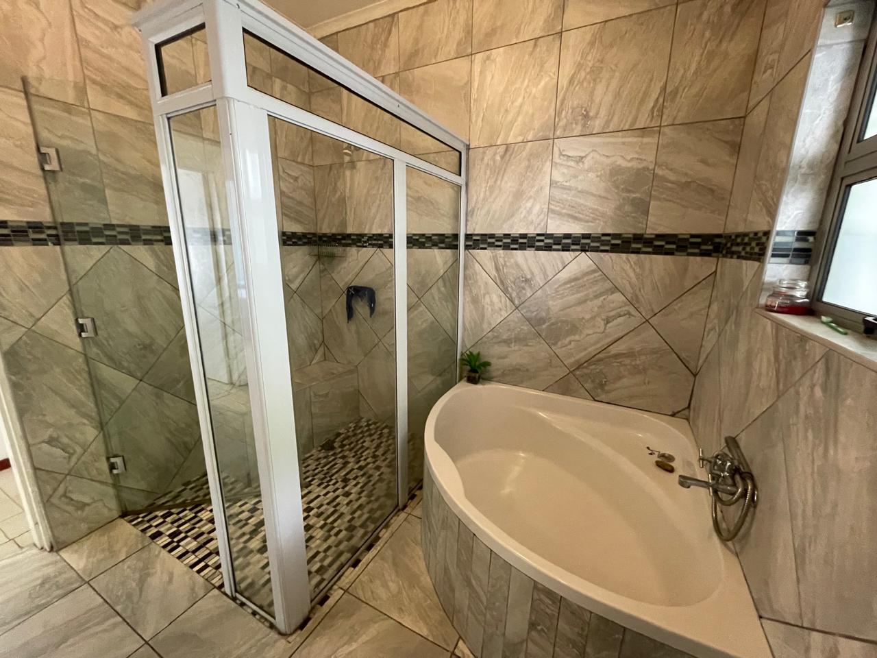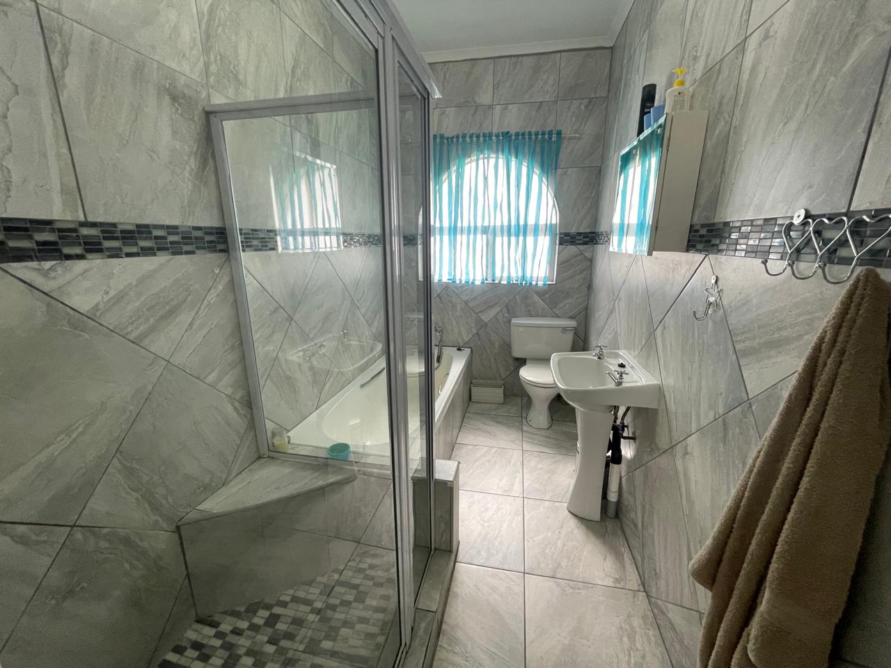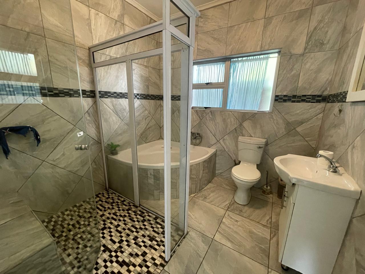 Additional features include a triple automated garage, a separate one-bedroom en-suite garden flatlet, a large swimming pool, a water tank with a fitted pump, and an outdoor bathroom with hot and cold water. The property is fully fenced.